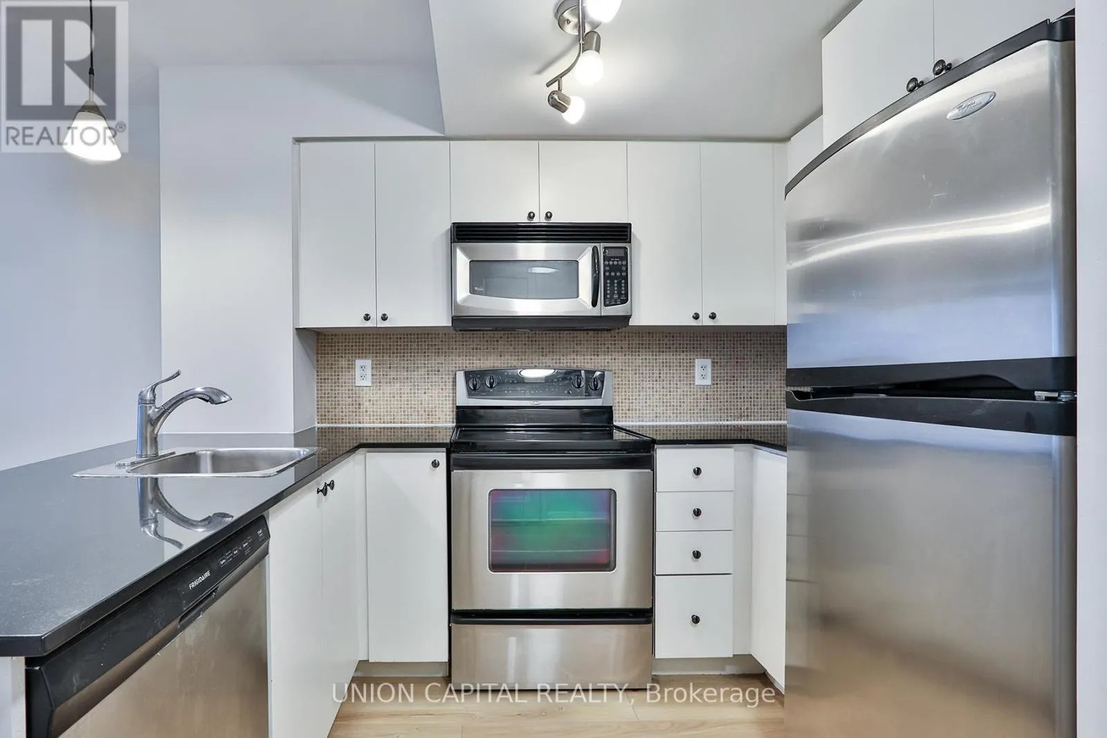 Yonge / Lakeshore Beautiful & Bright 1 Bedroom Condo At 18 Yonge St! South-facing unit with unobstructed lake and city views from private balcony. Freshly painted and featuring brand new laminate flooring throughout. Open-concept kitchen with granite countertops, ceramic backsplash, stainless steel appliances, and breakfast bar. Large windows provide abundant natural light. Includes ensuite laundry and one parking spot. Prime downtown location-steps to Union Station, Scotiabank Arena, Rogers Centre, CN Tower, Sony Centre, Roy Thomson Hall, Eaton Centre, restaurants, shops, and more. Easy access to Gardiner Expressway & DVP. (id:27476)