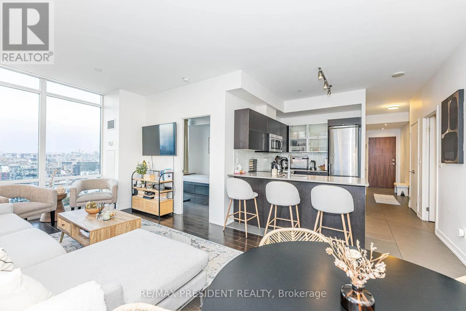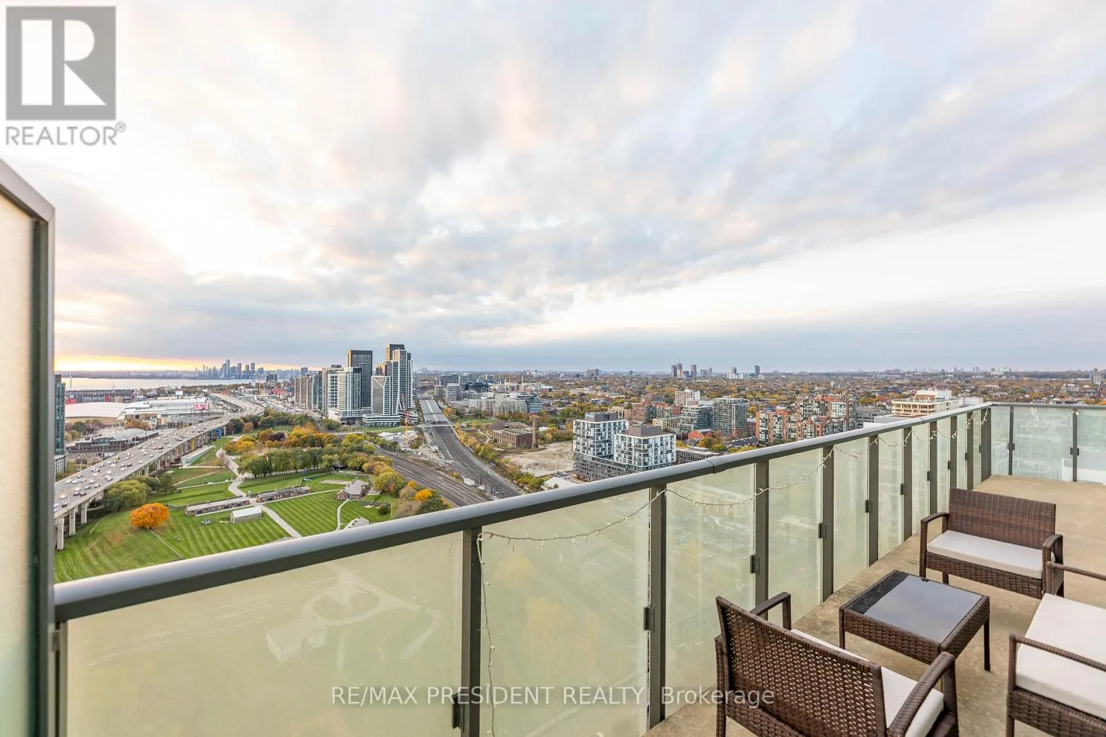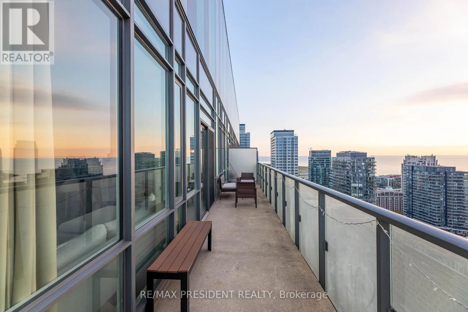 Fort York / Bathurst Experience elevated living in this sun-filled corner-end penthouse, ideally situated on the highest floor of the building. This exceptional unit boasts breathtaking panoramic views of the lake, city skyline and highway lights. Inside, you'll find an expansive living room with floor-to-ceiling windows, a beautifully upgraded eat-in-kitchen featuring granite countertops and premium cabinetry, and two spacious bedrooms filled with natural light. The unit also includes two full bathrooms with modern finishes and an oversized balcony perfect for enjoying sunsets, lake breezes, and the twinkle of city lights. With its unmatched views, elegant upgrades, and prime location, this penthouse offers a rare opportunity to enjoy luxury, privacy, and convenience all in one. (id:27476)