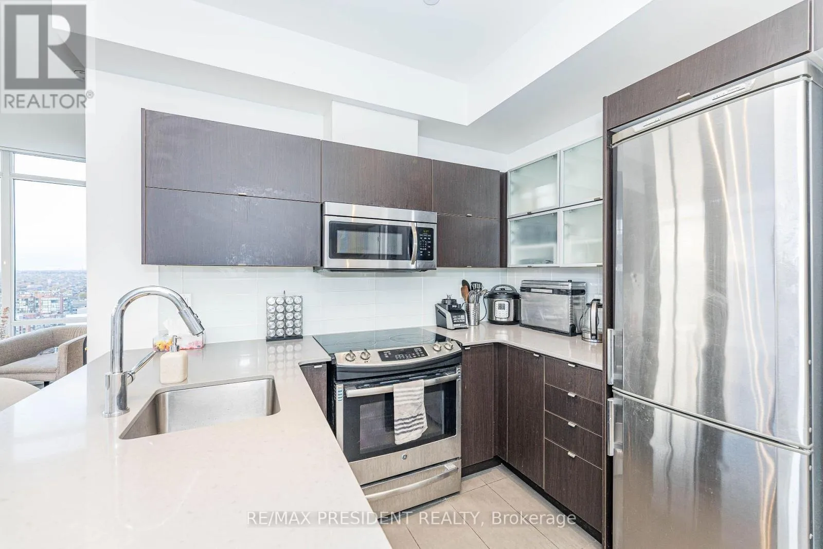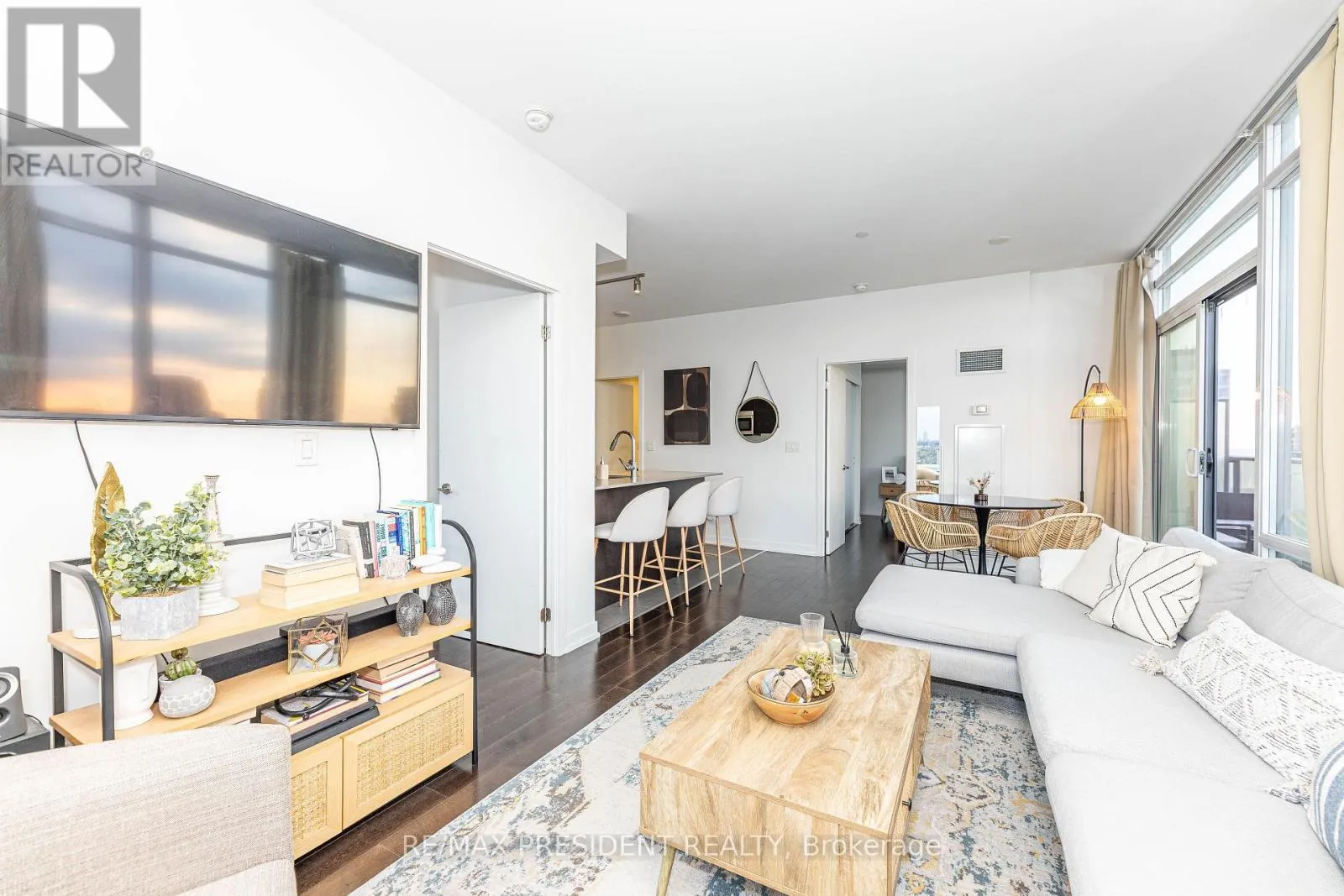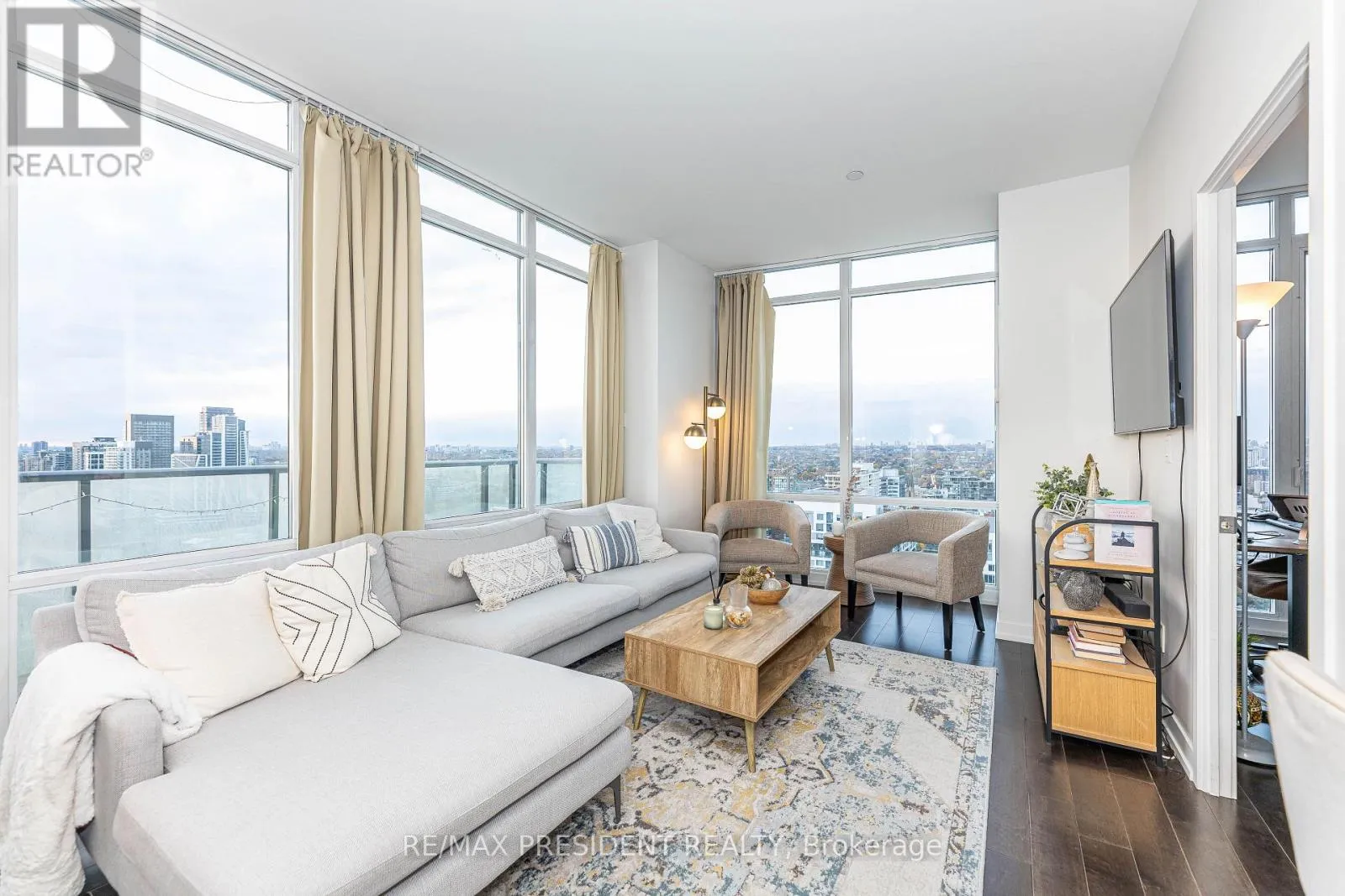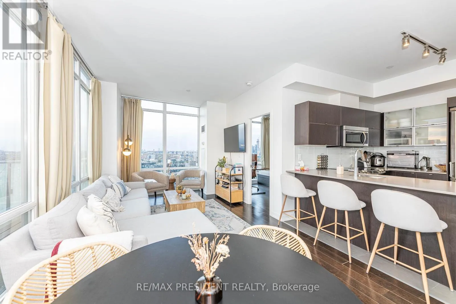 Fort York / Bathurst Experience elevated living in this sun-filled corner-end penthouse, ideally situated on the highest floor of the building. This exceptional unit boasts breathtaking panoramic views of the lake, city skyline and highway lights. Inside, you'll find an expansive living room with floor-to-ceiling windows, a beautifully upgraded eat-in-kitchen featuring granite countertops and premium cabinetry, and two spacious bedrooms filled with natural light. The unit also includes two full bathrooms with modern finishes and an oversized balcony perfect for enjoying sunsets, lake breezes, and the twinkle of city lights. With its unmatched views, elegant upgrades, and prime location, this penthouse offers a rare opportunity to enjoy luxury, privacy, and convenience all in one. (id:27476)