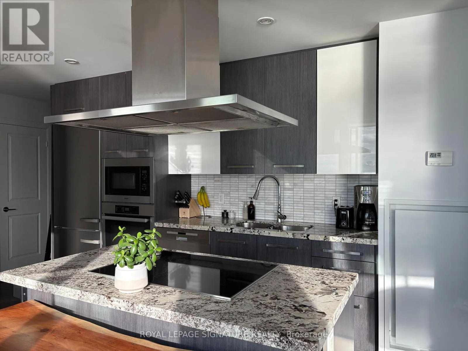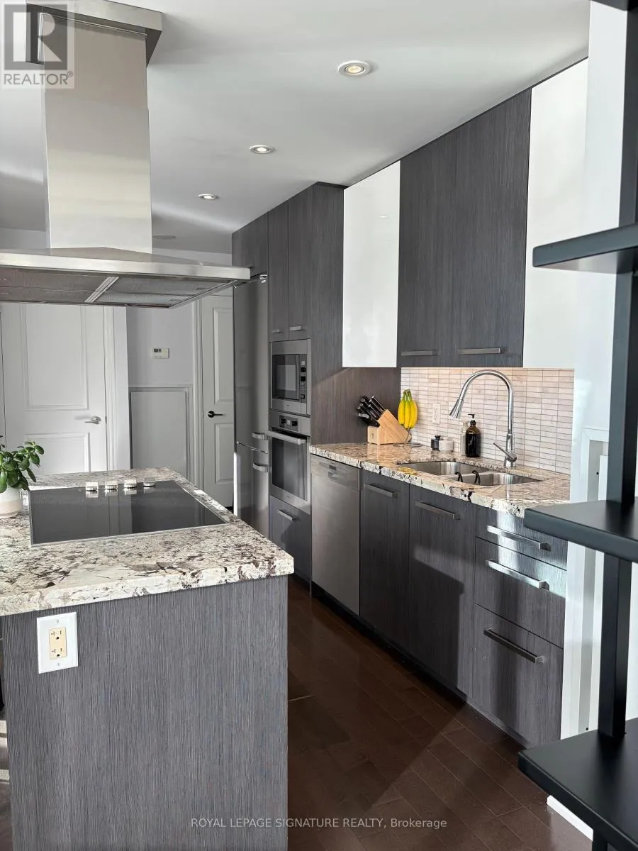 Front & The Esplanade This L-Tower Beautiful Corner Unit is in the Heart of the Waterfront Community; Offering open concept 2 Bedroom, 2 Bathroom with Parking and Locker; Breathtaking Southeast view of Lake and City; Large Master with ensuite; Abundance of Natural Light, Floor to Ceiling Windows; Granite Countertops; Designer Island; \\Miele Stainless Steel App; Hardwood Flooring Throughout. Steps To St. Lawrence Market, Theatres, Restaurants, Park, Transit, Highway access. Great Building Amenities-Concierge, Indoor Pool, Gym, Media Room, Party Room. (id:27476)