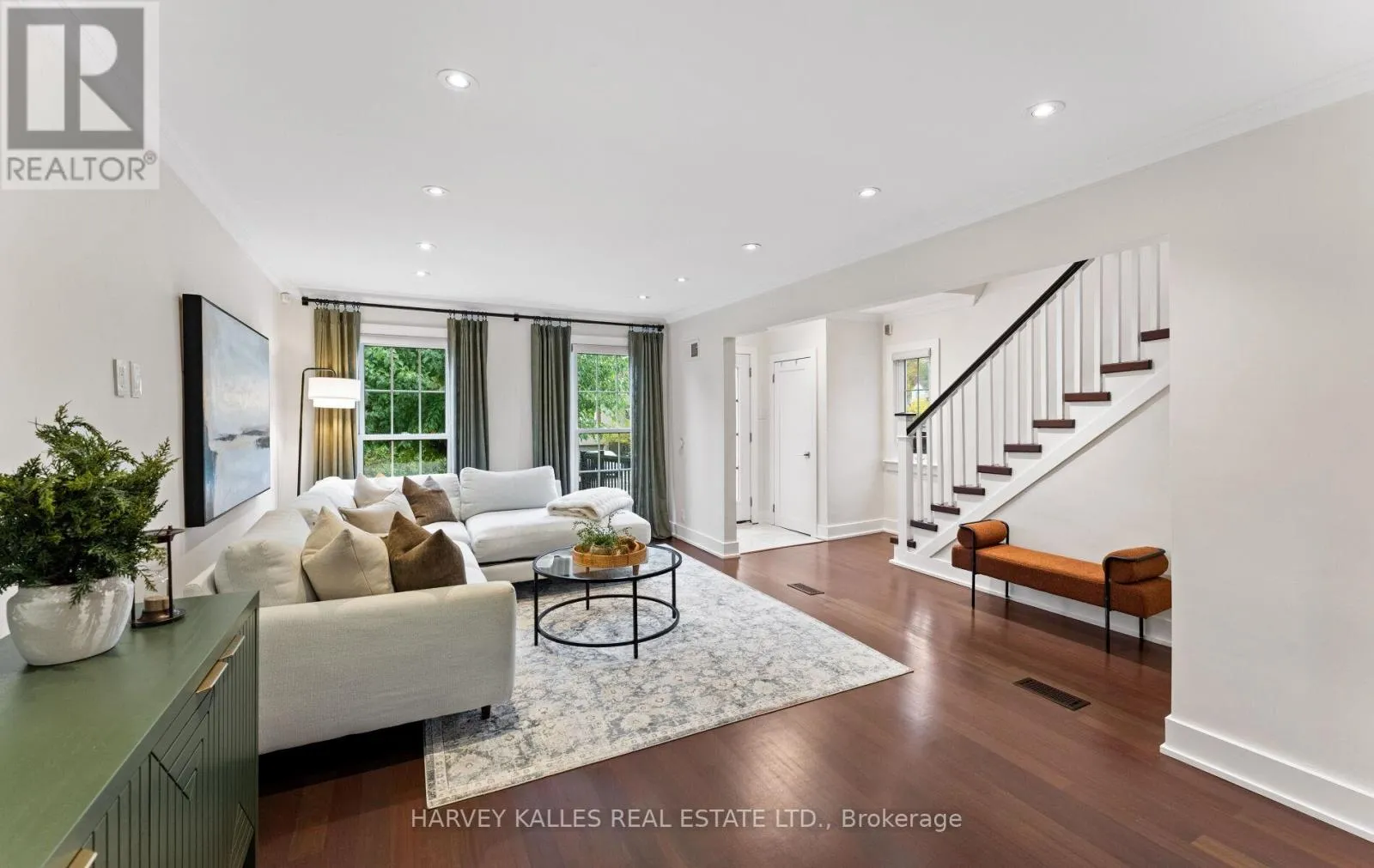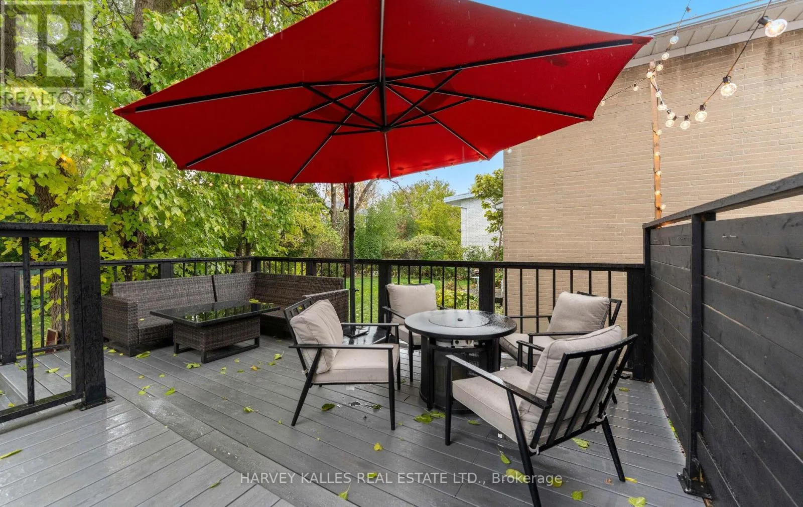 Avenue Rd/Lawrence Welcome to this extensively renovated two-storey home, perfectly situated on a rare 42-foot lot in one of Bedford Park's most desirable neighbourhoods. From the moment you arrive, you'll appreciate the freshly paved private driveway with parking for two vehicles and a convenient attached single-car garage equipped with a 40-amp EV charger. Step inside to discover a bright, open-concept main level with exceptional flow between the spacious living and dining areas. Updated modern kitchen features a marble peninsula, brand-new stainless steel appliances, and sleek finishes throughout. Walk out from the main level to a stunning three-tier composite deck - the perfect setting for entertaining or relaxing - overlooking a lush, professionally landscaped garden designed for year-round enjoyment. Upstairs, you'll find three updated bedrooms Built-in closets and a fully restored bathroom. The fully finished lower level with a separate side entrance offers even more living space, including a renovated guest bedroom, a modern three-piece bathroom, and a large laundry area featuring a new high-capacity washer and dryer, double sink, and quartz countertop. Every detail of this home has been meticulously updated inside and out, combining modern comfort with timeless style. Floor plans are available in attachments. (id:27476)