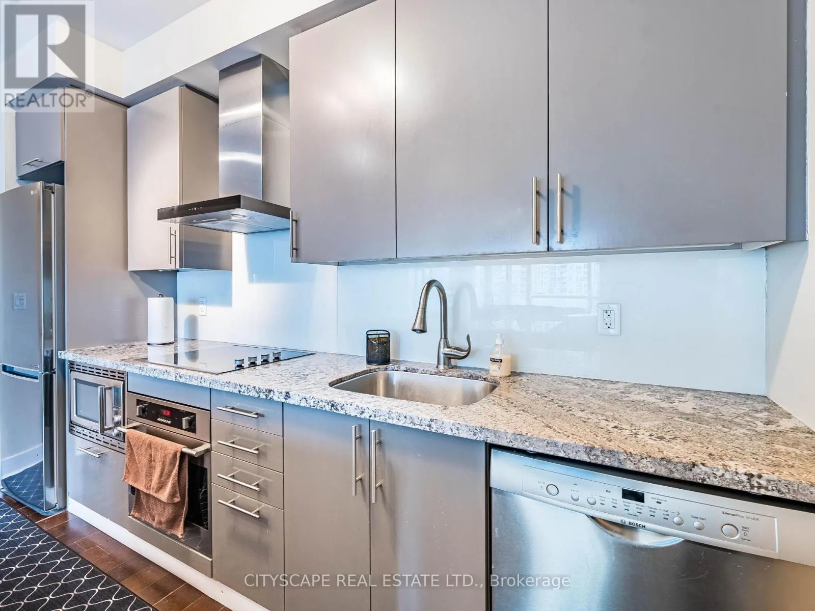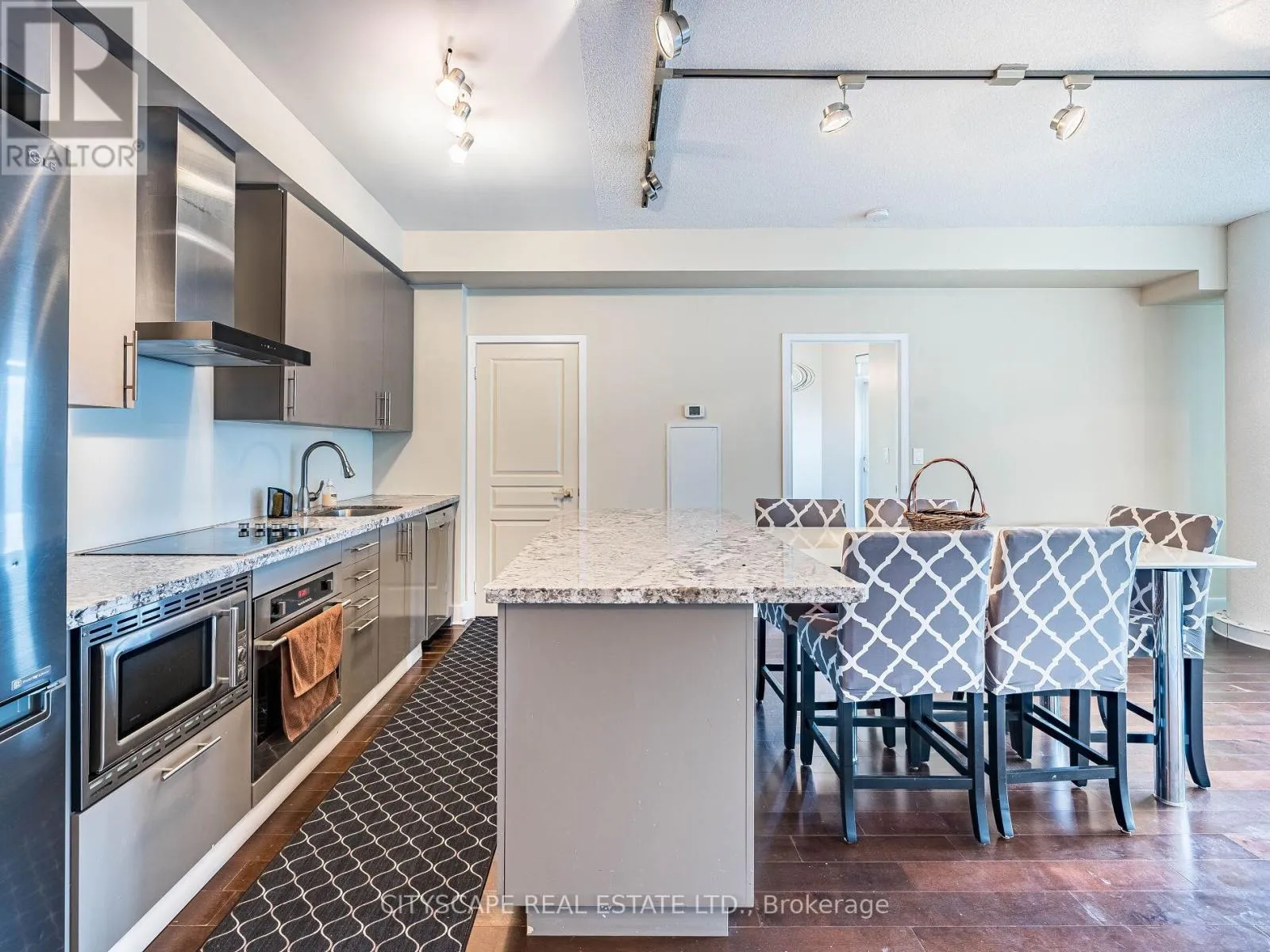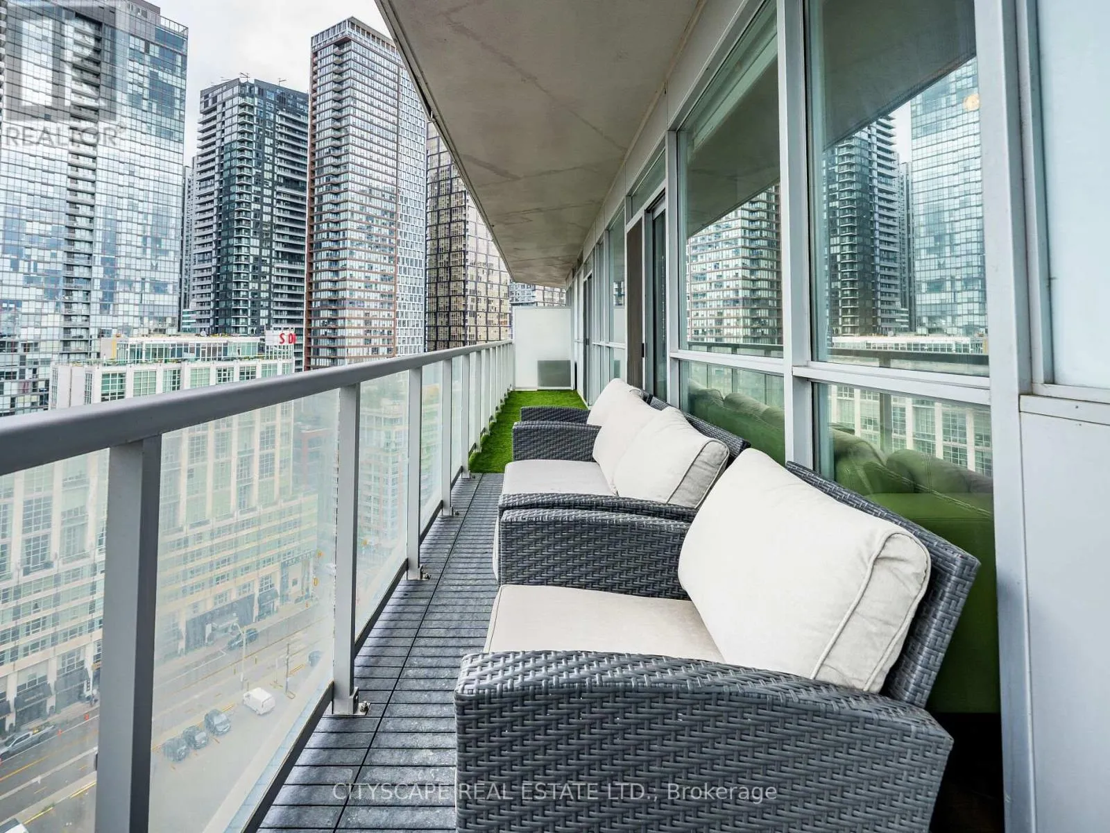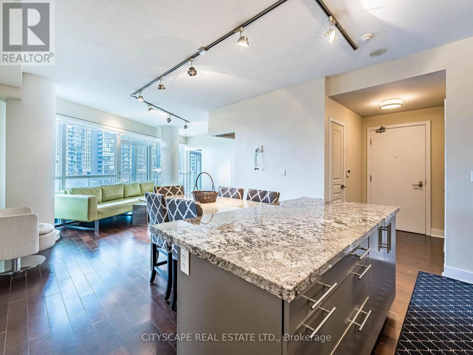 Cross Streets: Front And Spadina. ** Directions: Front & Spadina. Downtown Luxury at Fly Condos! Stunning 2 Bedroom + Den, 3 Bath suite designed by celebrity designer Ramsin Khachi. Offering 1,112 sq.ft. of upgraded living space filled with natural light and three walk-outs to a 312 sq.ft. wrap-around balcony with unobstructed northwest city views. Features high-end stainless steel appliances, custom island with extended dining table, granite countertops, and hardwood flooring throughout. Two spacious bedrooms each include private ensuites, while the den is perfect for a home office or 3rd bedroom. Includes 1 premium underground parking spot and 1 locker. Building amenities include 24-hour concierge, security, and pay per use guest parking. Steps to the Financial District, Entertainment District, CN Tower, Rogers Centre, restaurants, and transit. A true luxury residence in the heart of downtown Toronto! Available furnished for $4100 per month. (id:27476)
