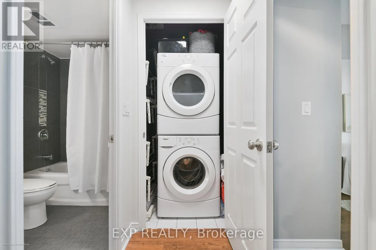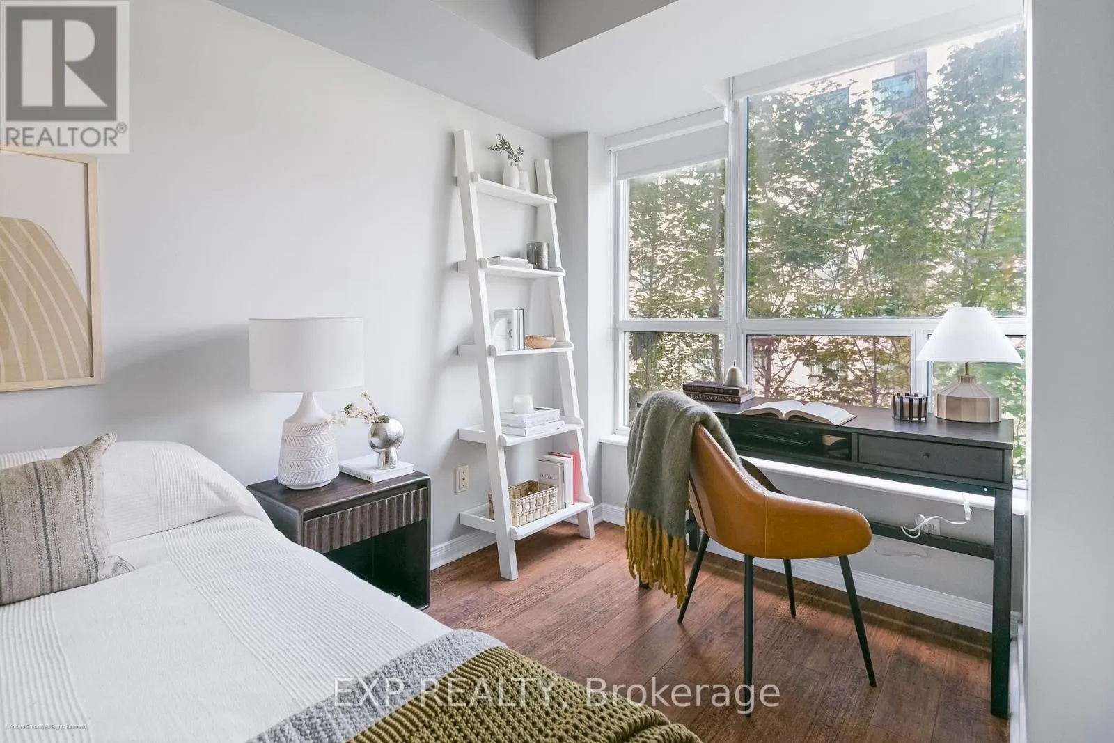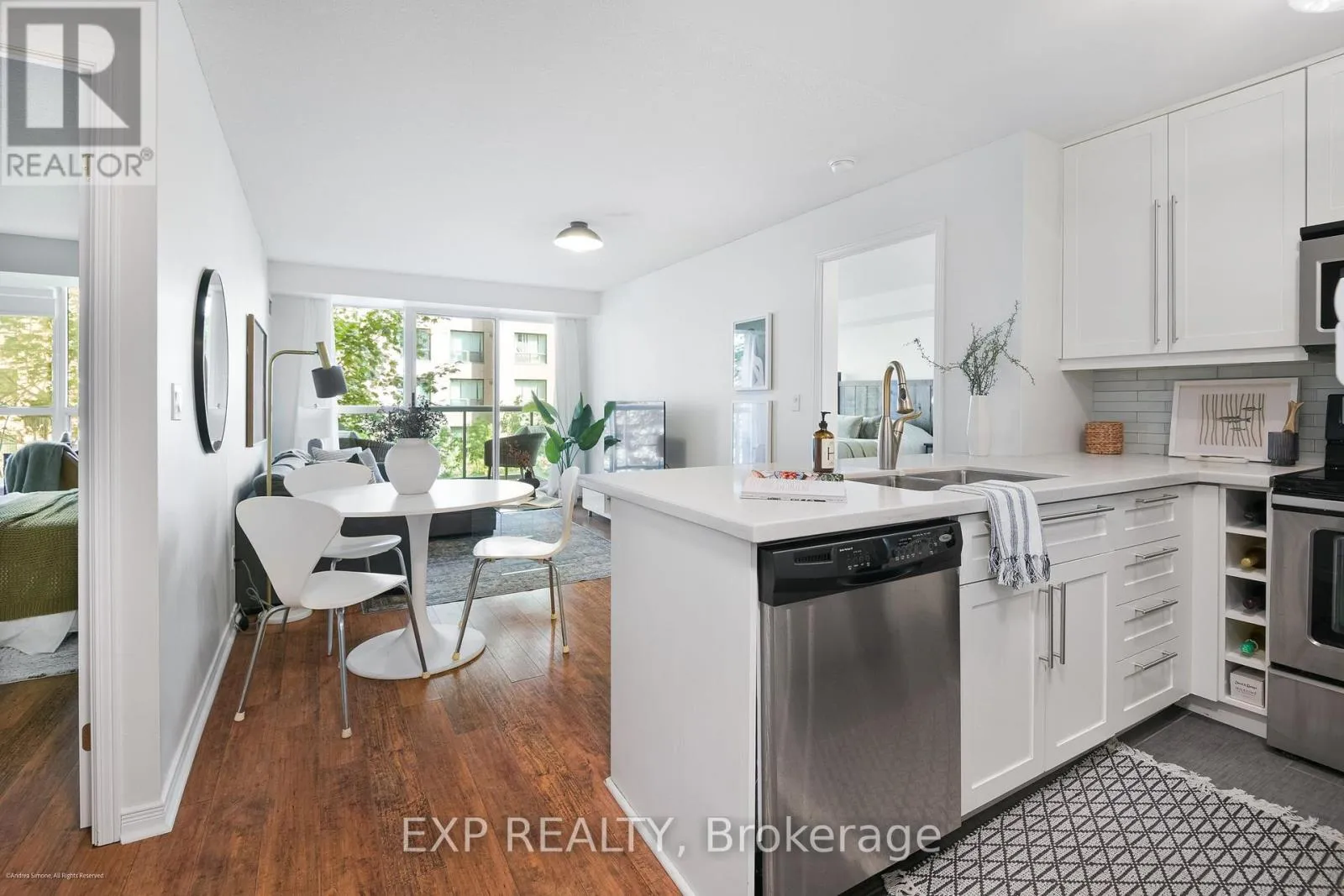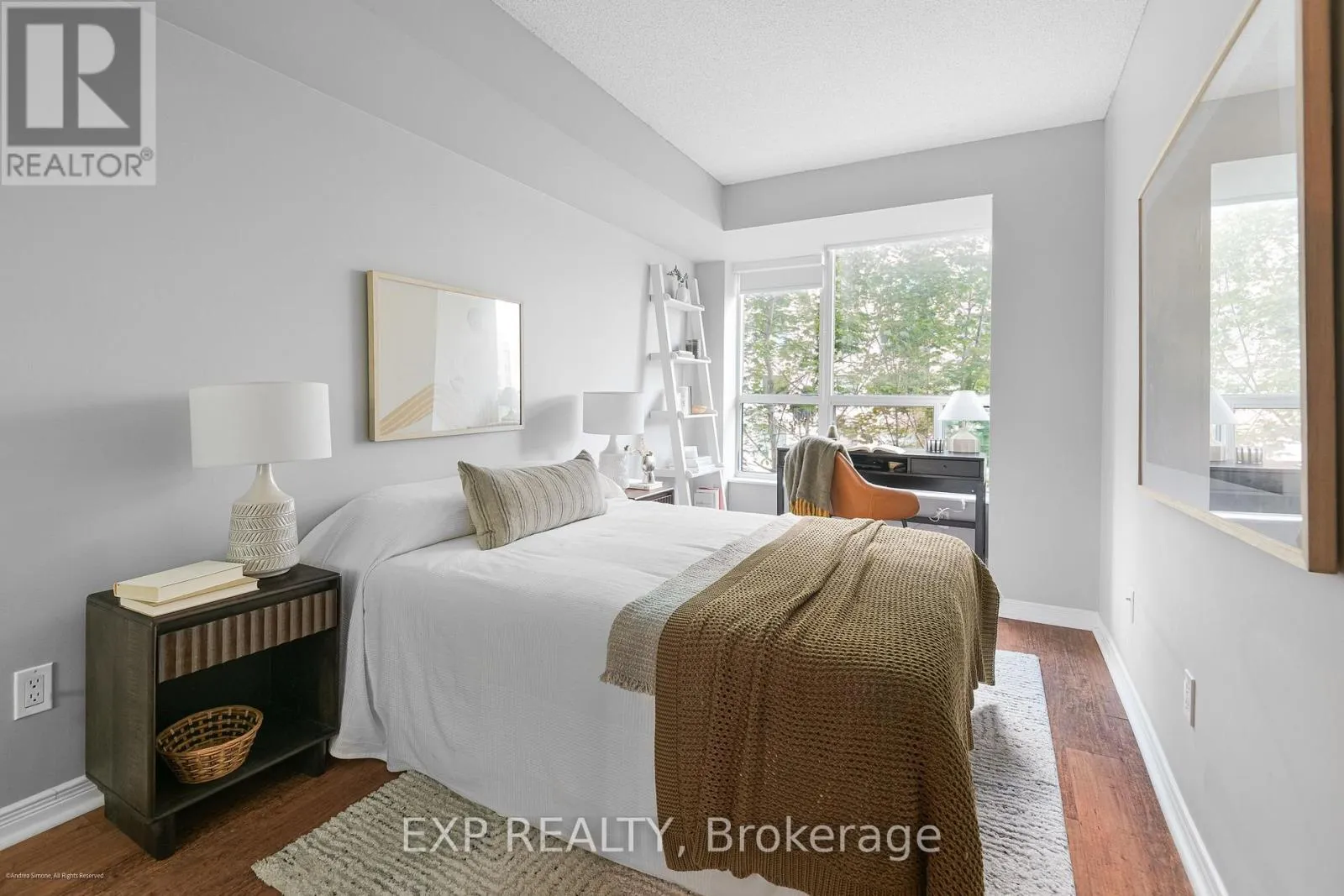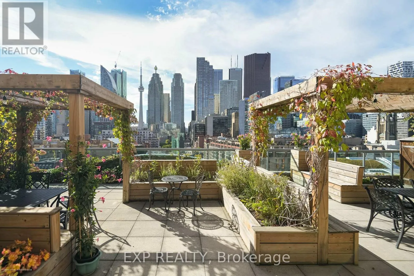 Front & Jarvis Tucked quietly across from the storied stalls of the St. Lawrence Market where the scent of fresh bread mingles with the hum of community this warm, welcoming two-bedroom, two-bathroom residence offers a rare blend of modern comfort and historic charm. Located in a discreet low-rise that blends seamlessly into one of Toronto's most iconic neighbourhoods, the home feels like a well-kept secret: just steps from some of the city's best cafes, green spaces, and cultural landmarks, yet quietly removed from the city's rush. Inside, the space opens up generously. Floor-to-ceiling sliding glass panels flood the main living and dining area with soft, natural light, drawing the eye toward a lush, tree-lined courtyard a canopy of green that transforms with the seasons and offers a peaceful backdrop year-round. The layout is intuitive and functional, with a distinctly home-like feel thats increasingly rare in todays market. Both bedrooms are large enough to comfortably accommodate king-sized beds, a testament to the intelligent design.The kitchen and bathrooms have been thoughtfully updated, marrying contemporary finishes with timeless appeal. Its a space that feels instantly livable not just a place to stay, but a place to belong.Beyond the suite, residents enjoy access to a concierge (perfect for the modern delivery lifestyle), a rooftop deck with sweeping views for summer entertaining, a well-equipped gym, party room, and more. Here, in the heart of the city, where cobblestone streets meet cafe culture and historic architecture meets modern convenience, this home offers something rare: a true sense of place. Seller has rented a parking space within the building for 14 years; additional parking may be available for rent (subject to availability and third-party arrangements) (id:27476)