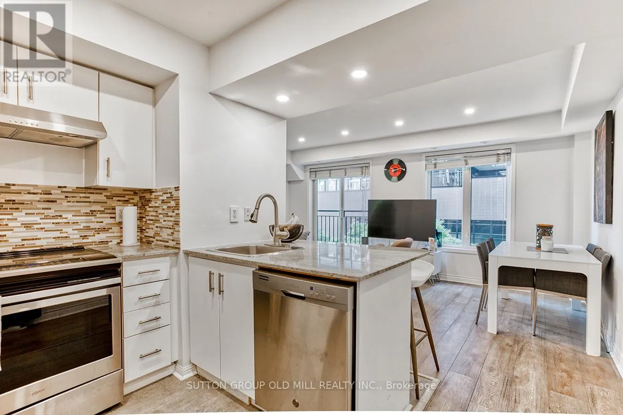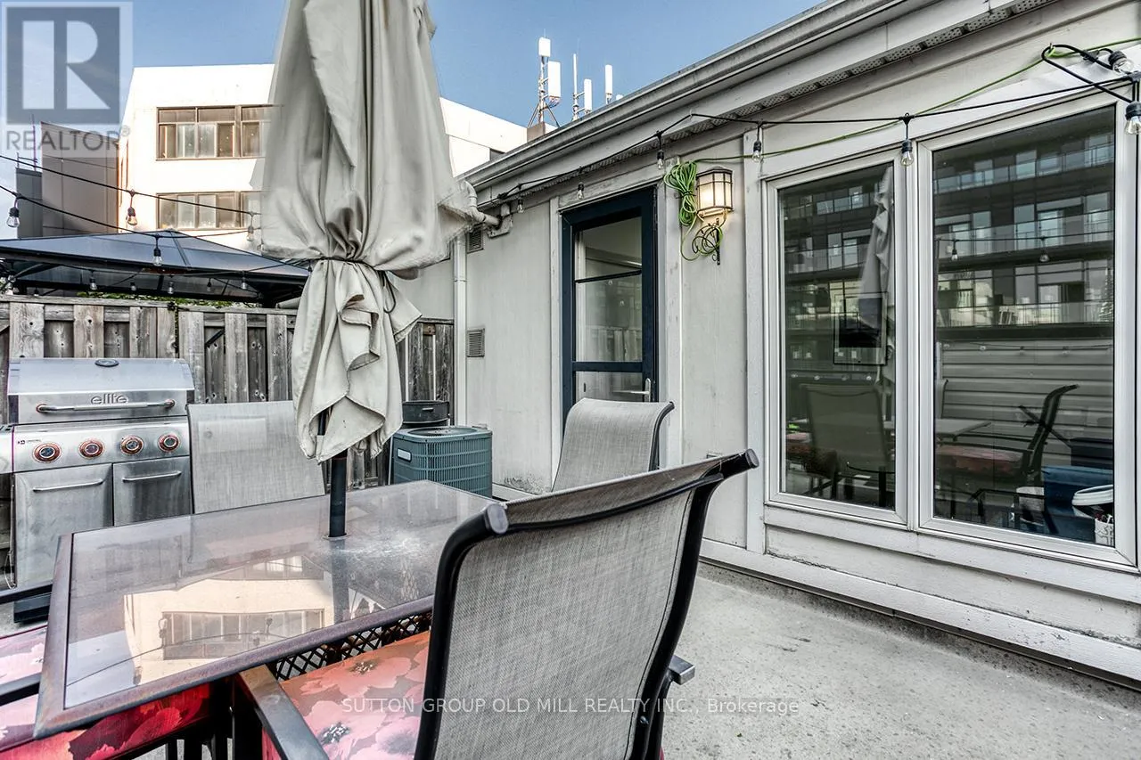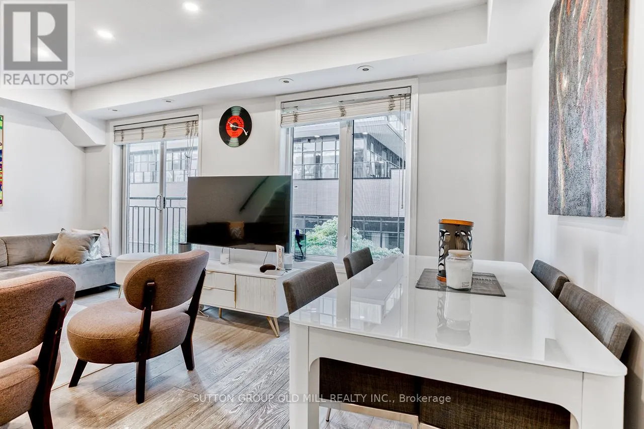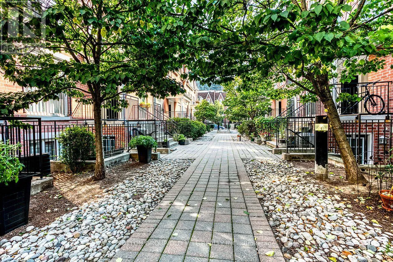 Cross Streets: King and Dufferin. ** Directions: access from street into townhouse complex. Welcome to your stylish urban retreat in Trendy King West, just steps from Liberty Village, transit, shopping, top-rated restaurants, and all the conveniences of downtown living. This modern townhouse features a private rooftop terrace perfect for entertaining or unwinding, plus access to a beautifully landscaped courtyard. Inside, enjoy: Upgraded kitchen appliances, including a premium Miele washer and dryer, Laminate flooring and pot lights in the living area for a sleek, contemporary feel, Two fully renovated washrooms with high-end fixtures (sink, toilet, shower), A versatile den (~40 sq ft) ideal for a home office or guest bedroom, Extra storage with custom sliding doors on the second level, Bonus features: One parking space and one locker included, All current appliances are included - just move in and enjoy! (id:27476)
