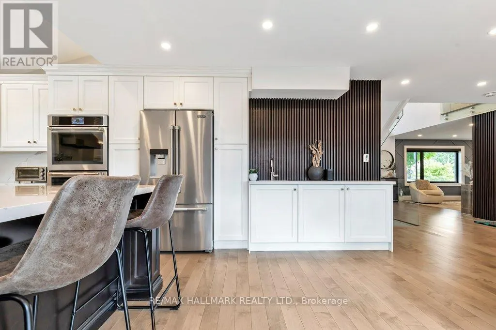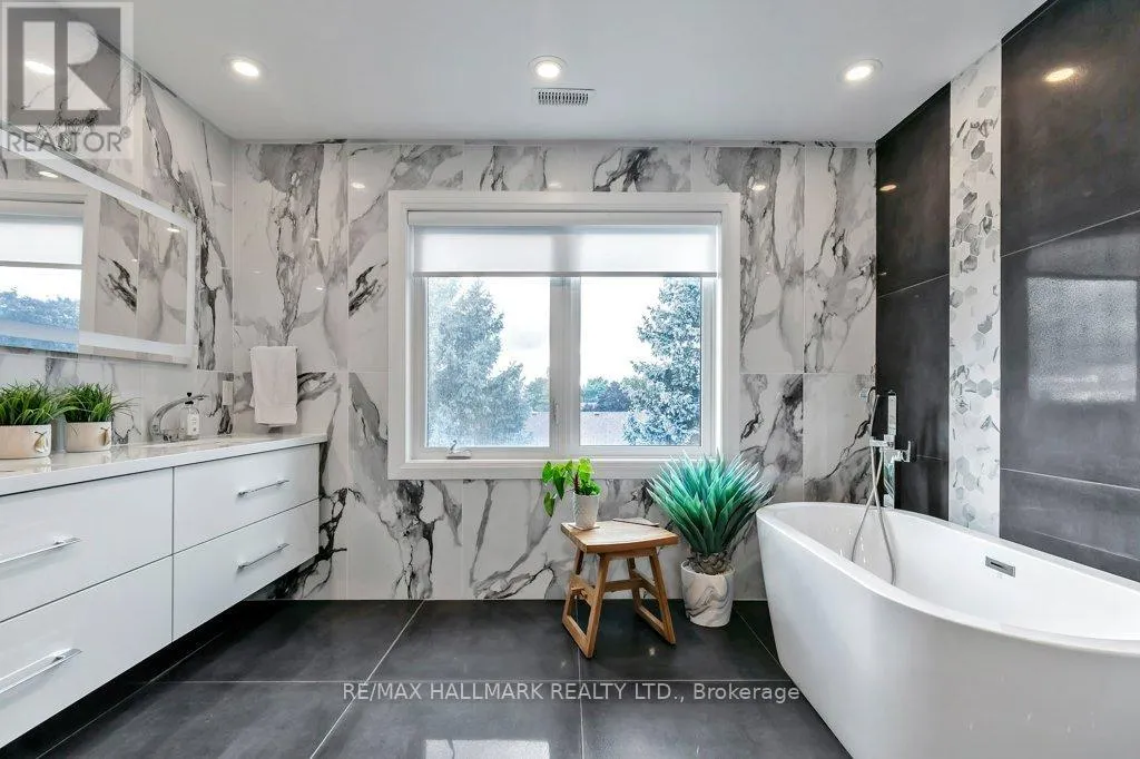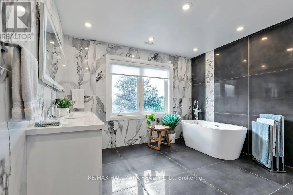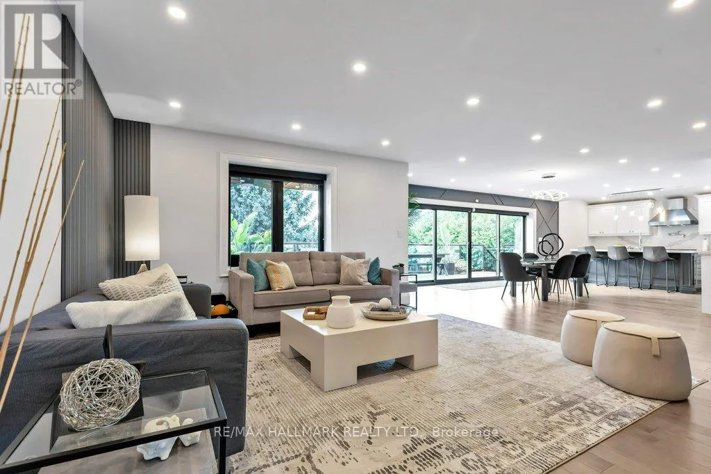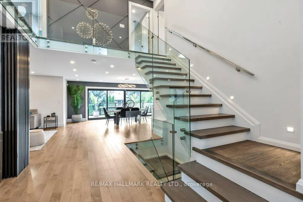Cross Streets: Underhill Dr/ Hatherton cres. ** Directions: GPS. Welcome to 3 Averdon Crescent, a luxurious 4 + 1-bedroom, 4-bathroom detached home, completely rebuilt and extended five years ago. This residence offers an expansive open-concept layout, highlighted by soaring ceilings and a stunning chandelier in the foyer. A two-way, linear gas fireplace separates the formal living room and family room, enhancing the sense of space. The large dining area with walkout to the deck leads into a gourmet quartz kitchen with a central island and top-tier appliances.Upstairs, the luxurious primary suite features a wall-to-wall closet and a spa-like 5-piece ensuite. Three additional spacious bedrooms with ample closet space and a stunning 4-piece bath complete this level. The finished basement includes a glass-walled office, a stylish 3-piece bathroom, and a spacious rec room with walkout access to the beautifully landscaped backyard, which offers three seating areas and room for play. With over 600 square feet of outdoor living space, a raised deck, and views of the city skyline and CN Tower, this home combines modern luxury with family-friendly comfort. Additional features include EV charging in the garage, proximity to great schools, green spaces, and ravine access. This is the home you've been waiting for! (id:27476)