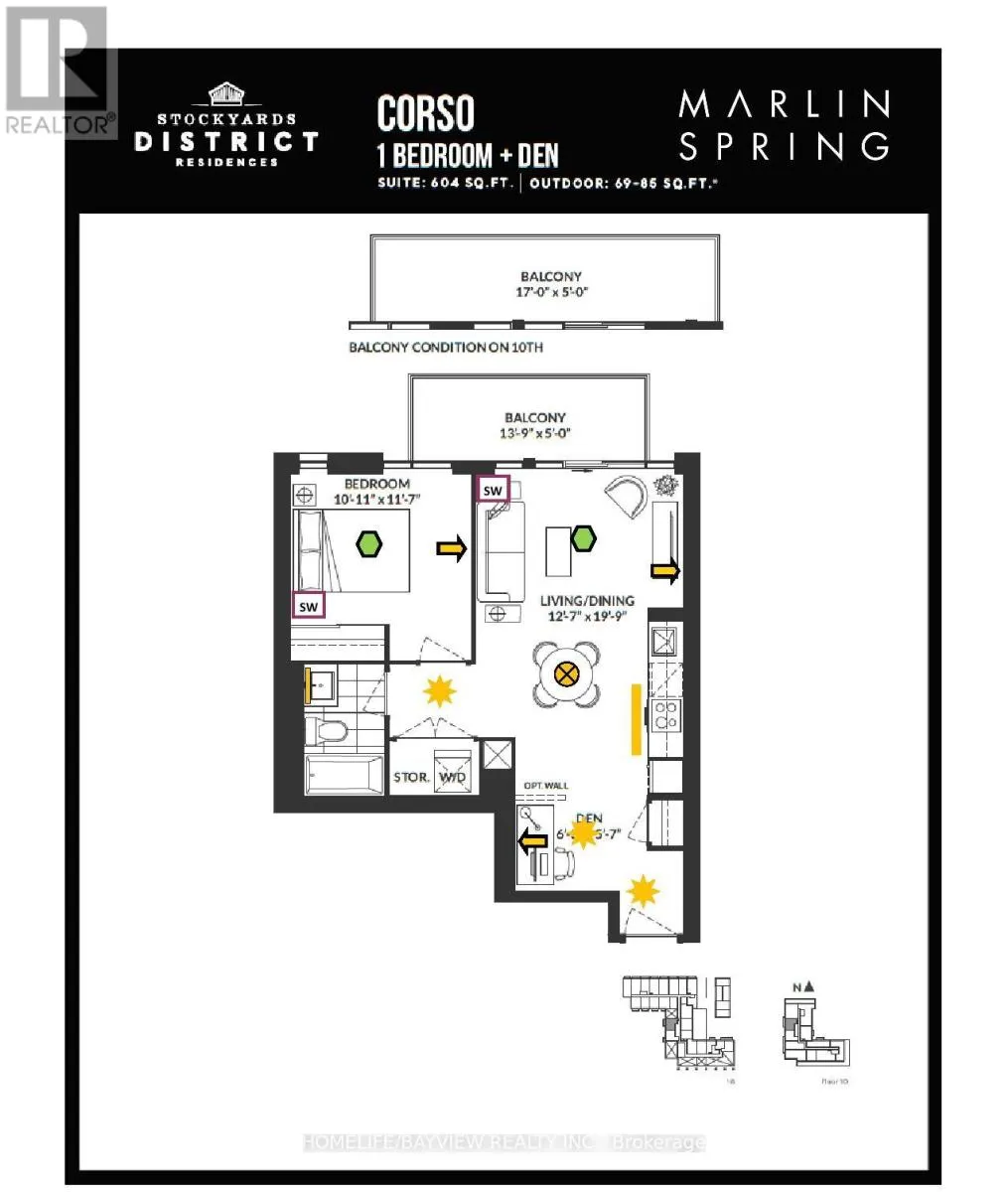 Cross Streets: St. Clair Ave W & Keele St. ** Directions: North of St Clair Ave West and West of Keele St. Welcome to this sun-drenched, 3-year-new boutique condo in the highly coveted Stockyard Junction community. This stylish 1-bedroom plus den suite offers 604 sq ft of thoughtfully designed interior space with soaring 9-ft ceilings and expansive floor-to-ceiling windows, complemented by a 69 sq ft west-facing balcony with unobstructed sunset views. The open-concept layout features a contemporary kitchen with sleek two-tone tall cabinetry, quartz countertops, and premium stainless steel energy-efficient appliances, while the bathroom showcases chic modern finishes. Natural-toned Park Lane laminate flooring flows throughout, creating a warm and cohesive ambiance. Enjoy the convenience of one parking space and one locker, all in a prime location just minutes from TTC, streetcar, banks, and restaurants. Walk to everything you need-The Nations, a unique grocery and entertainment hub, Stockyard Village Mall, Walmart, Starbucks, and more. (id:27476)