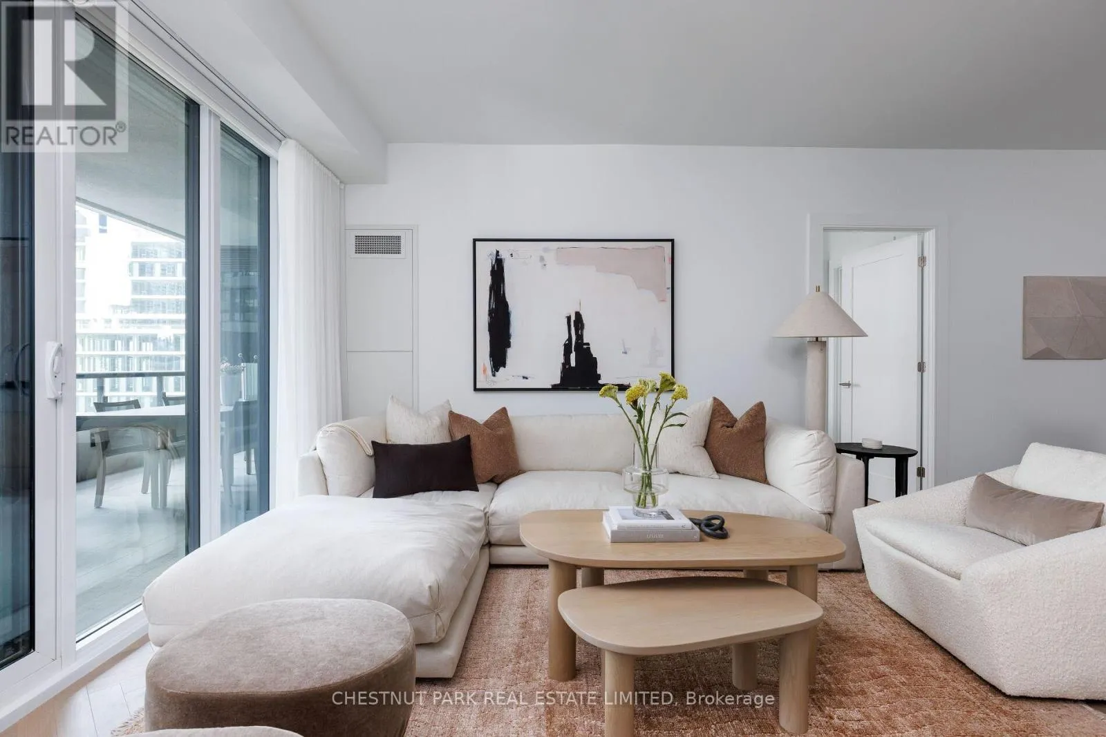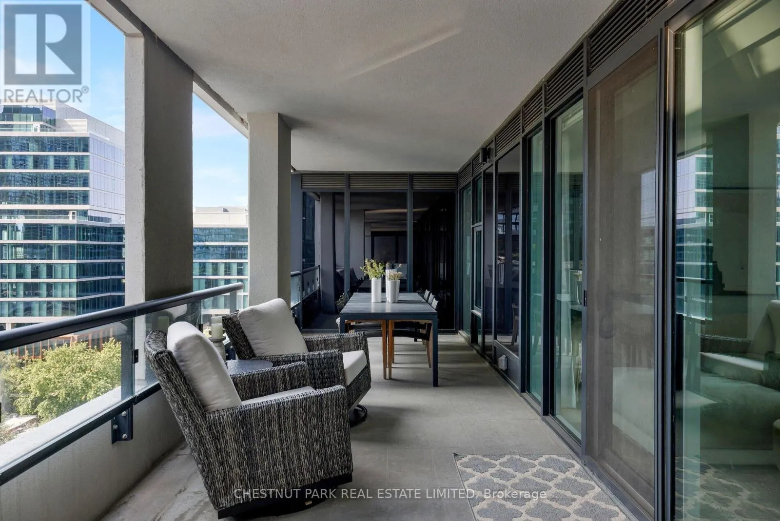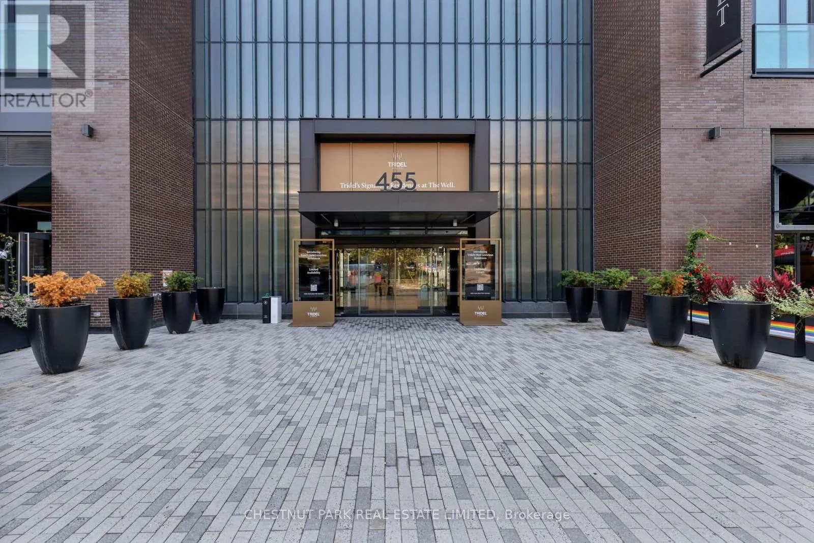 Spadina Ave & Wellington St Elevate your lifestyle in this exceptional 2 Bedroom + Den, 2.5 Bathroom suite at The Well Signature Series by Tridel, An exclusive 98 suite building. A 342 sq ft balcony spans the full width of the suite, extending the living space and showcasing stunning south-facing city and lake views. The suite features herringbone hardwood floors, floor-to-ceiling windows, and upgrades including custom millwork in the walk-in closets and laundry/pantry. Motorized blinds and drapery throughout provide effortless light control at the touch of a button. Chefs kitchen with Miele appliances, spa-inspired bathrooms, and versatile den blend style and functionality seamlessly. Includes 1 parking space and 1 locker. Residents enjoy exclusive amenities including an outdoor pool, fitness studio, and private lounges. (id:27476)