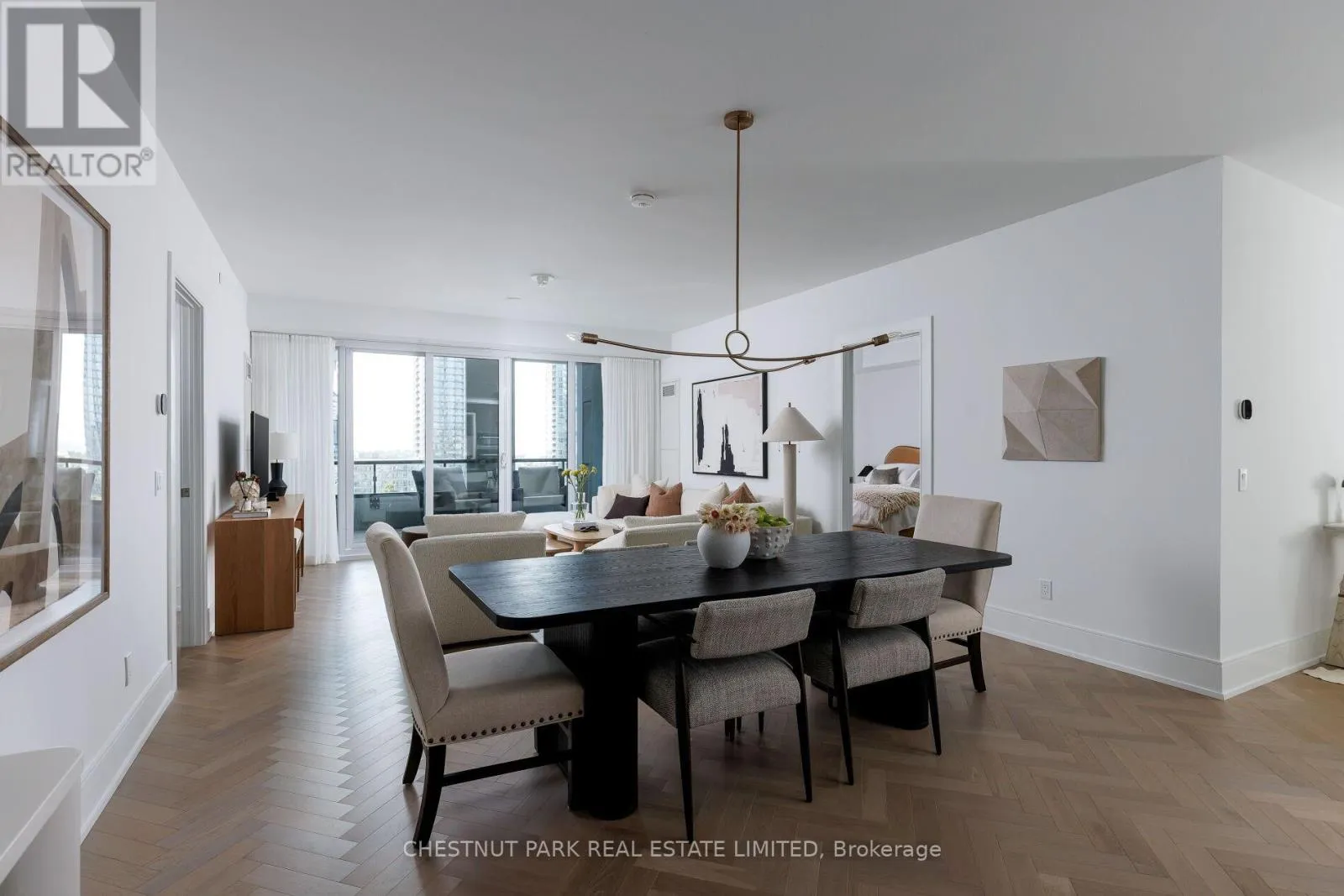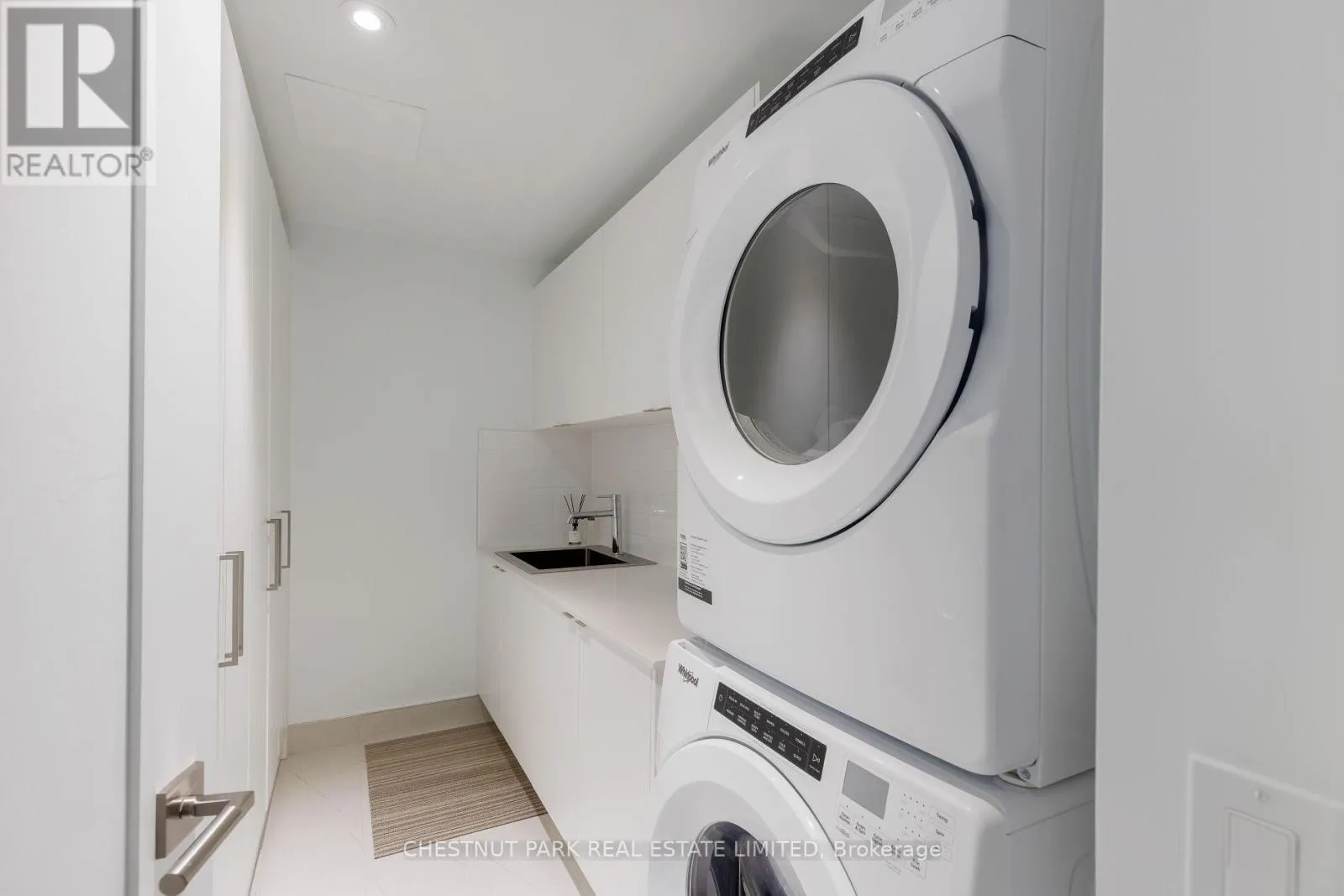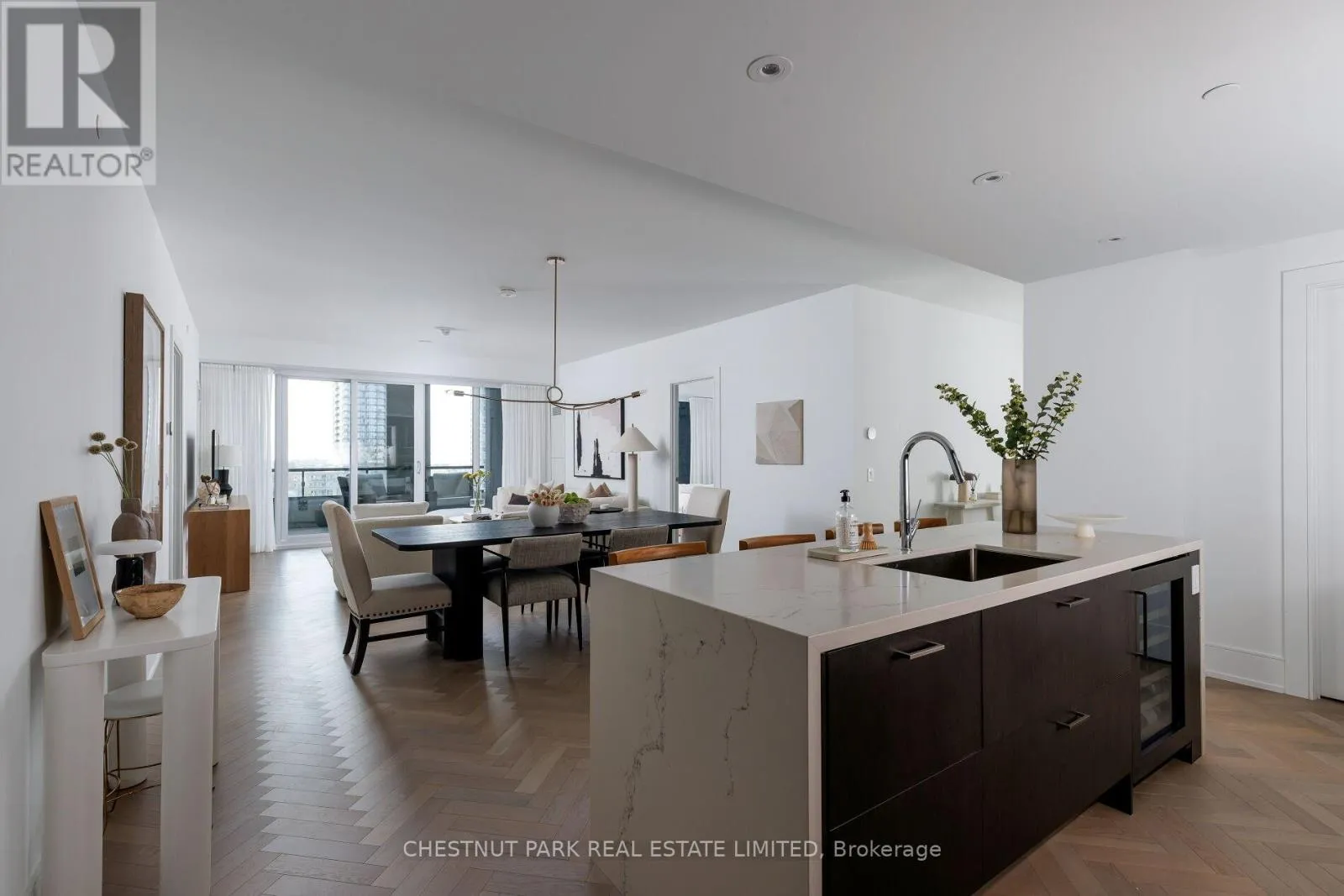 Spadina Ave & Wellington St Elevate your lifestyle in this exceptional 2 Bedroom + Den, 2.5 Bathroom suite at The Well Signature Series by Tridel, An exclusive 98 suite building. A 342 sq ft balcony spans the full width of the suite, extending the living space and showcasing stunning south-facing city and lake views. The suite features herringbone hardwood floors, floor-to-ceiling windows, and upgrades including custom millwork in the walk-in closets and laundry/pantry. Motorized blinds and drapery throughout provide effortless light control at the touch of a button. Chefs kitchen with Miele appliances, spa-inspired bathrooms, and versatile den blend style and functionality seamlessly. Includes 1 parking space and 1 locker. Residents enjoy exclusive amenities including an outdoor pool, fitness studio, and private lounges. (id:27476)