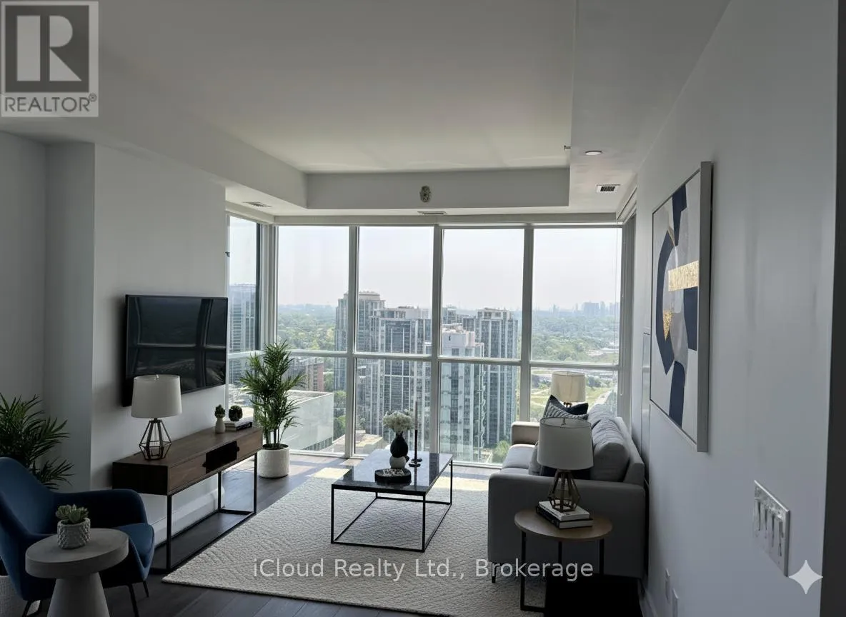 Yonge/Sheppard Location! Luxurious South-East Corner Suite with Iconic CN Tower & City Views. Welcome to a truly exceptional high-floor unit in the prestigious Emerald Park Condos at Yonge & Sheppard. This stunning 2 Bedroom + Den, 2 Bathroom corner suite offers a rare and guaranteed unobstructed South-East exposure, showcasing panoramic views of the CN Tower and the breathtaking Toronto Skyline. Enjoy spectacular downtown views from your unit through floor-to-ceiling windows, or step out onto your private balcony to enjoy your morning coffee or evening glass of wine, overlooking downtown Toronto. This exceptional view is to remain, with no future developments to obstruct it. Features an open-concept layout with premium integrated Miele stainless steel appliances (fridge, glass cooktop & oven, built-in microwave, built-in dishwasher), Quartz countertops, and a stylish center island perfect for both everyday living and entertaining.Features 9-ft ceilings, a modern open layout, and brand-new flooring throughout. The unit has also been recently painted. Spacious primary bedroom with a 4-piece ensuite bathroom. The versatile Den is perfectly sized for a dedicated home office or study area. The convenience of Emerald Park Towers is unparalleled. Enjoy direct indoor access to both Yonge and Sheppard Subway Lines, and no need to step outside! Direct access to an extensive complex featuring LCBO, Food Basic, Tim Hortons, a food court, pharmacy, shopping centre, and restaurants. Easy access to Highway 401 for quick commuting. Steps from endless dining, shopping, and entertainment options. 24-Hour Concierge & SecurityIndoor Pool & GymParty Room & Meeting RoomsGuest SuitesRooftop Terrace with BBQ Area. (id:27476)