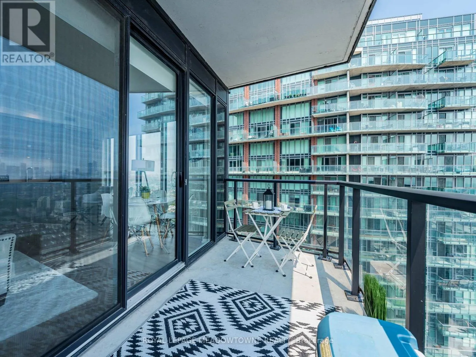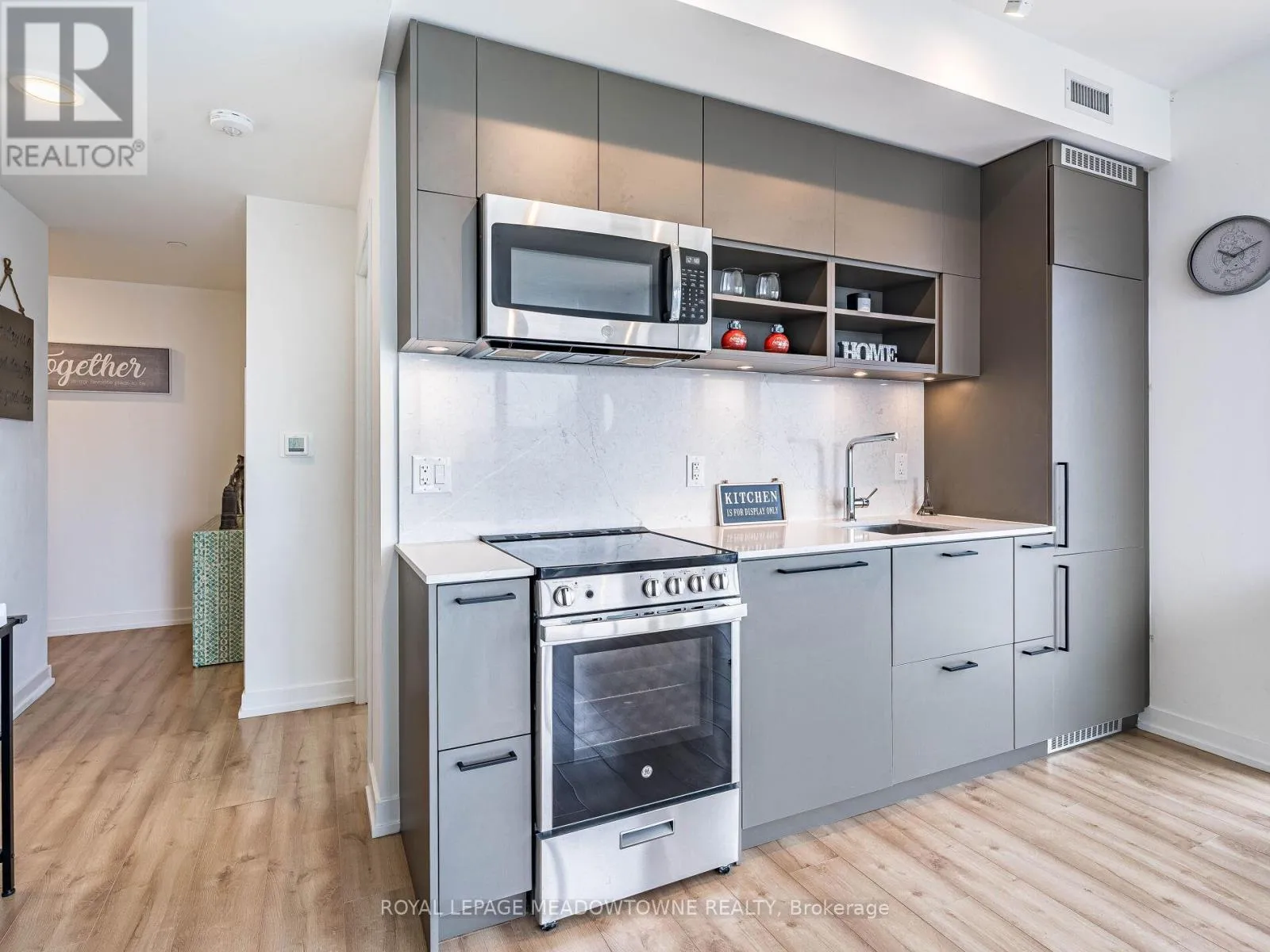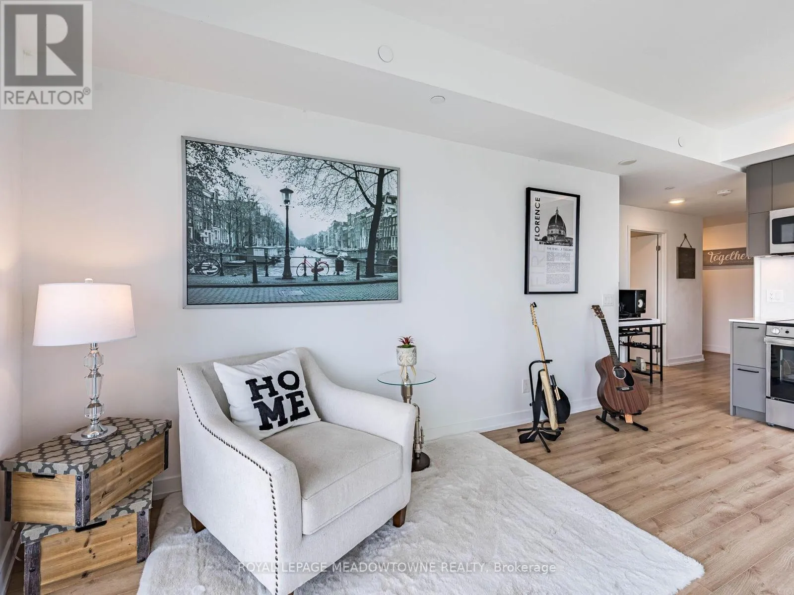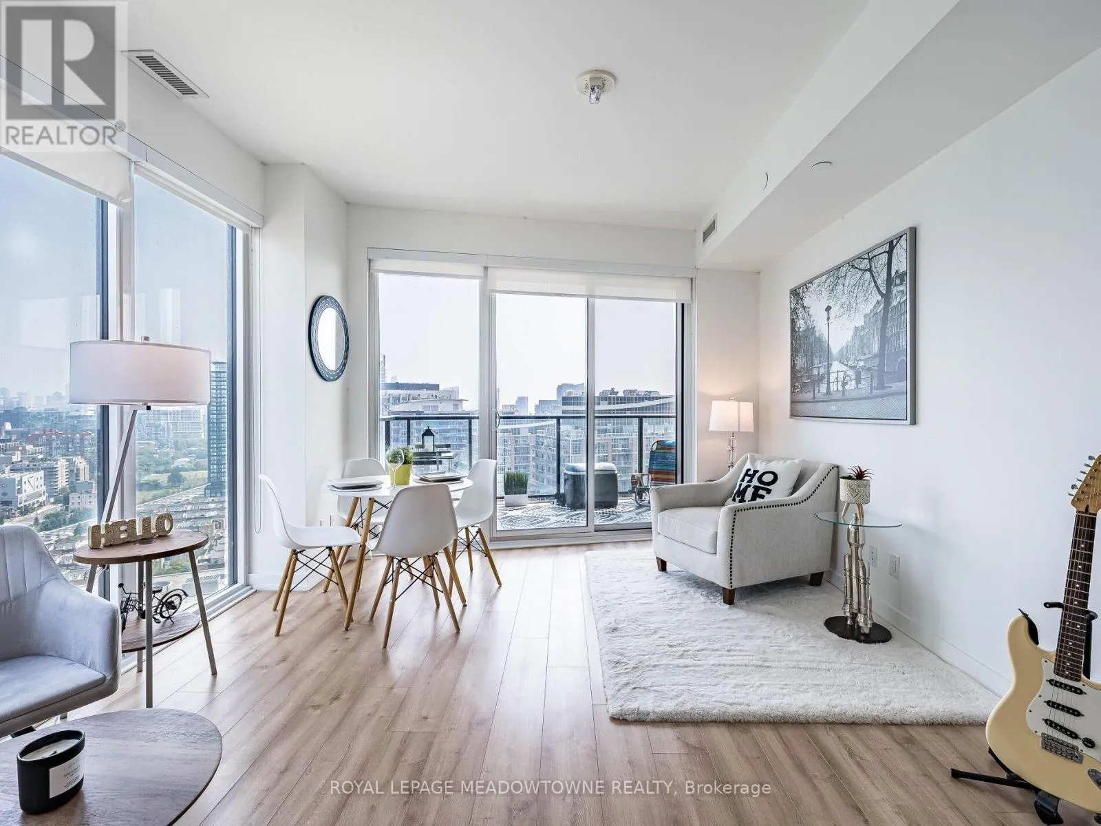 Easy Liberty & Strachan Ave 543 sqft 1Br+Study, Built in 2022! Only 3 years OLD!!! 1 Parking and 1 Locker is included! Welcome to Liberty Market Condos. This bright & unique corner unit is located right in the heart of Liberty Village, 1 Parking, 1 Locker Incl. Direct unobstructed east view of the city skyline, this stylish and beautiful open-concept gem features breathtaking views. Sun/filled & very bright Open Concept Living/Dining area with a w/o to a spacious balcony. Enjoy the quiet & unobstructed views of the beautiful Downtown Skyline and Lake Ontario and unwind watching its amazing sunset. A private corner-unit, framed by floor-to-ceiling windows, a modern open concept Kitchen with custom built stainless steel appliances, stone countertops, open shelving and laminate flooring throughout, give the perfect fusion of modern elegance, minimalist sophistication and urban convenience. A quite corner-unit-bedroom offers a spacious layout with floor-to-ceiling windows and double closet with generous storage. Exclusive Amenities of Indoor And Outdoor Spaces, Including A Massive Workout Gym, Games Room, Media Room, And Party room. A Luxurious Rooftop Deck With BBQs To Enjoy The Stunning Views. Surrounded with everything Liberty Village has to offer, tons of neighborhood amenities, including shops, restaurants 24 HR grocery store, TTC, Exhibition GO Station, Billy Bishop Airport and more. Walking distance to downtown and Lake Ontario (walking/cycling/running trails).CNE, BMO Field, concerts and waterfront festivities. (id:27476)