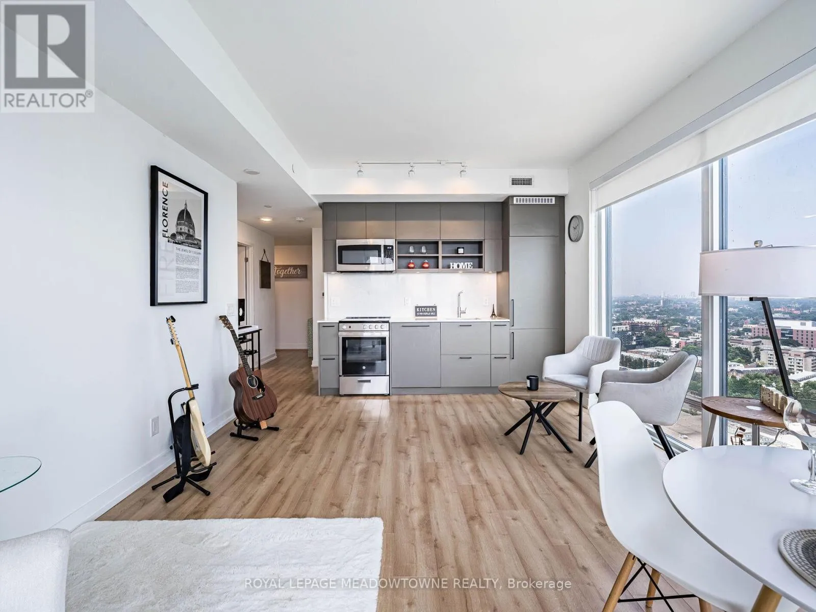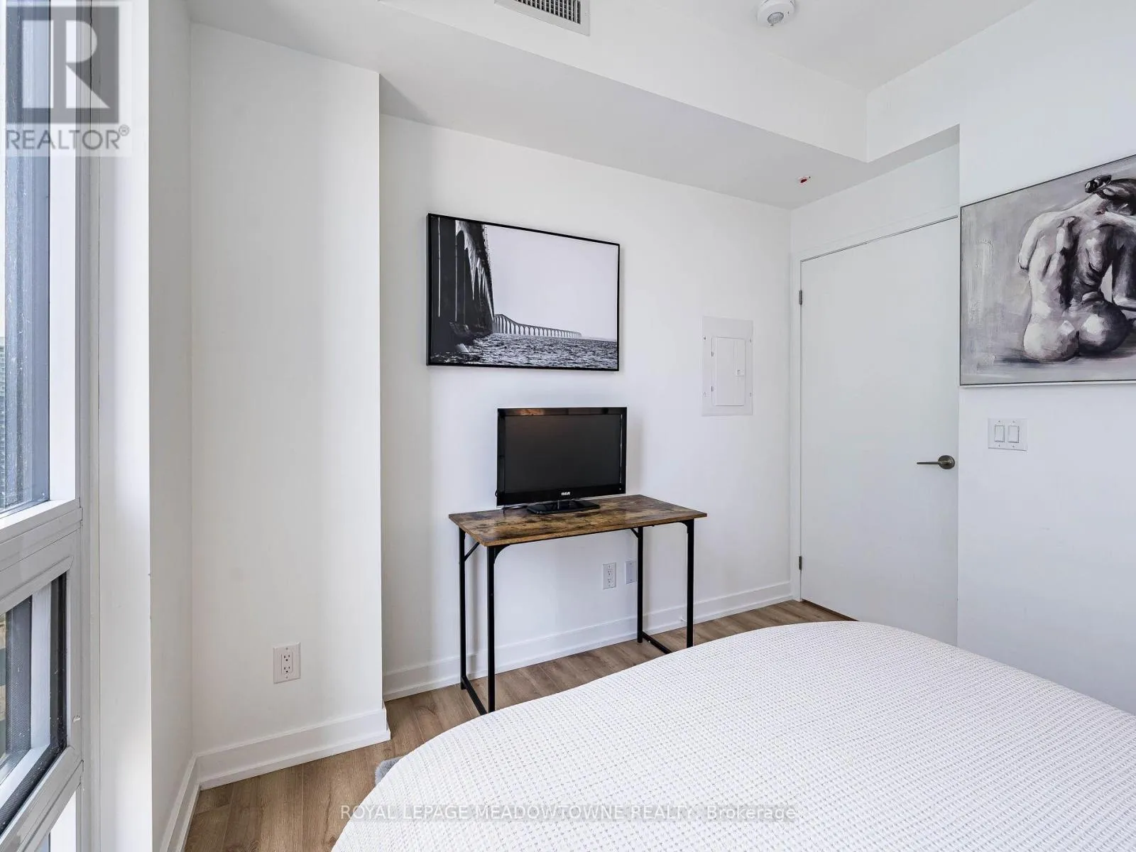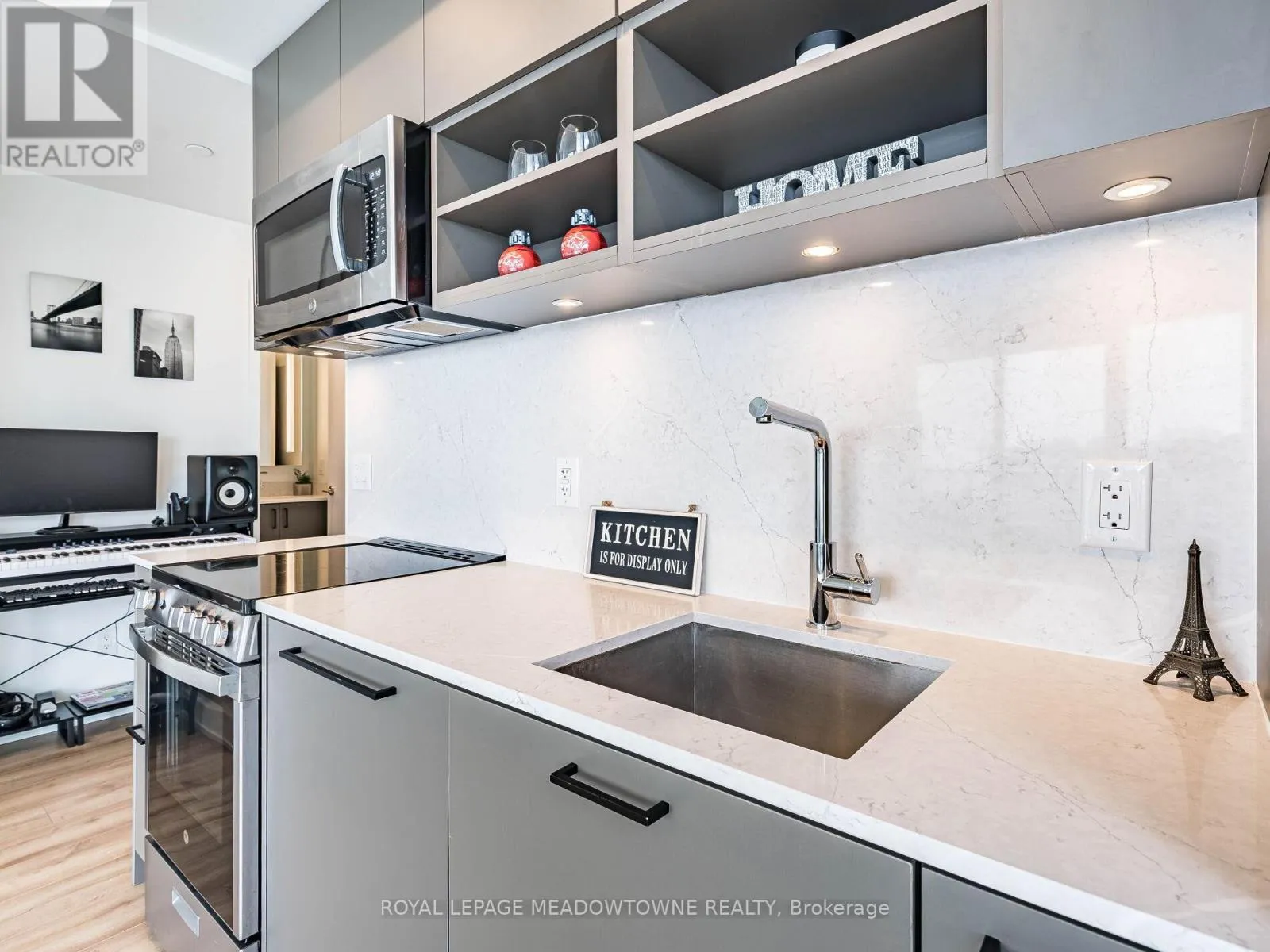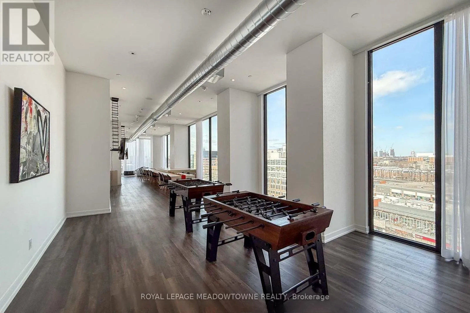 Easy Liberty & Strachan Ave 543 sqft 1Br+Study, Built in 2022! Only 3 years OLD!!! 1 Parking and 1 Locker is included! Welcome to Liberty Market Condos. This bright & unique corner unit is located right in the heart of Liberty Village, 1 Parking, 1 Locker Incl. Direct unobstructed east view of the city skyline, this stylish and beautiful open-concept gem features breathtaking views. Sun/filled & very bright Open Concept Living/Dining area with a w/o to a spacious balcony. Enjoy the quiet & unobstructed views of the beautiful Downtown Skyline and Lake Ontario and unwind watching its amazing sunset. A private corner-unit, framed by floor-to-ceiling windows, a modern open concept Kitchen with custom built stainless steel appliances, stone countertops, open shelving and laminate flooring throughout, give the perfect fusion of modern elegance, minimalist sophistication and urban convenience. A quite corner-unit-bedroom offers a spacious layout with floor-to-ceiling windows and double closet with generous storage. Exclusive Amenities of Indoor And Outdoor Spaces, Including A Massive Workout Gym, Games Room, Media Room, And Party room. A Luxurious Rooftop Deck With BBQs To Enjoy The Stunning Views. Surrounded with everything Liberty Village has to offer, tons of neighborhood amenities, including shops, restaurants 24 HR grocery store, TTC, Exhibition GO Station, Billy Bishop Airport and more. Walking distance to downtown and Lake Ontario (walking/cycling/running trails).CNE, BMO Field, concerts and waterfront festivities. (id:27476)