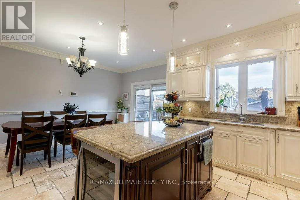 Cross Streets: Dufferin St And Eglinton Ave. ** Directions: South of Eglinton Ave and West of Dufferin St. This fabulous custom home was rebuilt in 2017 and boasts over 3,000 square feet of quality living space. The entrance features custom stamped concrete stairs and a front veranda with a main door that includes glass side panels. The open-concept main floor has 9-foot coffered ceilings and crown molding in the living and dining areas, complete with a gas fireplace. The oversized modern kitchen features cabinets that extend to the ceiling, granite countertops, a granite backsplash, and a large center island, which overlooks the breakfast area. There is a walk-out through wide glass sliding doors to a spacious custom vinyl deck. An oak floating staircase with wrought iron railing leads to the upper level, where you'll find a large primary bedroom that includes a 5-piece ensuite with a separate glass shower, a deep soaker tub, and a large walk-in closet with crown molding. In addition, there are three more spacious bedrooms, each with closets and crown molding. The professionally finished basement offers a large one-bedroom apartment featuring a modern kitchen with granite countertops, an open-concept living room, and a large bedroom with a double closet and ensuite laundry. There is also a separate area that includes an extra bedroom, additional laundry facilities, and a large cantina. The property includes a private driveway leading to a double heated garage with running water and a separate electrical panel. Other features include a built-in brick BBQ, front sprinklers, and a rough-in for a heated driveway that is ready to finish.Attached is the Garden Suite report outlining the potential for a two-storey suite of up to 1,290 square feet, or a single-storey option of 645 square feet. (id:27476)