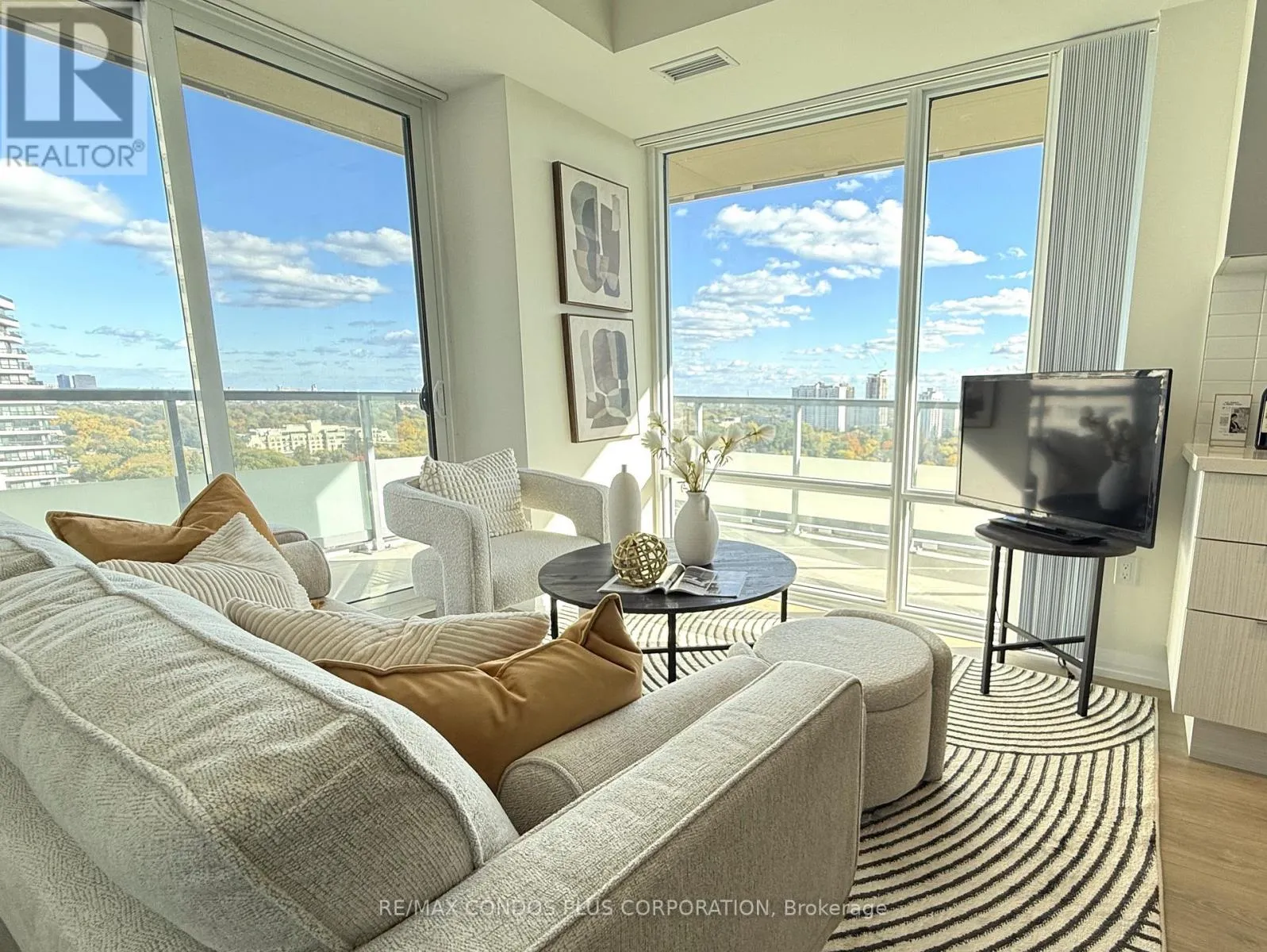 Yonge / Eglinton Luxurious Three-Bedroom, Two-Bath Corner Unit At Plaza Midtown By Plaza Group, Built Just One Year Ago. Step Onto The Southeast-Facing Wrap-Around Balcony For Unobstructed, Breathtaking Views Of Downtown And The City Skyline. This Stunning Residence Features Three Spacious Bedrooms And Two Modern Bathrooms, Perfectly Designed For Comfortable And Stylish Living. Enjoy The Airiness Of 9-foot Ceilings Throughout. The Primary Bedroom Boasts A Private Ensuite And Generous Closet Space, Creating The Ultimate Retreat. Enjoy A Sleek Contemporary Kitchen With Stainless Steel Appliances, Laminate Flooring Throughout, And Floor-To-Ceiling Windows That Fill The Home With Natural Light. Located In The Heart Of Yonge And Eglinton, You'll Be Steps Away From Top Schools, Subway Access, Shopping Centres, Cinema, Renowned Restaurants, Banks, And More. One Parking Spot And One Locker Are Included For Your Convenience. Experience The Best Of Urban Living In One Of Toronto's Most Vibrant And Highly Sought-After Neighbourhoods. (id:27476)