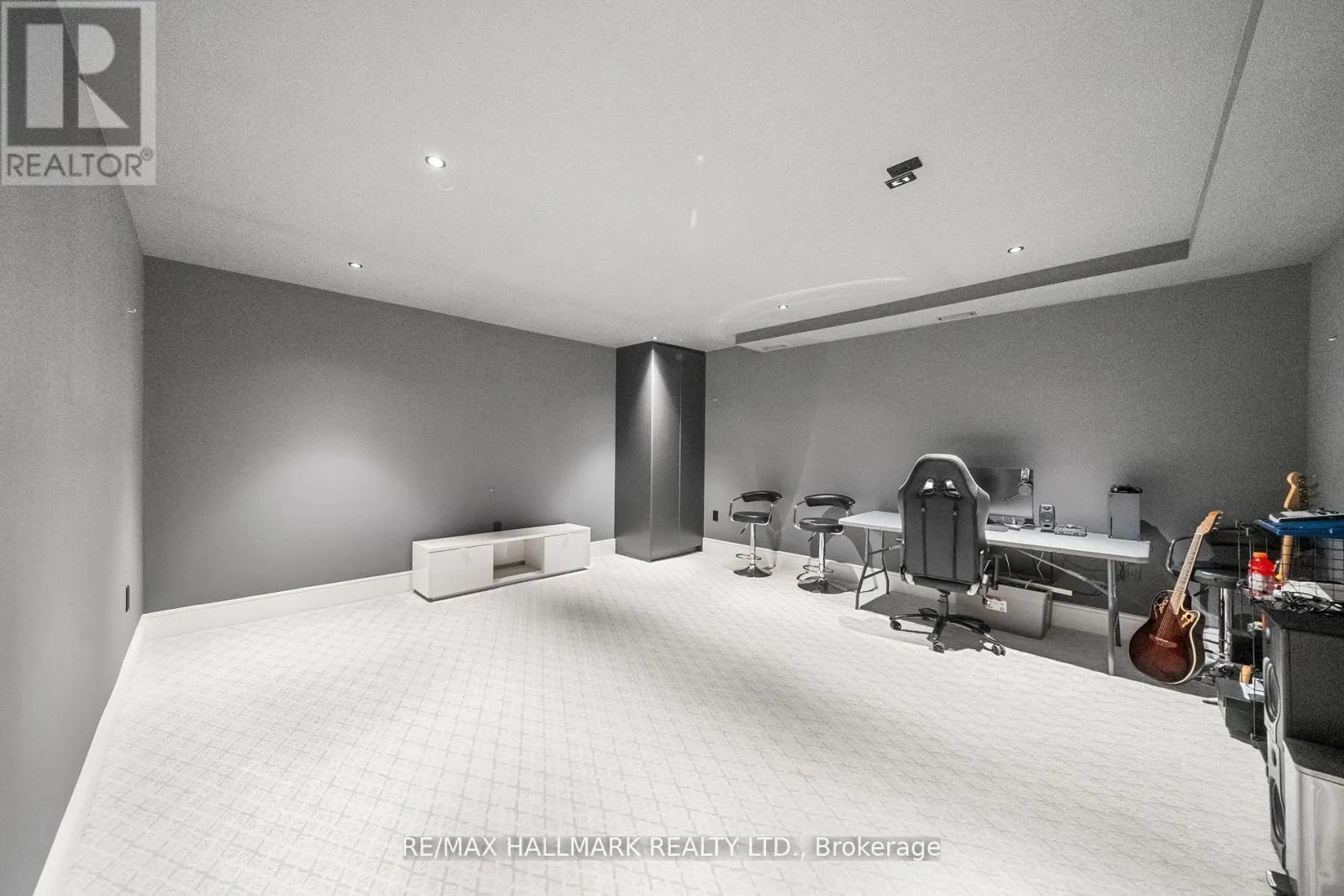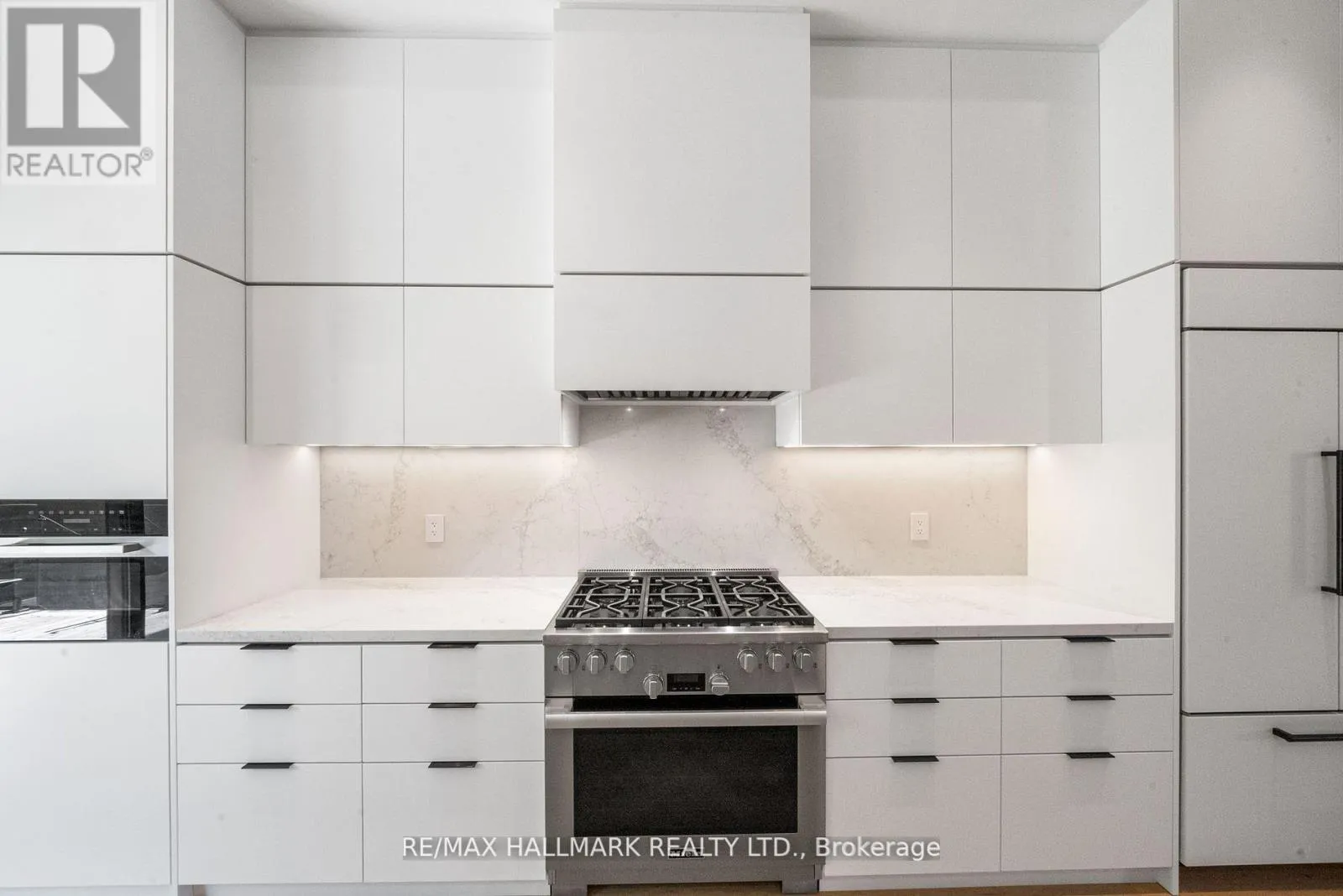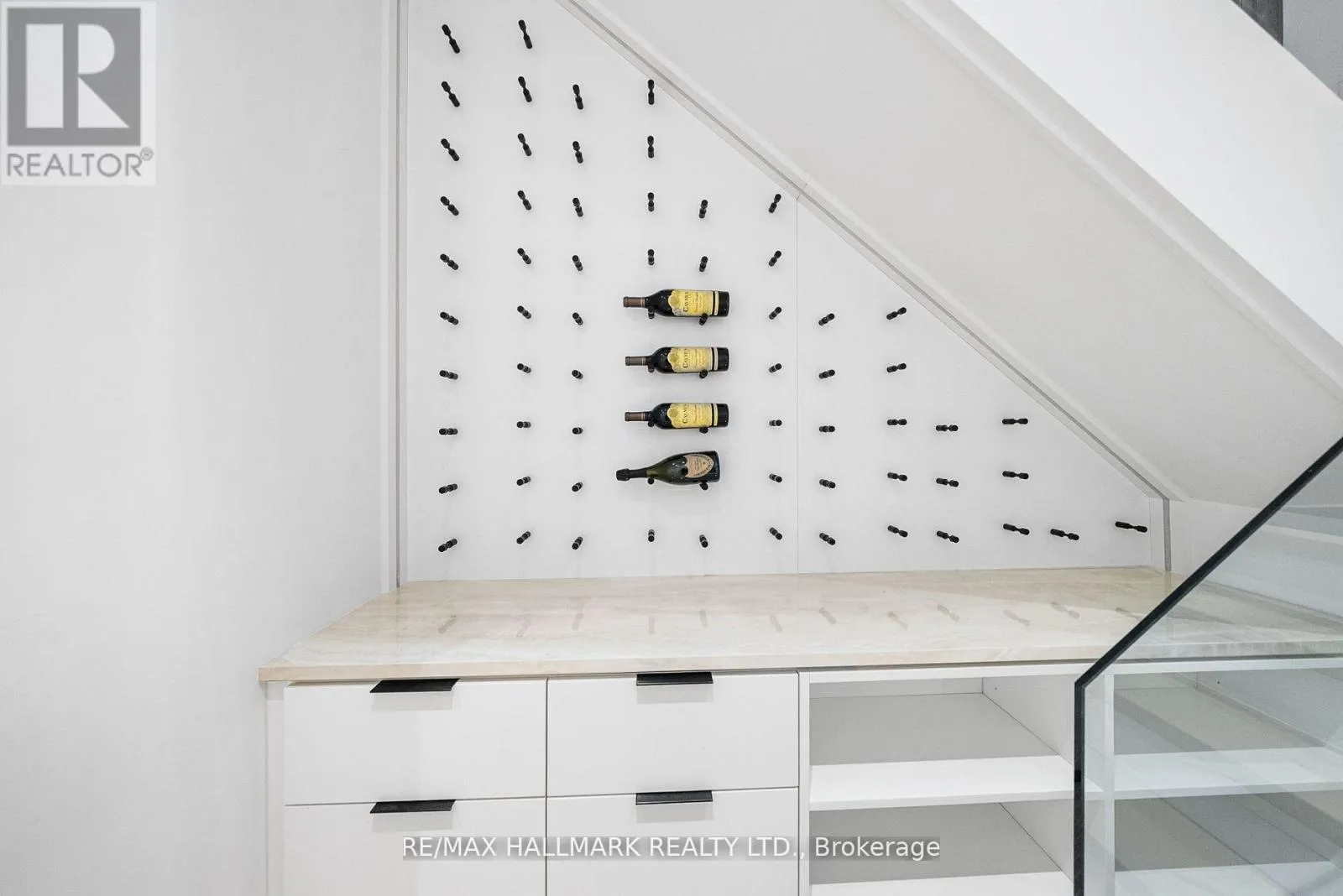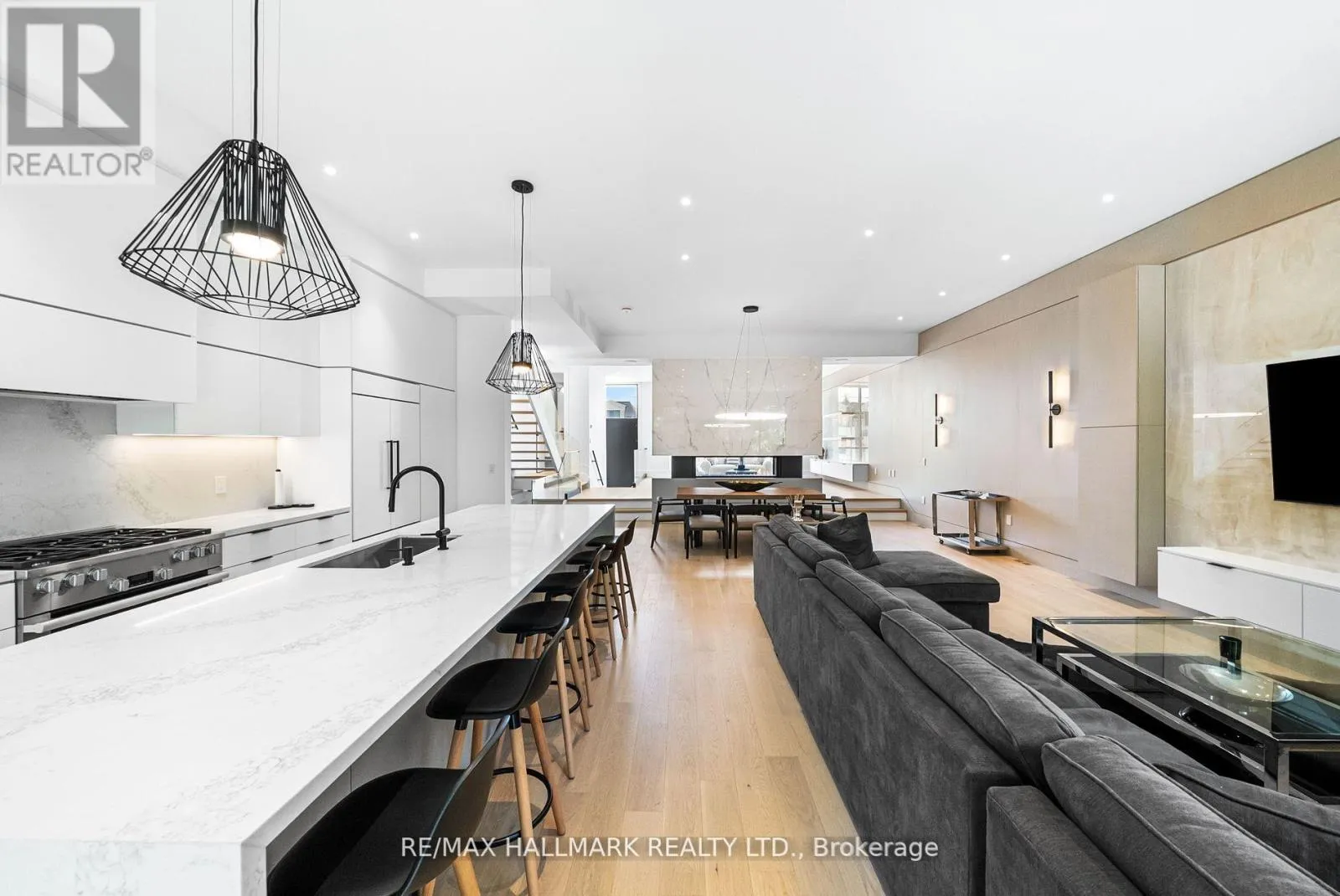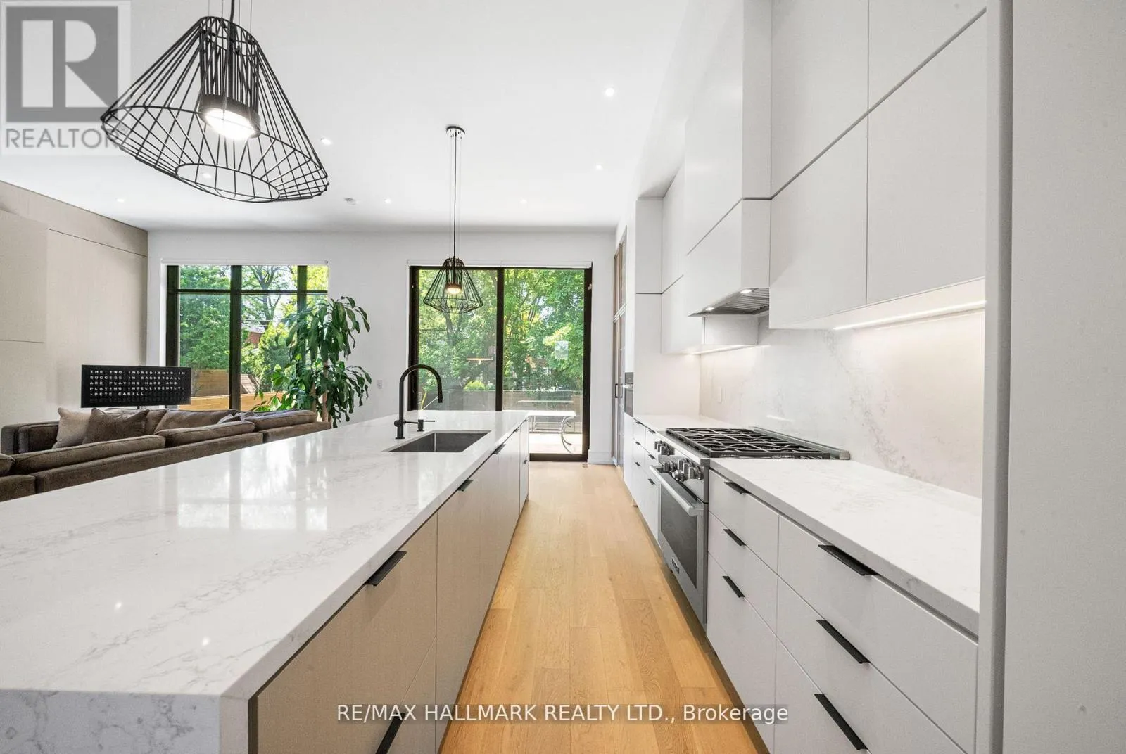 Bayview & Eglinton Welcome to 22 Divadale, located in the most desirable, quite, highly accessible and private pockets of North Leaside! This is by far one of the most uniquely designed homes in Leaside, featuring a layout that blends flow, function, and style across over 4,800 sqft of luxurious living space and checking every box. The main floor features soaring 12 foot ceilings, a chef inspired kitchen with an oversized island that seats eight, top of the line Miele & Wolfe appliances, with walkout to a large deck perfect for entertaining featuring exterior sound system, exterior lighting and gas line BBQ. White oak hardwood floors and stairs and sleek glass railings run throughout. Second floor features primary bedroom with stunning 7 piece ensuite, with heated floors and a large walk in closet with a skyslight. Three oversized bedrooms each with direct access to a bathroom and large closets. A rarely offered two floor basement with tons of features including a theatre room, nanny suite, 5 and 4 piece bathrooms, radiant heated flooring, wine display, built in speakers, separate entrance, large windows with walk out and 12 foot ceilings. A rare double car garage, hard to find in Leaside, is complemented by a full snow melt system/radiant floor heating covering the driveway, front porch, steps, side path, backyard, and basement walkout and landing. Additional features include a Control4 smart home system, electric blinds, designer lighting with dimmers, exterior lighting, a sprinkler system, gas fireplaces, skylights, and laundry on two levels. Just steps from Bayview Avenue and Eglinton Avenue. Located minutes from the top schools in Toronto including Northlea Elementary and Middle School, Bessborough Drive Elementary and Middle School, Park Lane Public School and Leaside High School. (id:27476)