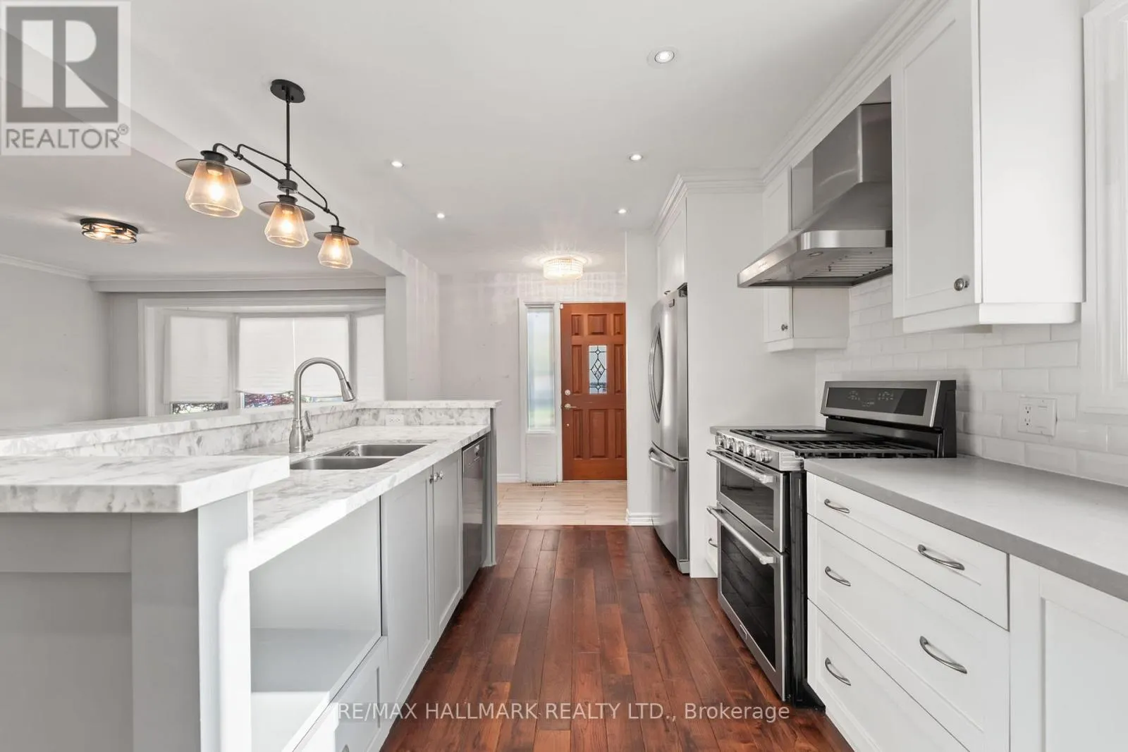 Ellesmere and McCowan Welcome to this charming 3+1 bedroom, 1+1 bathroom bungalow in the heart of Scarborough. The main level features an inviting open-concept kitchen, living, and dining area filled with natural light from large bay windows. Three well-sized bedrooms provide comfortable family living, including one with a walk-out balcony perfect for morning coffee or evening relaxation. The finished basement offers excellent versatility with its own separate kitchen, bedroom, and bathroom-ideal for extended family or rental potential. A spacious family room with a cozy fireplace creates a warm retreat, complemented by a convenient side entrance for privacy and accessibility. Located just minutes from Scarborough Town Centre, TTC transit, and Highway 401, this home combines comfort, convenience, and investment potential in one exceptional package. (id:27476)