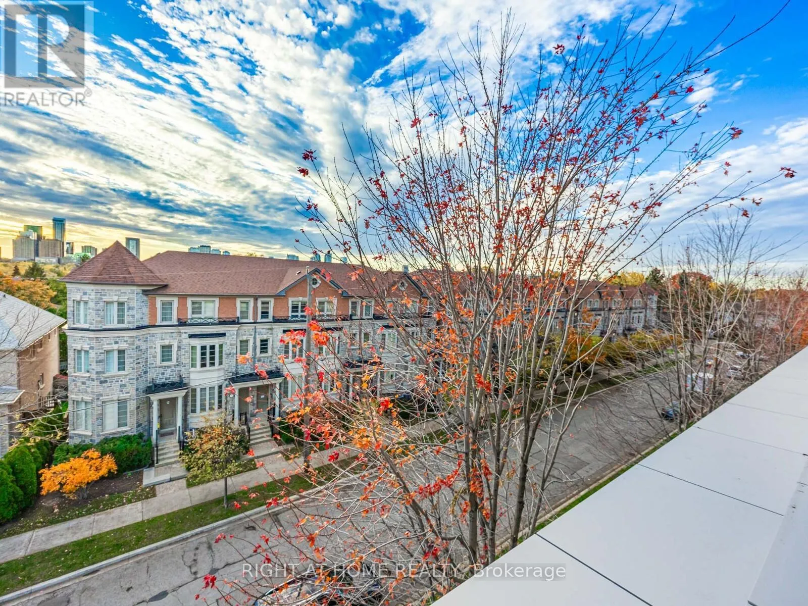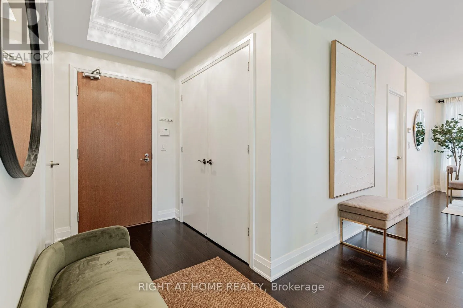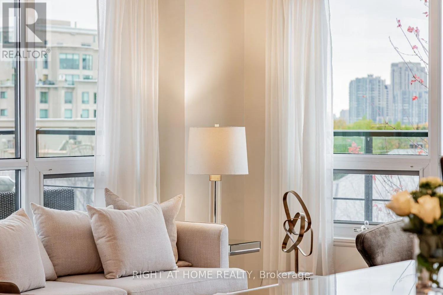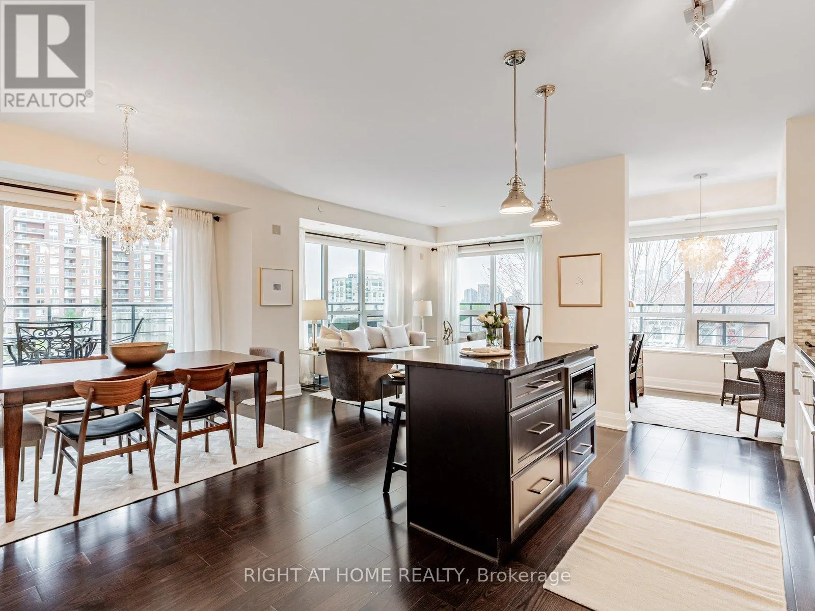 Cross Streets: Bayview & Sheppard. ** Directions: North of Sheppard East of Bayview on Clairtrell Rd & Spring Garden. Elegant Corner Suite in a luxury boutique building in Bayview Village neighborhood.This rare and beautifully upgraded 1,179 sq. ft. corner residence features a bright southwest exposure and an expansive 430 sq. ft. wrap-around terrace, offering both serene green views by day & sparkling city views by night.Step inside through a spacious foyer with double-door closet, leading into an open-concept living & dining area featuring floor-to-ceiling windows, high ceilings , built-in speakers, custom roller shades, engineered hardwood floors throughout and seamless access to the terrace.The open concept kitchen showcases high-end custom cabinetry, granite countertops and panelled built-in appliances. The split two-bedroom layout ensures privacy and comfort:The south facing primary suite, framed by a wall of glass overlooking lush treetops; includes an organized walk-in closet & a spa-inspired 4-pc ensuite with heated floor, floor-to-ceiling tiles and a B/I speaker.The second bedroom features a mirrored closet, direct access to a private terrace and a 3-pc bathroom with heated floor, a glass-enclosed shower and a B/I speaker.A sun-filled den with a large window and walkout to the terrace offers the perfect space for a home office or reading nook. Additional highlights include: In-suite laundry with ample storage, two-zone HVAC, two parking spaces conveniently located near the elevator and a Locker.Enjoy a tranquil lifestyle in this well-positioned boutique building, set back from busy streets yet steps from every convenience, Subway Station, Bayview Village Mall, Loblaws, shops, and restaurants, Highways 401 & 404, and YMCA facilities. Building amenities, including: 24 hr concierge, Gym, Rooftop garden with BBQ area, party room, Guest suite, Bike storage & visitor parking.Suite 405 is a truly special residence that combines luxury, comfort, and convenience; ideal for down-sizers and professionals seeking refined urban living in one of Toronto's most desirable neighbourhoods. (id:27476)