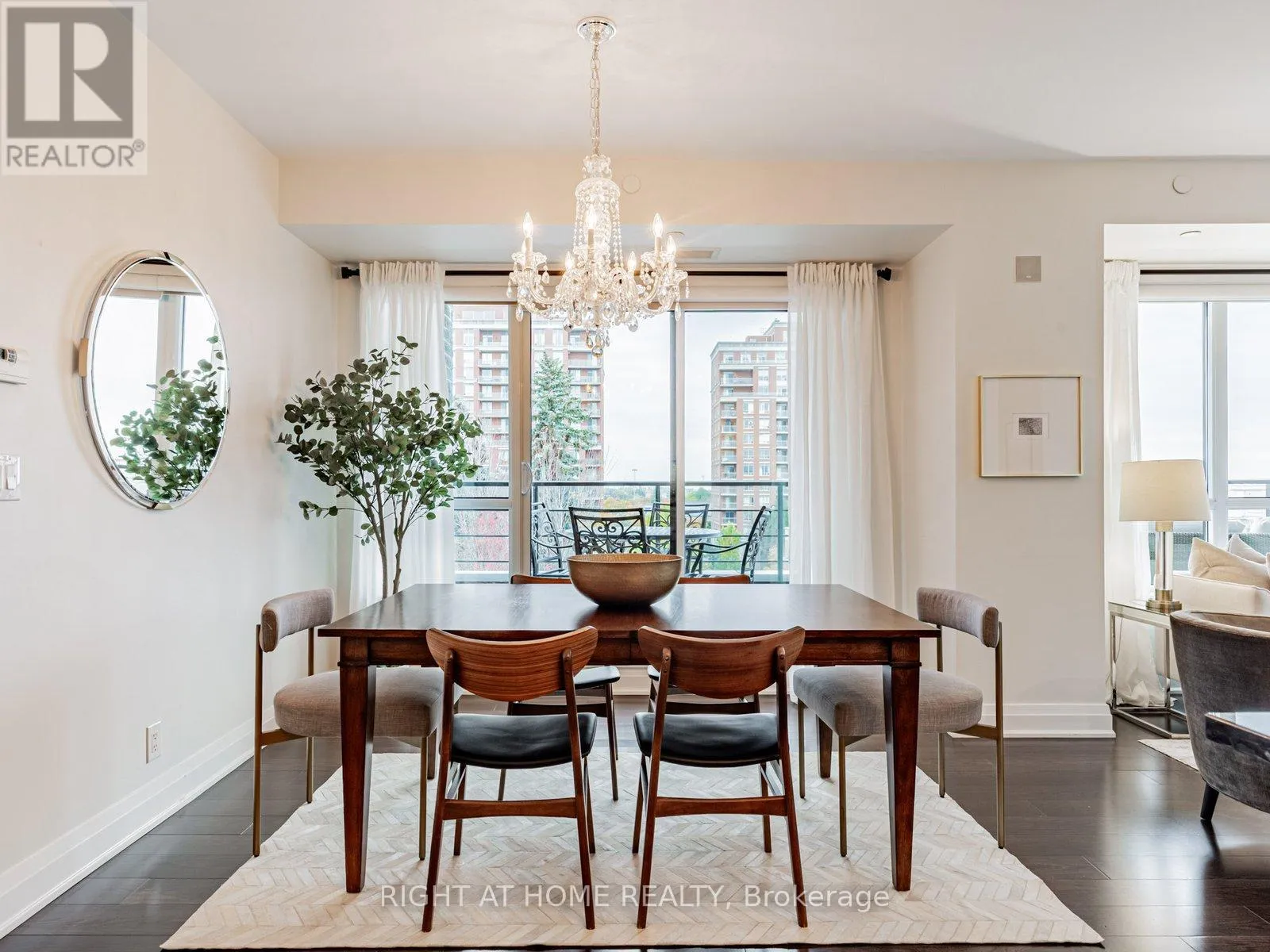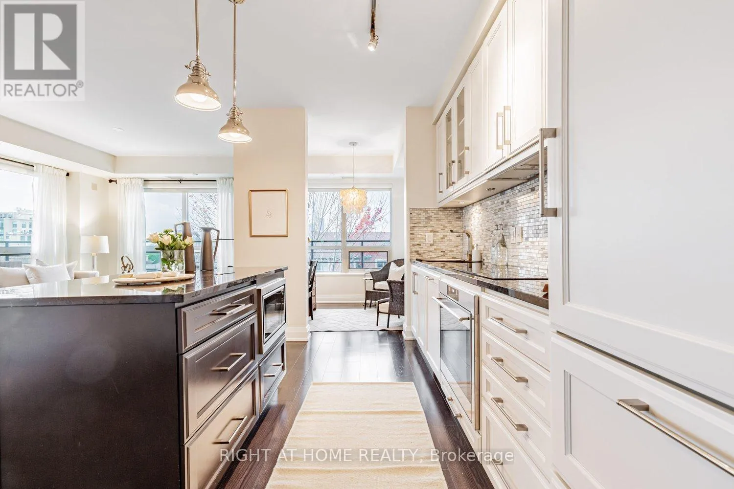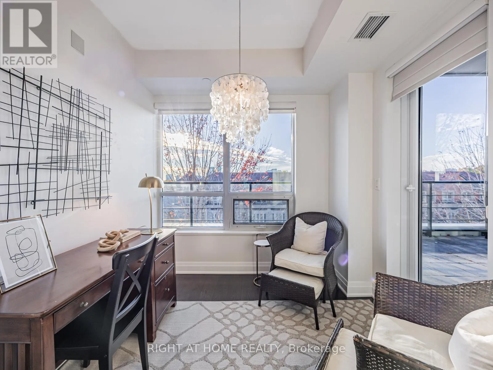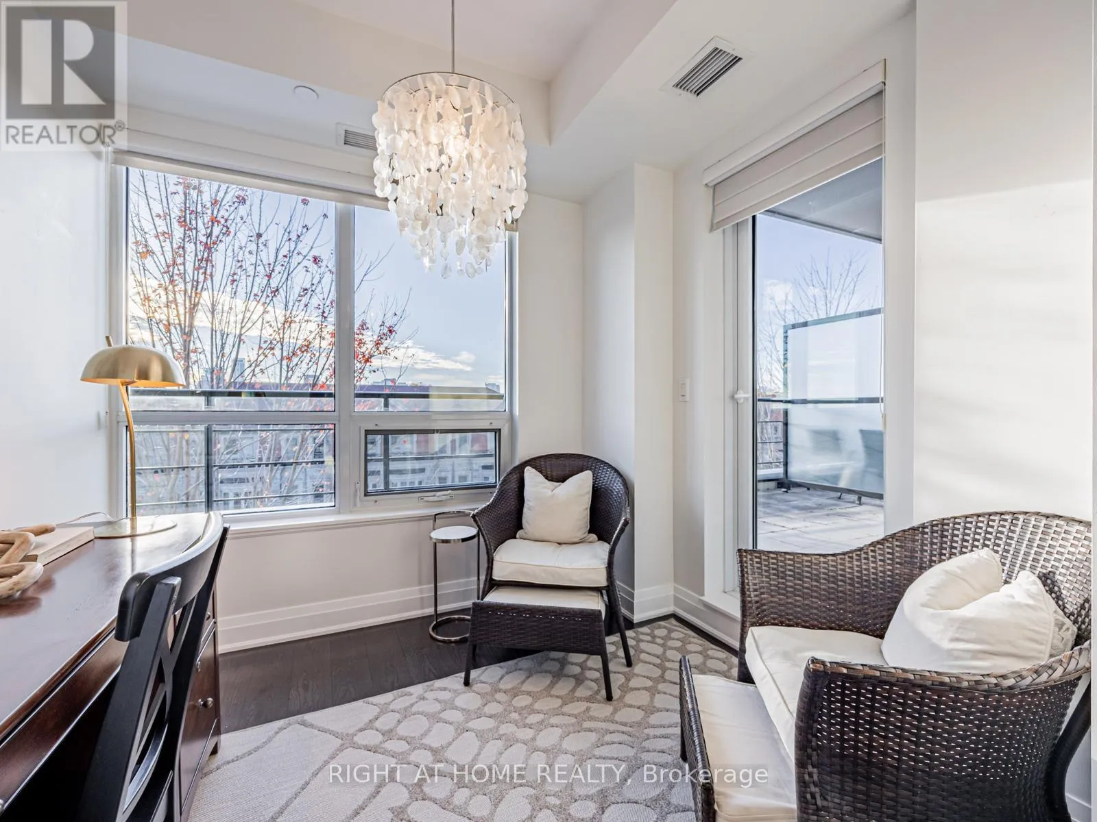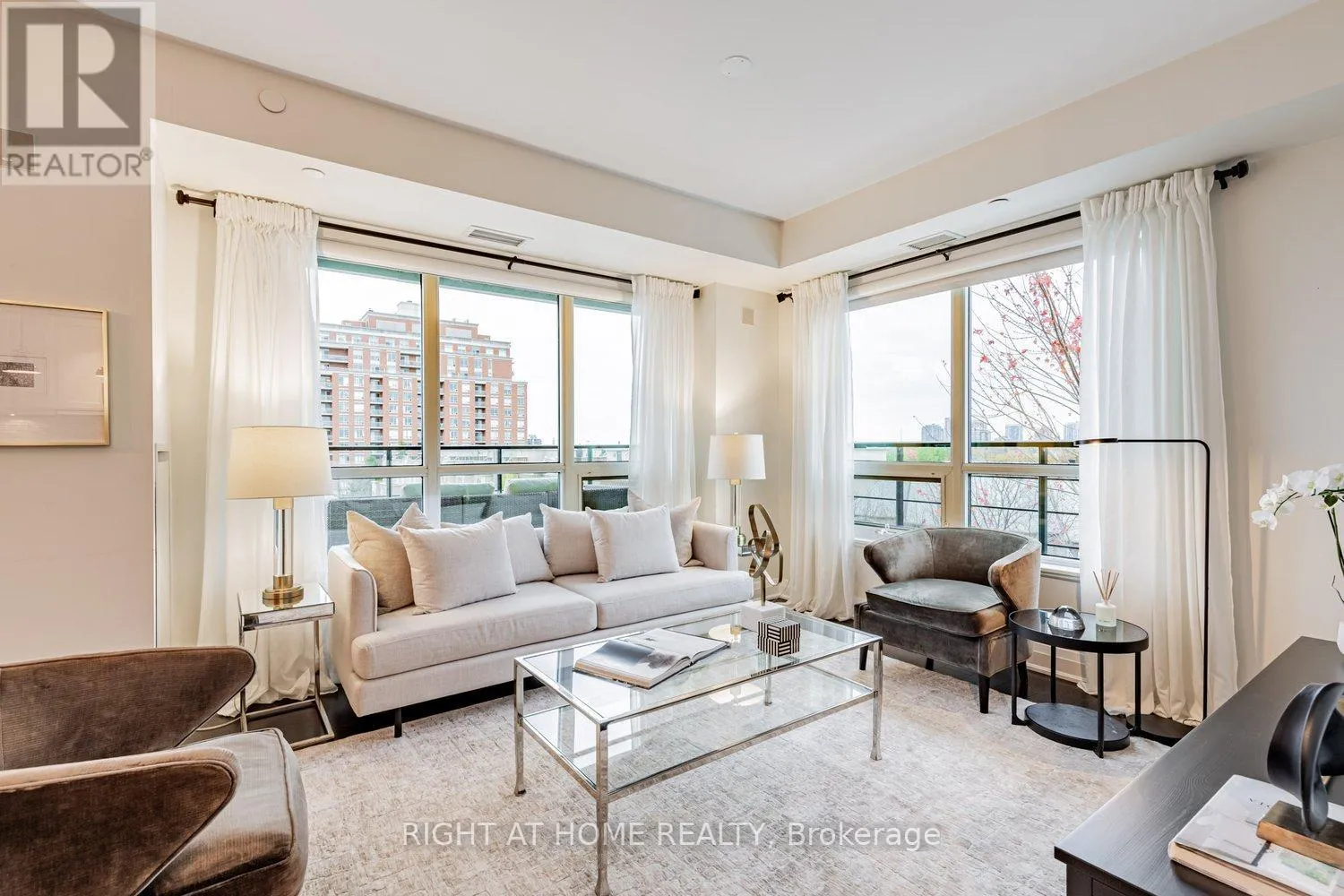Cross Streets: Bayview & Sheppard. ** Directions: North of Sheppard East of Bayview on Clairtrell Rd & Spring Garden. Elegant Corner Suite in a luxury boutique building in Bayview Village neighborhood.This rare and beautifully upgraded 1,179 sq. ft. corner residence features a bright southwest exposure and an expansive 430 sq. ft. wrap-around terrace, offering both serene green views by day & sparkling city views by night.Step inside through a spacious foyer with double-door closet, leading into an open-concept living & dining area featuring floor-to-ceiling windows, high ceilings , built-in speakers, custom roller shades, engineered hardwood floors throughout and seamless access to the terrace.The open concept kitchen showcases high-end custom cabinetry, granite countertops and panelled built-in appliances. The split two-bedroom layout ensures privacy and comfort:The south facing primary suite, framed by a wall of glass overlooking lush treetops; includes an organized walk-in closet & a spa-inspired 4-pc ensuite with heated floor, floor-to-ceiling tiles and a B/I speaker.The second bedroom features a mirrored closet, direct access to a private terrace and a 3-pc bathroom with heated floor, a glass-enclosed shower and a B/I speaker.A sun-filled den with a large window and walkout to the terrace offers the perfect space for a home office or reading nook. Additional highlights include: In-suite laundry with ample storage, two-zone HVAC, two parking spaces conveniently located near the elevator and a Locker.Enjoy a tranquil lifestyle in this well-positioned boutique building, set back from busy streets yet steps from every convenience, Subway Station, Bayview Village Mall, Loblaws, shops, and restaurants, Highways 401 & 404, and YMCA facilities. Building amenities, including: 24 hr concierge, Gym, Rooftop garden with BBQ area, party room, Guest suite, Bike storage & visitor parking.Suite 405 is a truly special residence that combines luxury, comfort, and convenience; ideal for down-sizers and professionals seeking refined urban living in one of Toronto's most desirable neighbourhoods. (id:27476)
