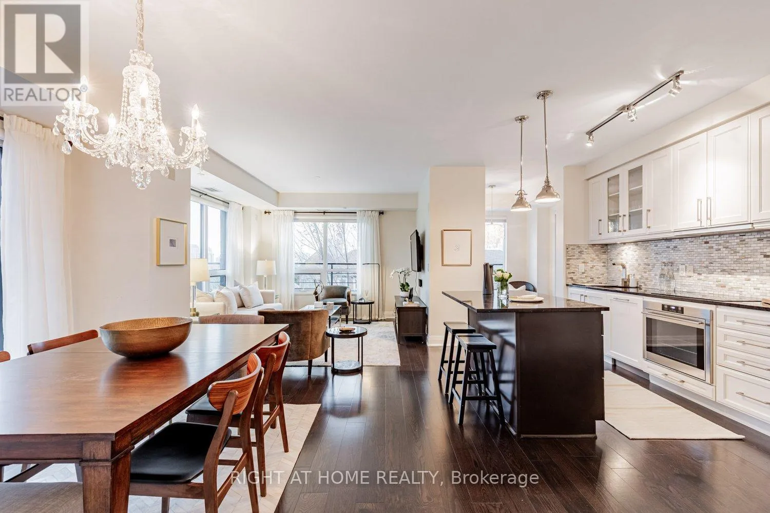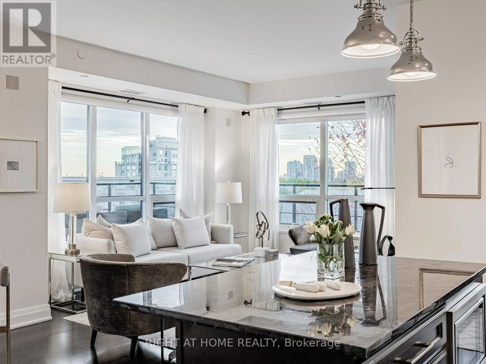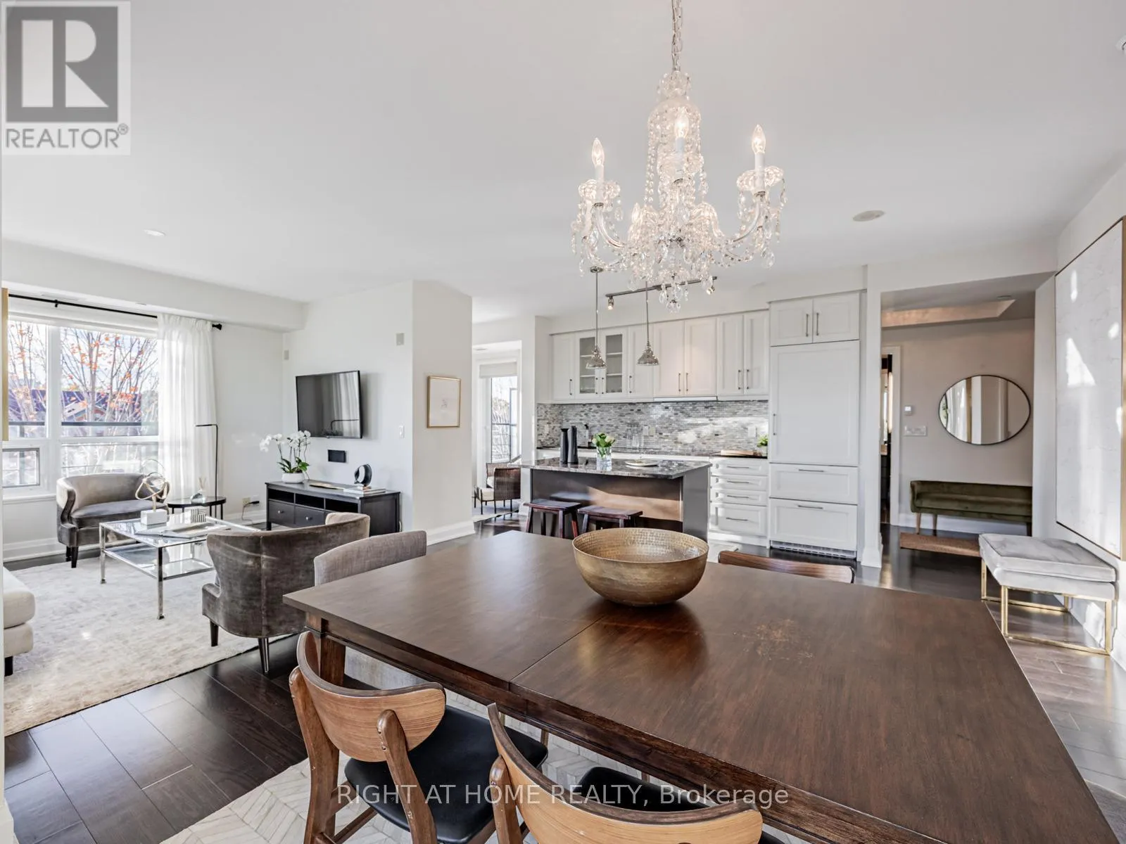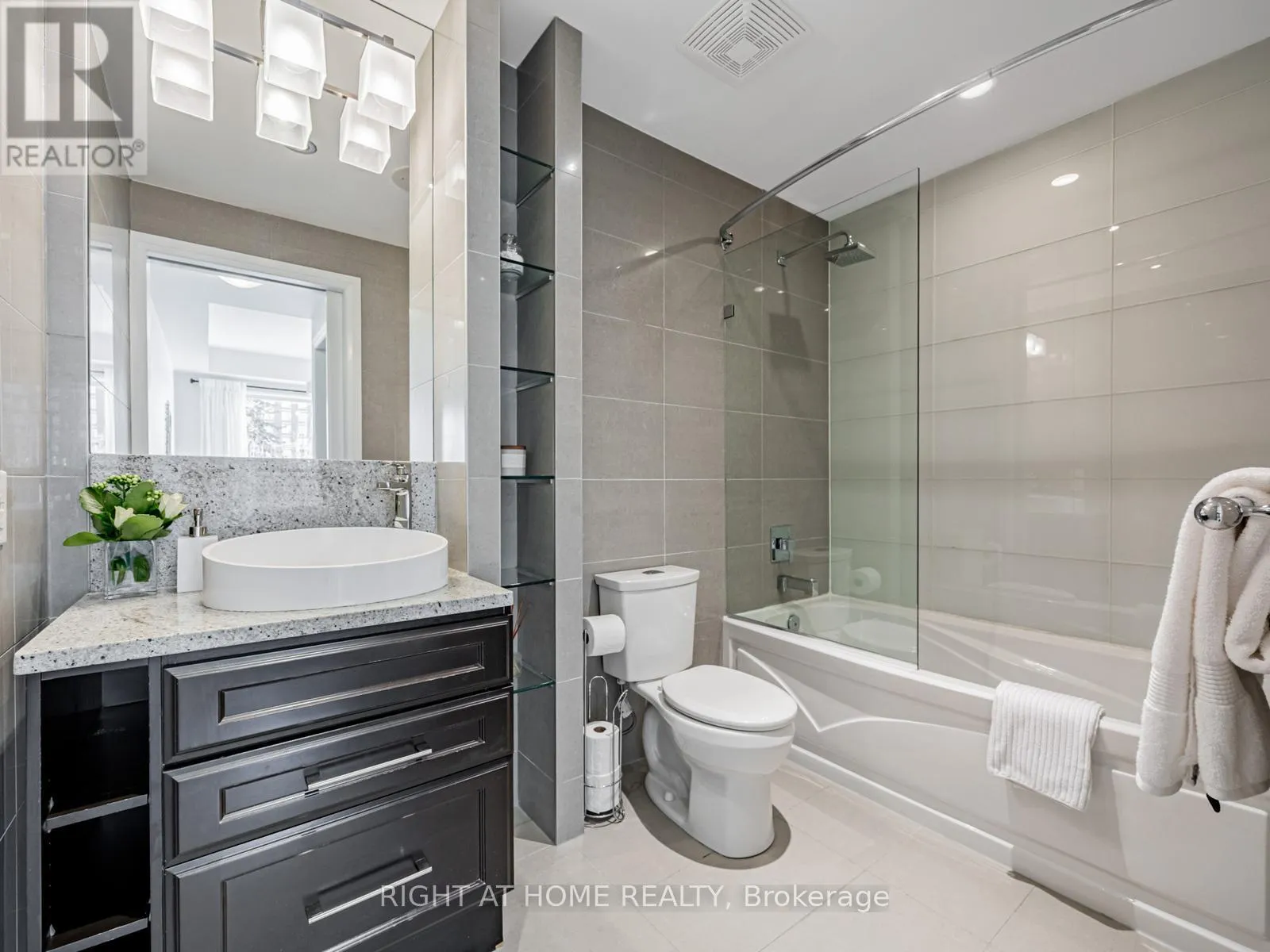 Cross Streets: Bayview & Sheppard. ** Directions: North of Sheppard East of Bayview on Clairtrell Rd & Spring Garden. Elegant Corner Suite in a luxury boutique building in Bayview Village neighborhood.This rare and beautifully upgraded 1,179 sq. ft. corner residence features a bright southwest exposure and an expansive 430 sq. ft. wrap-around terrace, offering both serene green views by day & sparkling city views by night.Step inside through a spacious foyer with double-door closet, leading into an open-concept living & dining area featuring floor-to-ceiling windows, high ceilings , built-in speakers, custom roller shades, engineered hardwood floors throughout and seamless access to the terrace.The open concept kitchen showcases high-end custom cabinetry, granite countertops and panelled built-in appliances. The split two-bedroom layout ensures privacy and comfort:The south facing primary suite, framed by a wall of glass overlooking lush treetops; includes an organized walk-in closet & a spa-inspired 4-pc ensuite with heated floor, floor-to-ceiling tiles and a B/I speaker.The second bedroom features a mirrored closet, direct access to a private terrace and a 3-pc bathroom with heated floor, a glass-enclosed shower and a B/I speaker.A sun-filled den with a large window and walkout to the terrace offers the perfect space for a home office or reading nook. Additional highlights include: In-suite laundry with ample storage, two-zone HVAC, two parking spaces conveniently located near the elevator and a Locker.Enjoy a tranquil lifestyle in this well-positioned boutique building, set back from busy streets yet steps from every convenience, Subway Station, Bayview Village Mall, Loblaws, shops, and restaurants, Highways 401 & 404, and YMCA facilities. Building amenities, including: 24 hr concierge, Gym, Rooftop garden with BBQ area, party room, Guest suite, Bike storage & visitor parking.Suite 405 is a truly special residence that combines luxury, comfort, and convenience; ideal for down-sizers and professionals seeking refined urban living in one of Toronto's most desirable neighbourhoods. (id:27476)