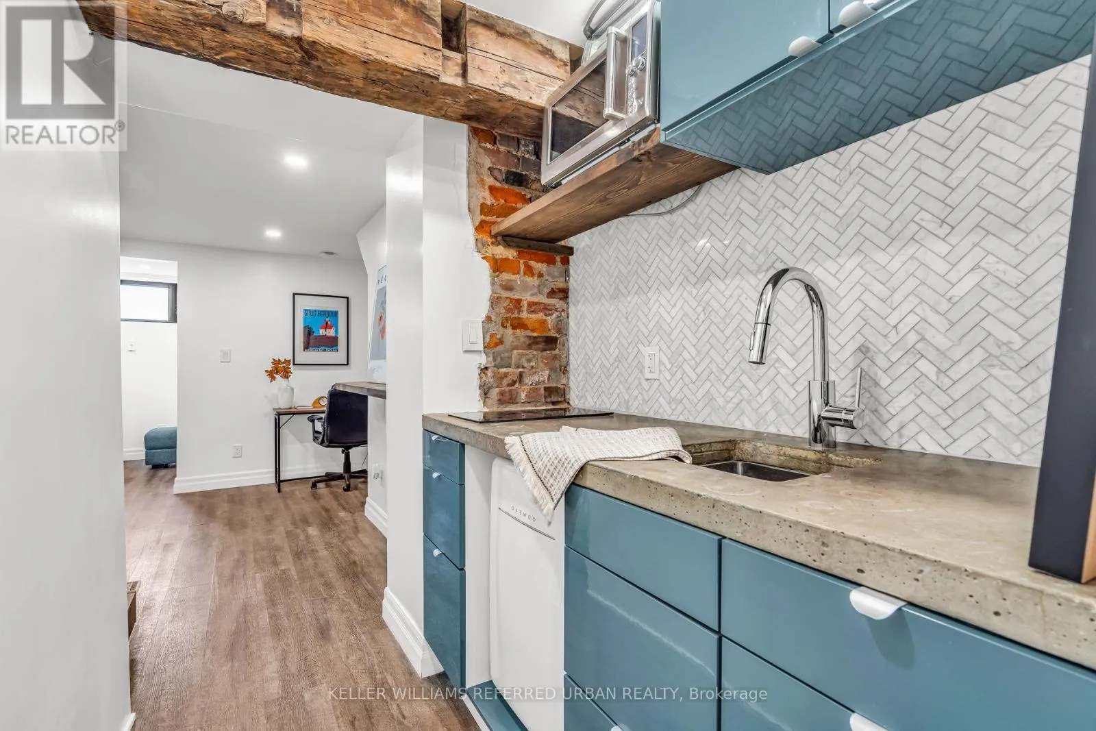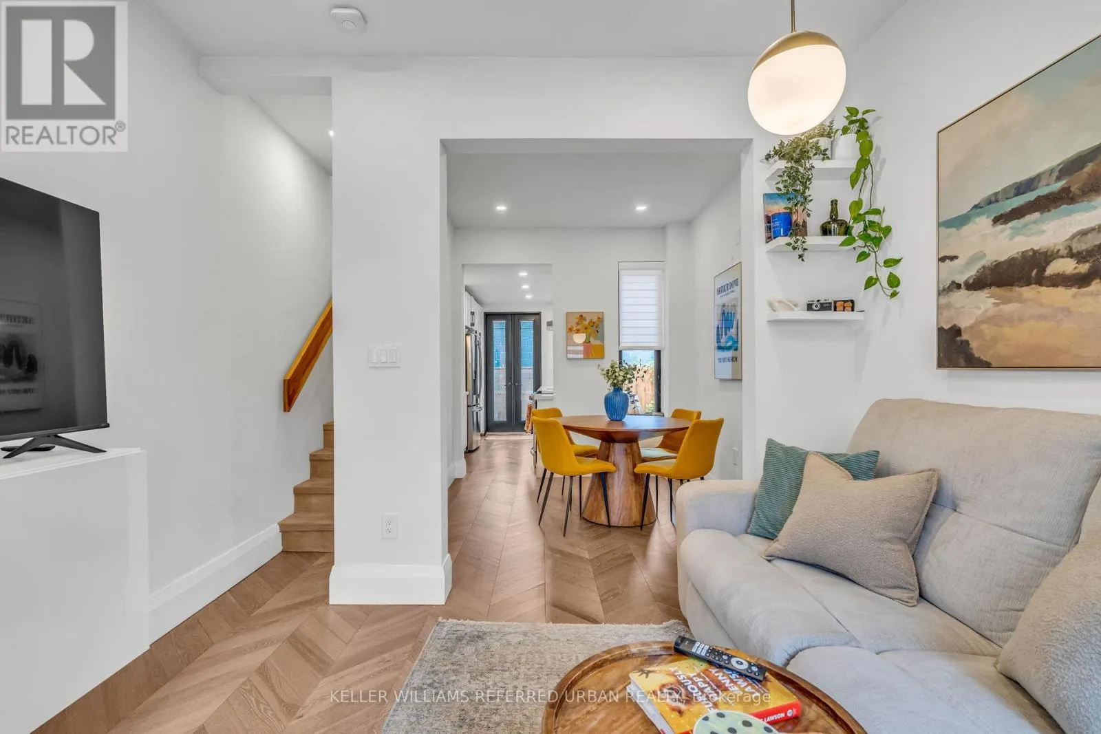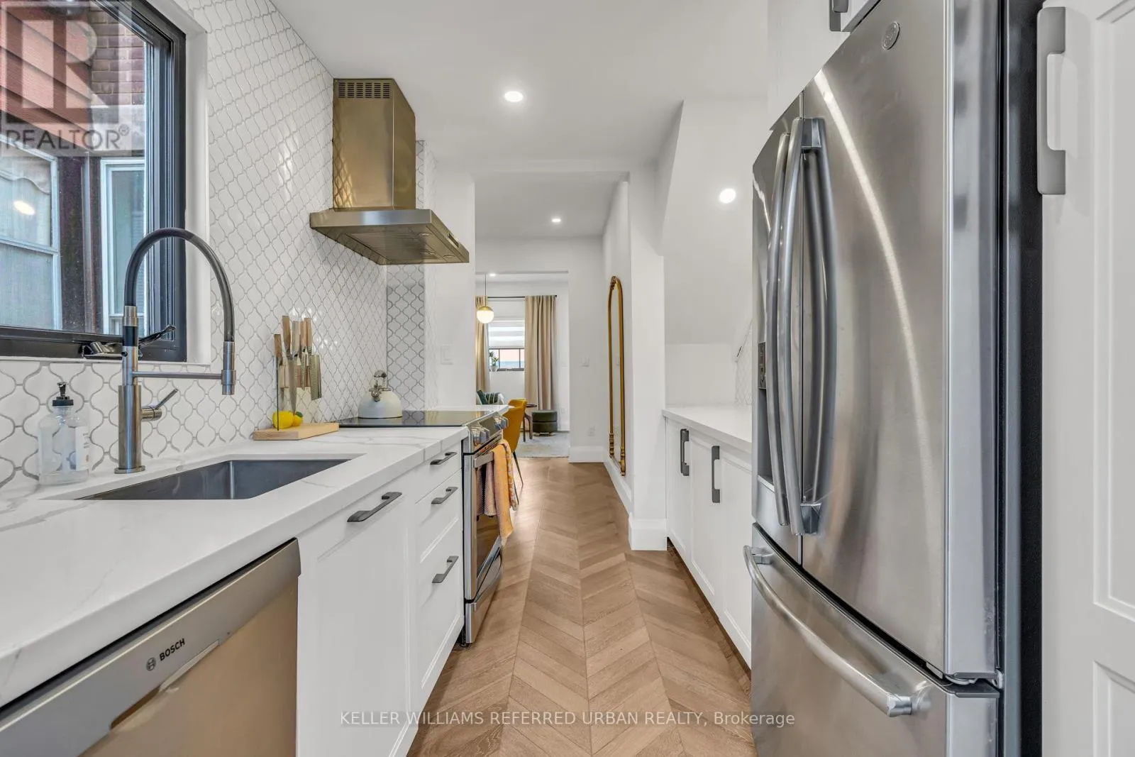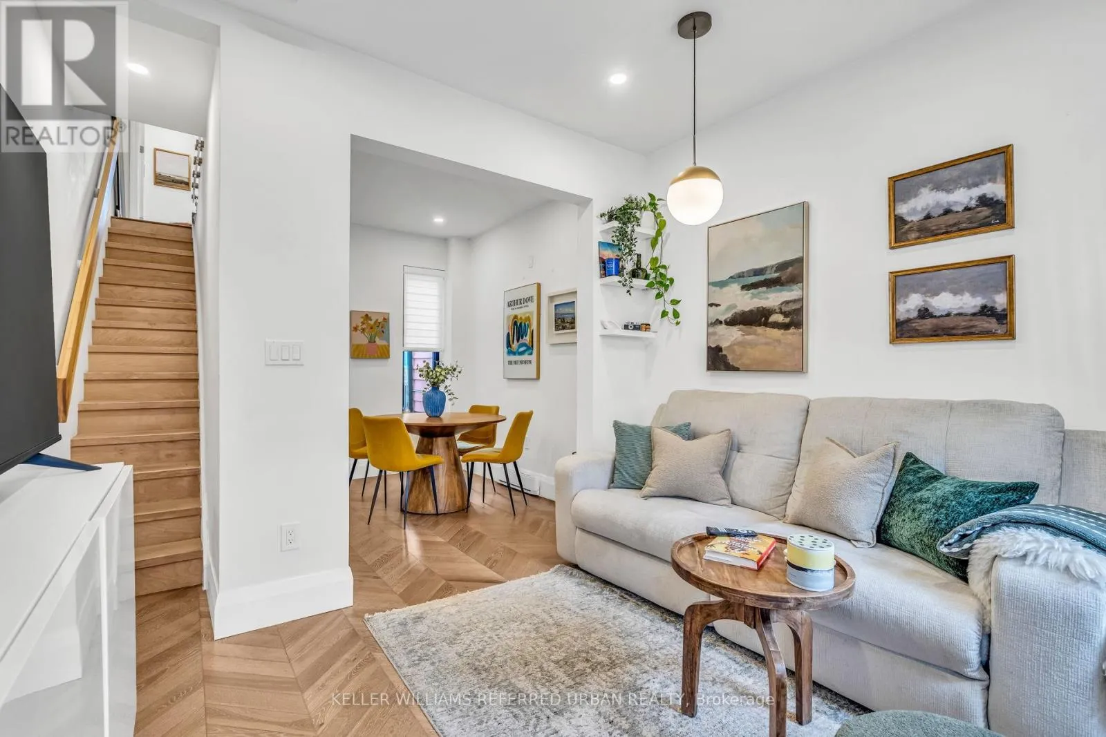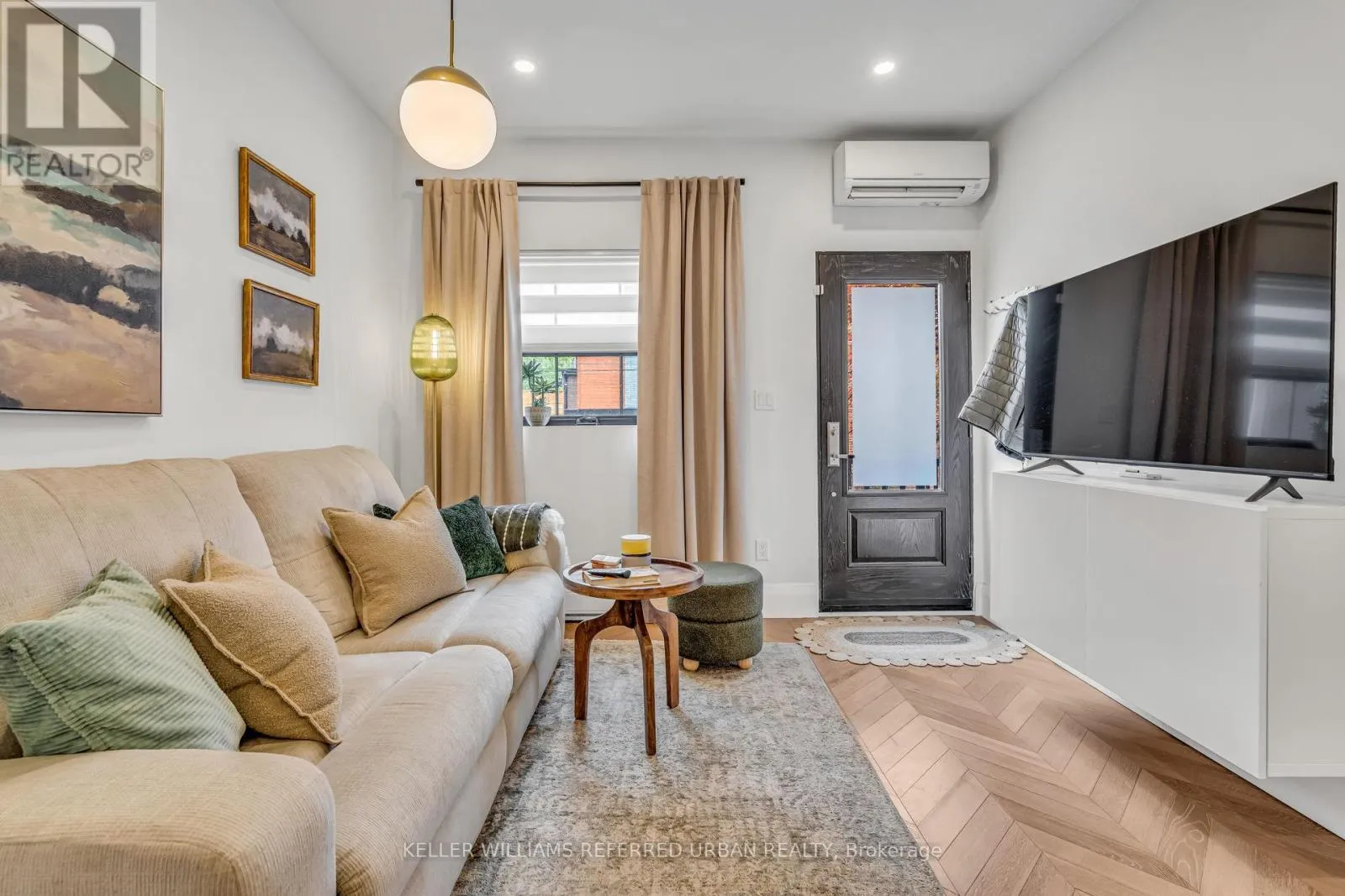 Cross Streets: Queen/Bathurst. ** Directions: South on Queen St W & Niagara St. Make the Switchell to Mitchell! Welcome to 98 Mitchell Ave, a freehold gem tucked between the buzz of Queen West and the calm of King Street West - two of Toronto's most coveted neighbourhoods. Don't worry about parking! very affordable street permits available and never a problem finding a spot. Where else can you roll out of bed for yoga on the street, grab an espresso from one of the city's best indie cafes, and wander over to Trinity Bellwoods Park before brunch?This home is the perfect condo-to-house upgrade - more space, more privacy, and yes, your very own front door (no fob required). Inside you'll find an open-concept main floor with warm herringbone hardwoods, a stylish kitchen with quartz counters, and oversized industrial windows flooding the space with natural light. Upstairs offers cozy bedrooms, a newly added custom closet, and a full bath with timeless finishes.The lower level has a separate entrance and above-grade windows - ideal as a guest suite, studio, or potential income unit. Modest improvements and solid fundamentals make this a prime opportunity to personalize and grow into one of downtown's best-kept residential streets.Queen West was once crowned the Best Neighbourhood in the World - and it still delivers: trendy restaurants, boutique shops, art galleries, and patios galore. Stroll or cycle anywhere: King West nightlife, Bellwoods Park picnics, Ossington eateries - all within reach.All this at a price that makes you wonder why anyone's still paying condo fees. (id:27476)