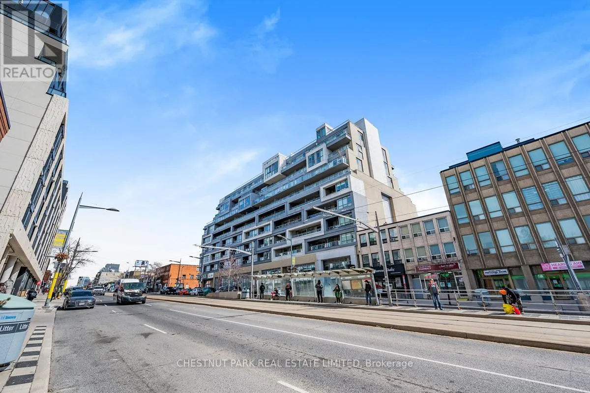 Cross Streets: St. Clair Avenue West and Christie. ** Directions: East of Winona, streetcar at doorstep. Spacious 1 bedroom + large den/2 bathroom with parking, locker, balcony & tons of storage in boutique midrise at the well-maintained Nest Condominiums. Great sense of community & conveniences, with dedicated streetcar lane (short ride to subway), No Frills grocer, eclectic cafes, restaurants and services at doorstep. Suite features functional layout with modern finishes. 1 bedroom plus spacious den large enough for guest bedroom (currently used for office and in-suite storage), 2 full bathrooms, large kitchen featuring built-in appliances, gas stovetop, large island and quartz countertops. Spacious living/dining area walks-out to deep balcony with gas hook-up for BBQ. Spacious laundry closet with storage room plus locker. Enjoy exclusive services typically reserved for larger buildings, including spectacular rooftop lounge with amazing views, seating & BBQ, 24 hour concierge, fully equipped gym, party room, ground floor patio and pet spa. *** Maintenance fees include unlimited Rogers high speed internet. *** (id:27476)