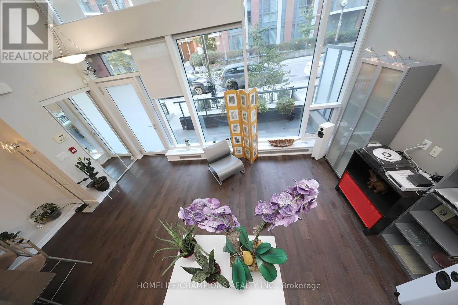 Bruyeres Mews/Bathurst Stunning Modern Townhome in the Heart of Downtown Toronto! Bathurst & Lake Shore Blvd , Steps to all sort of amenities. *Live where the city comes alive! This lightly used, under 10-year-old townhome by ONNI Group offers the perfect blend of modern luxury and unbeatable location. Just a 10-minute walk to Billy Bishop Airport and the Toronto Waterfront, with parks, Skydome, restaurants, and entertainment right around you. *Approx. 1021 sq.ft. of thoughtfully designed living space Bright, open-concept layout with soaring 15-ft ceilings and floor-to-ceiling windows Large private patio on the main floor + balcony on the second floor1 spacious parking spot and 2 adjacent lockers (Units #118 & #119 - conveniently located on P1 near ground level)Smooth ceilings, extended kitchen cabinetry, and upgraded stainless steel appliances. Modern finishes throughout with front-load washer & dryer included. Building Amenities also include 8th FLOOR --- Large PATIO - which can be used for barbecues. 7th FLOOR -- PARTY ROOM [requires daily booking, and includes a kitchen, and cleaning] -- LIBRARY [includes FREE WIFI] -- GAMES ROOM [table tennis, snooker and pool] 6th FLOOR -- GYMNASIUM. GROUND FLOOR -- CONCIERGE -- PROPERTY MANAGEMENT-- FREE WIFIALSO -- There is a PRIVATE GUEST CONDO for rent at ~ $100 per night.**Enjoy the best of both worlds the privacy and spacious layout of a two-storey townhome, with full access to the luxury amenities of the connected high-rise building** (id:27476)