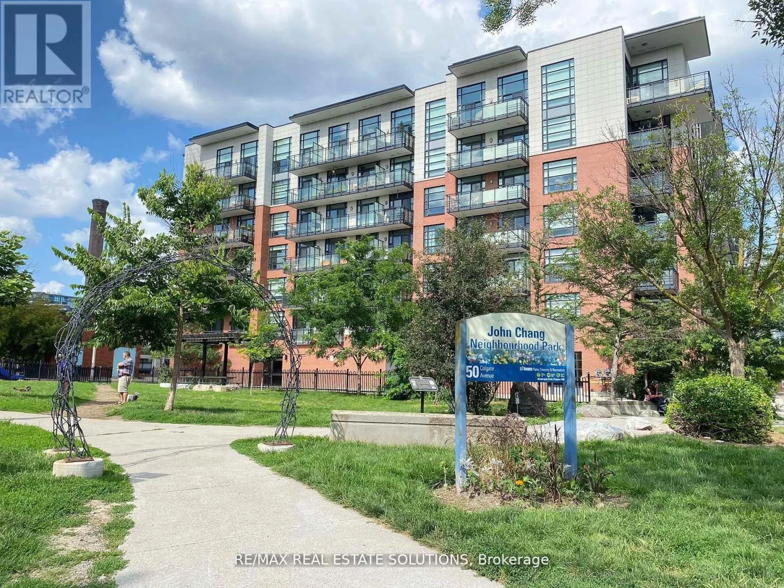 Cross Streets: Carlaw Ave & Queen St E. ** Directions: West of Carlaw Ave & North of Queen St E. Welcome to Showcase Lofts, one of Toronto's most sought-after boutique loft residences! This bright and spacious 1-bed, 1-bath suite perfectly blends modern design with authentic industrial character. Featuring 9-ft ceilings, engineered wood flooring, and a stunning reclaimed brick accent wall, this unit offers warmth, texture, and timeless style. The open-concept living and dining area flows seamlessly into a modern kitchen equipped with stainless steel appliances including a gas stove, sleek cabinetry, and ample storage. Step out to your private north-facing balcony overlooking the peaceful courtyard, providing a quiet escape from city life. The spacious bedroom includes generous closet space, while the modern bathroom features a deep soaker tub and chic contemporary finishes. Residents enjoy exceptional amenities such as a 24-hour concierge, fully equipped gym, party room, theatre room, guest suite, and visitor parking. Ideally located in one of Toronto's most vibrant neighbourhoods, you're just steps from public transit, parks, boutique shops, trendy cafés, and top-rated restaurants. Available for immediate occupancy, this unique loft delivers the perfect balance of character, comfort, and convenience-an urban retreat you'll be proud to call home. (id:27476)