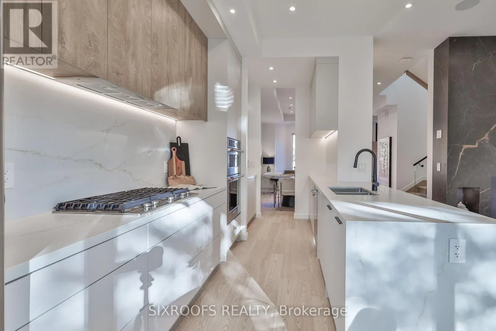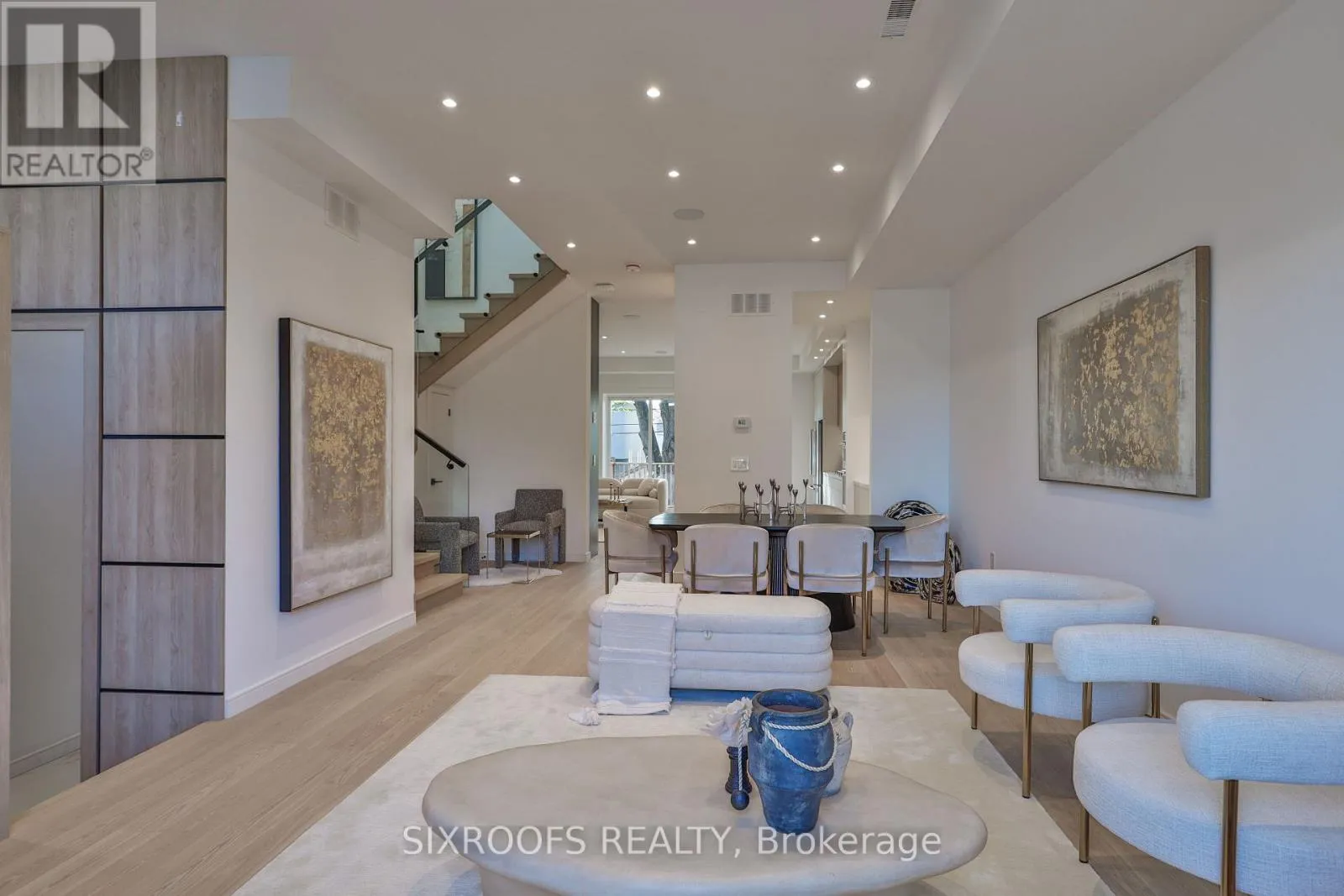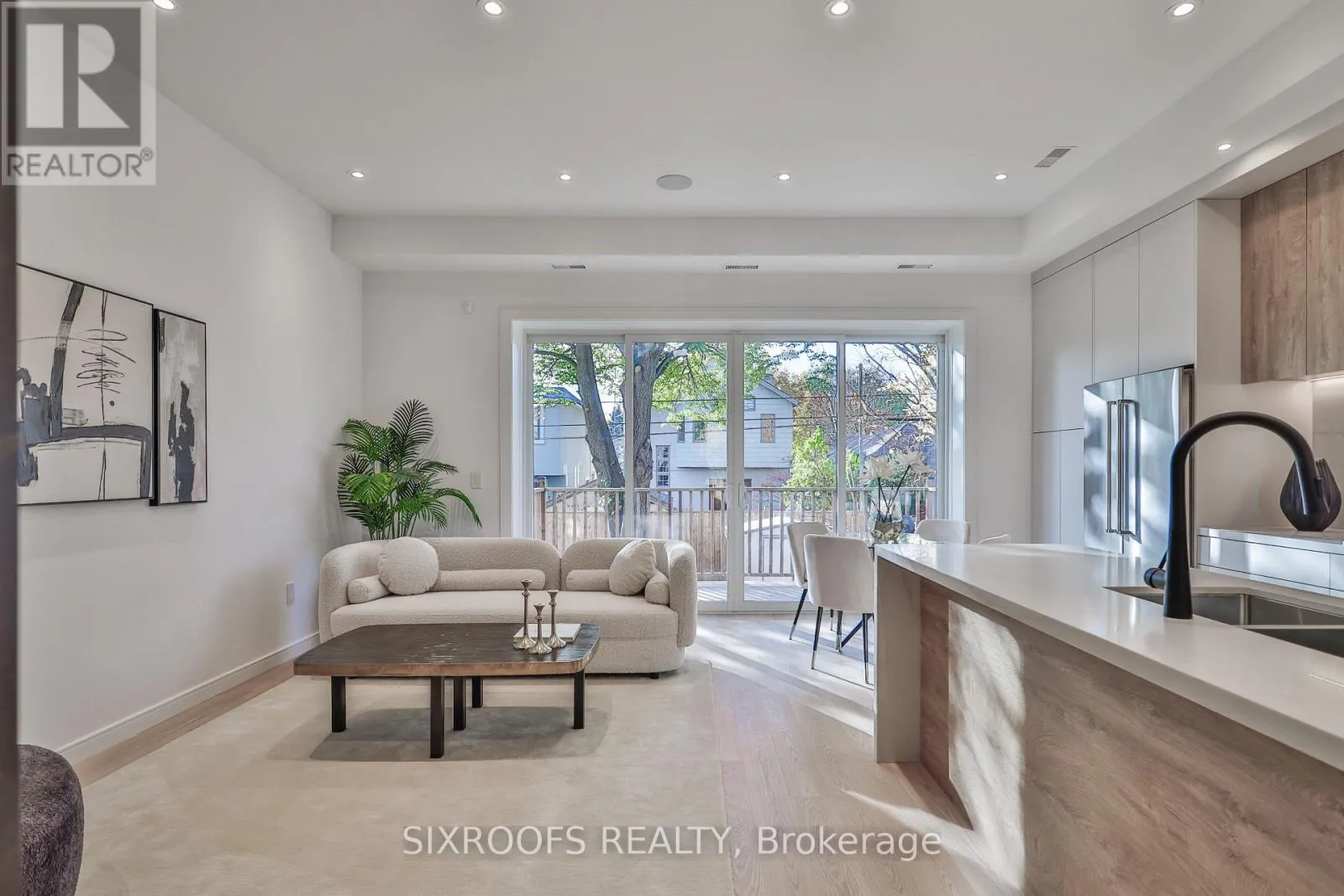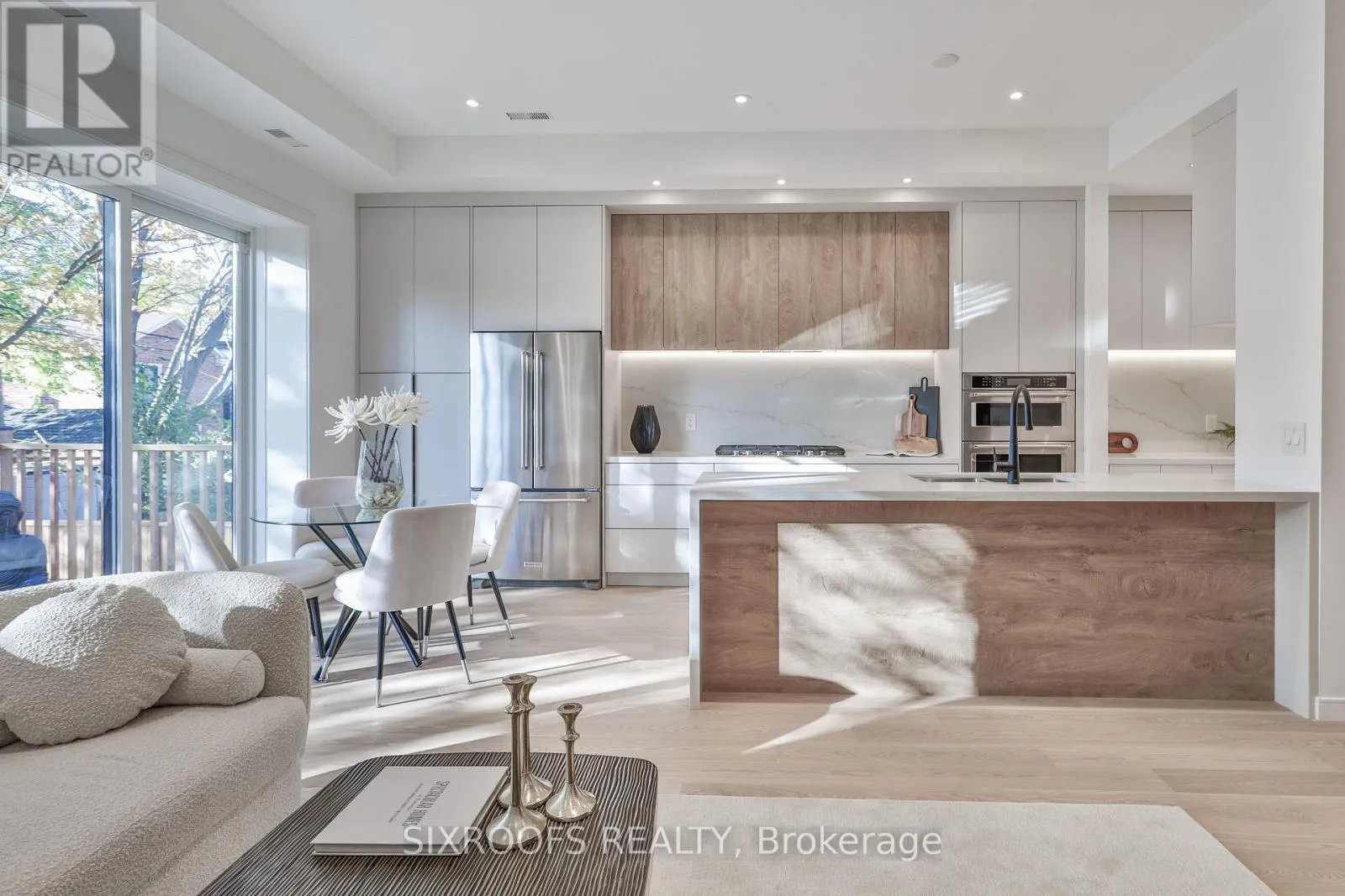 Cross Streets: Cosburn Ave and Coxwell Ave. ** Directions: Use Google Maps! :). Welcome to 104 Roosevelt Rd, a spacious 2-storey legal duplex on a wide 37' lot in East York. Total legal living space of 3,200+ sq ft. Directly across from open green space and public tennis courts, this home offers rare tranquility in the city. Inside, you'll find 5 bedrooms and 3 full bathrooms upstairs-perfect for large families or multi-generational living. The main floor features soaring 10' ceilings, an open-concept layout, a dedicated office, built-in speakers, and a walkout to a generous backyard deck. The chef's kitchen is equipped with abundant cabinetry, a wine shelf, and modern finishes. Upstairs ceilings reach 9', adding to the airy feel.The basement impresses with 8.5' ceilings, super-sized windows that flood the space with natural light, a legal kitchen, two full bathrooms, and potential to create two separate rental suites-ideal for income or extended family. With a spacious backyard, attached garage, and proximity to top-rated schools, TTC, and Danforth shops, this property blends comfort, convenience, and opportunity in one of Toronto's most desirable pockets. (id:27476)