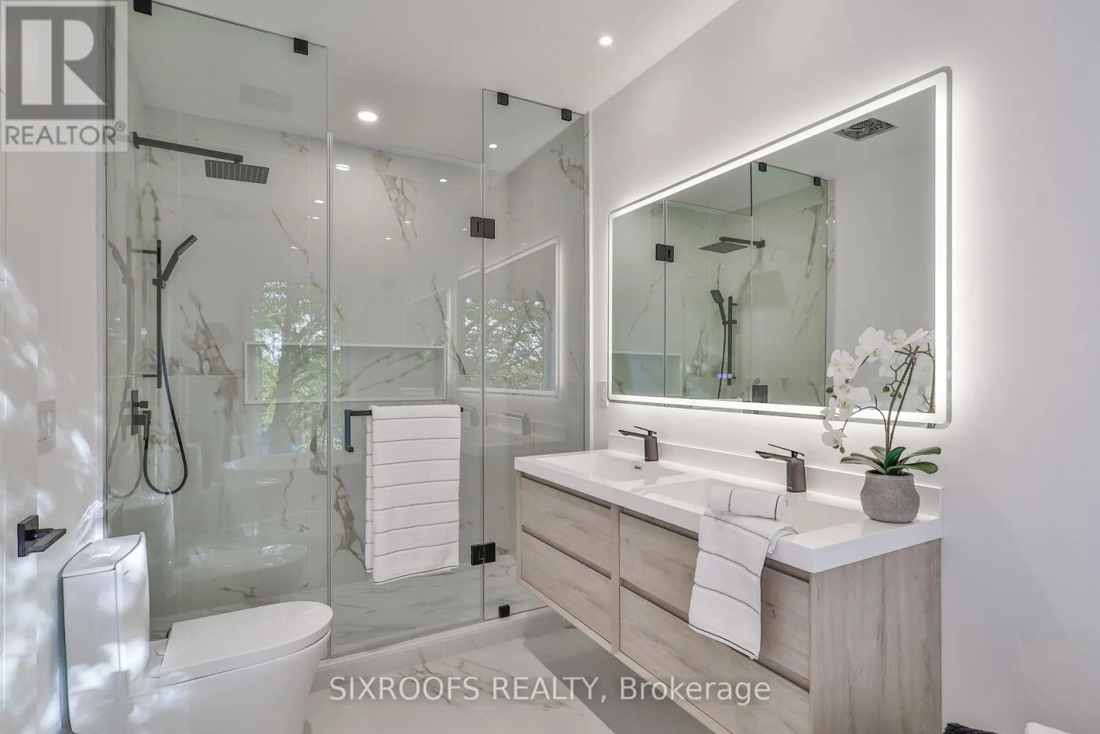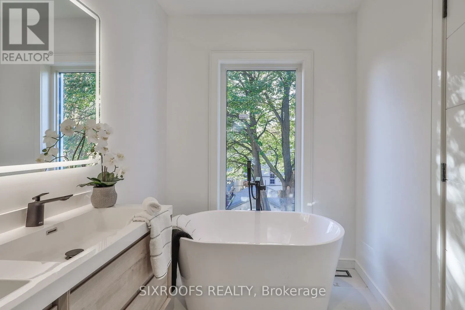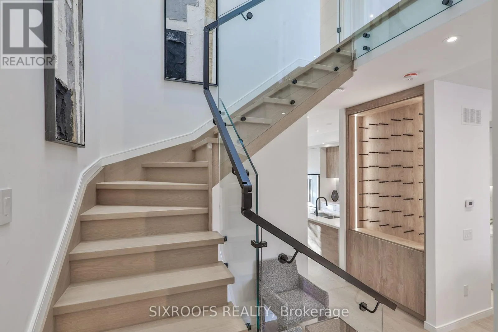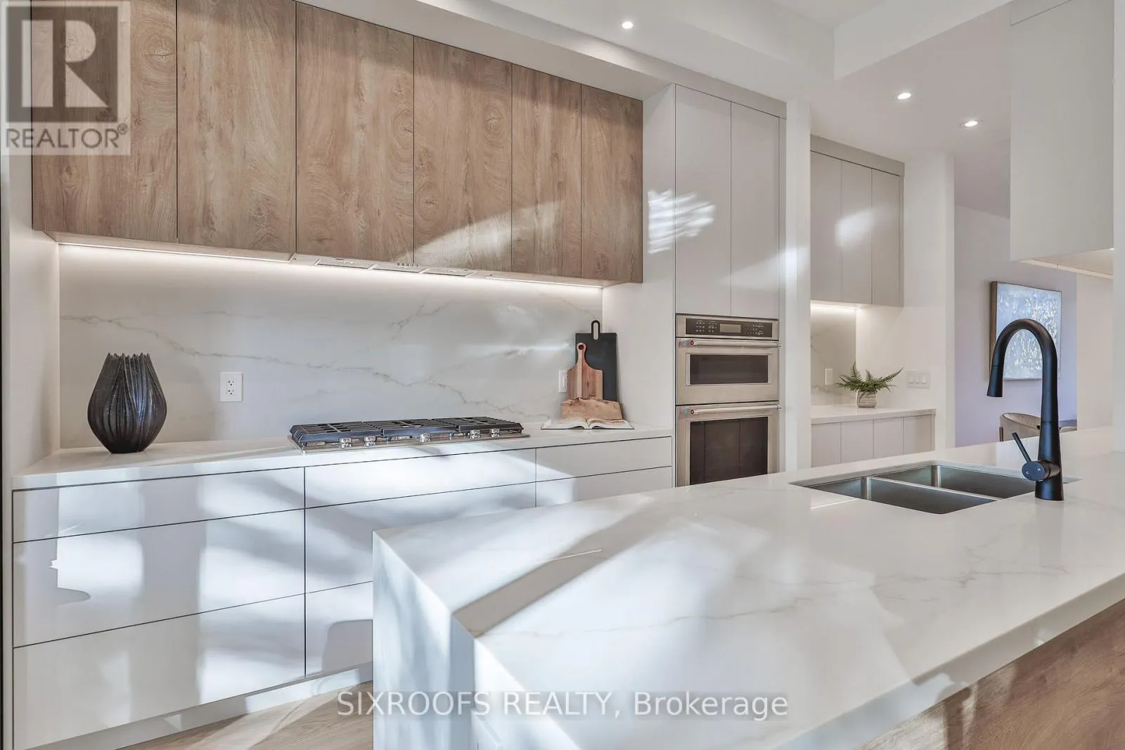 Cross Streets: Cosburn Ave and Coxwell Ave. ** Directions: Use Google Maps! :). Welcome to 104 Roosevelt Rd, a spacious 2-storey legal duplex on a wide 37' lot in East York. Total legal living space of 3,200+ sq ft. Directly across from open green space and public tennis courts, this home offers rare tranquility in the city. Inside, you'll find 5 bedrooms and 3 full bathrooms upstairs-perfect for large families or multi-generational living. The main floor features soaring 10' ceilings, an open-concept layout, a dedicated office, built-in speakers, and a walkout to a generous backyard deck. The chef's kitchen is equipped with abundant cabinetry, a wine shelf, and modern finishes. Upstairs ceilings reach 9', adding to the airy feel.The basement impresses with 8.5' ceilings, super-sized windows that flood the space with natural light, a legal kitchen, two full bathrooms, and potential to create two separate rental suites-ideal for income or extended family. With a spacious backyard, attached garage, and proximity to top-rated schools, TTC, and Danforth shops, this property blends comfort, convenience, and opportunity in one of Toronto's most desirable pockets. (id:27476)