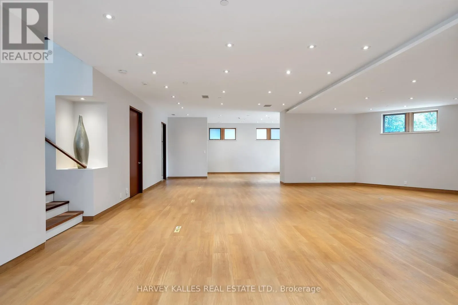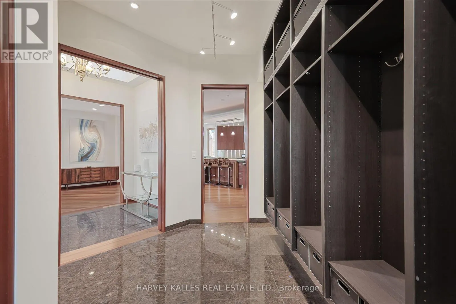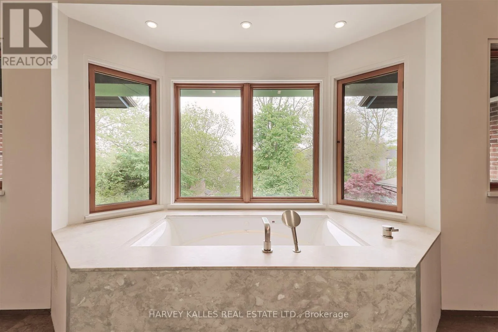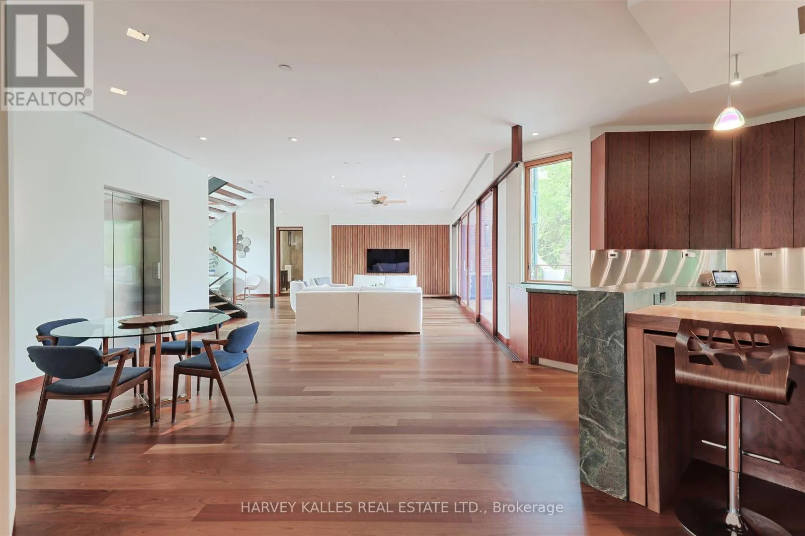 Government and Prince Edward Discover a gem, custom-built as a multi-generational home, offering over 11,000 sq ft of luxurious living space on a rare 125ft double lot at the edge of the Humber Valley in the tree-lined Kingsway neighbourhood. This residence is a statement of contemporary elegance and sophistication, perfect for the discerning family.Inside, experience clean lines and exquisite details that enhance comfortable luxury living, including sound-isolated suites, Jatoba hardwood floors, stunning Persian serpentinite kitchen countertops, and heated stone floors for ultimate comfort.Accessibility is a key feature, with snow melt for the front porch, steps, ramp and driveway, a commercial 4x6 ft elevator, and 4 ft wide hallways to ensure effortless movement throughout the residence.The ground floor features a bright, open-plan living area that seamlessly integrates the chefs kitchen, dining, and living spaces, extending to a partially covered upper deck with a 17ft wide opening. A heated 3-car garage is cleverly positioned at the side of the house.The primary retreat is where luxury meets tranquility, featuring two generous walk-in closets and two ensuites one complete with a massage room and whirlpool tub offering tree-top views. Two additional spacious bedrooms, each with walk-in closets, share a thoughtfully designed bathroom suite with dual sinks, ample storage, and a separate area for added privacy. The oversized fourth bedroom also includes its own ensuite bathroom and walk-in closet, providing comfort and convenience for family or guests.The ground floor bedroom suite with a Juliet balcony offers a perfect retreat for guests.Venture to the finished lower level, where 10+ ft ceilings create a light and airy ambiance.This expansive space features a wide sliding door leading to the lower deck, ideal for entertaining.With multiple entertainment areas, including a stepped home theatre and sprawling park-like backyard, this home is designed for those who appreciate spacious comfort. (id:27476)