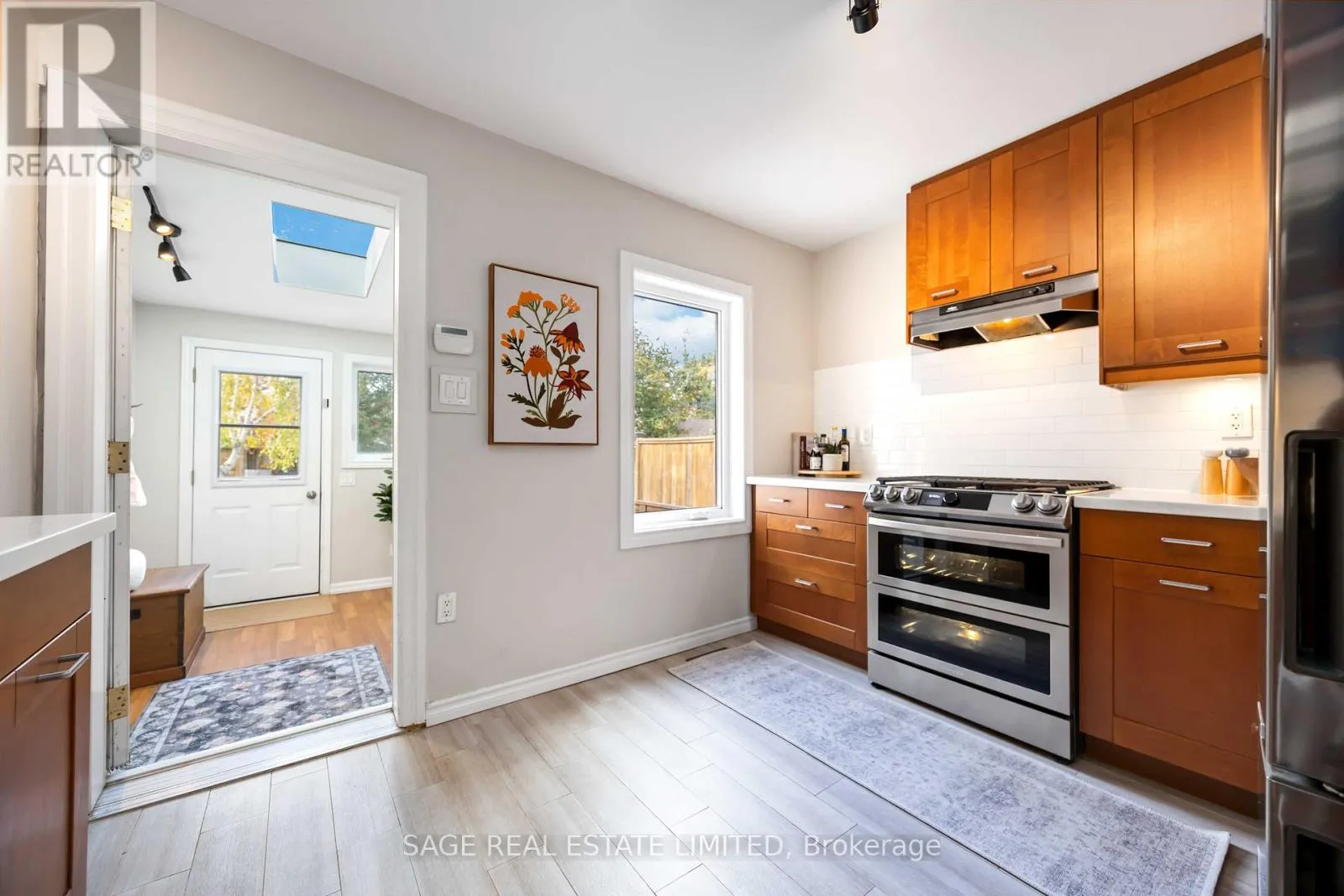 Cross Streets: Gerrard And Victoria Park. ** Directions: West side of Victoria Park, South of Gerrard, North of Kingston Road. A walk in the park. This 3 bedroom, 2 bath semi has been beautifully renovated while preserving its century-home soul, with all the warmth and character you crave. Think original wood casings and trim, oak doors with vintage hardware, glass knobs, and sunlit rooms that feel instantly like home. Your storybook covered front porch leads you into the wide open living and dining rooms. The modern and spacious kitchen with a dual-fuel, dual-oven/range and quartz countertops is perfect for cooks and gatherers alike, flowing to a landscaped backyard with laneway parking. Not to be forgotten, the versatile rear addition gets all the glory, illuminated by its skylight, proving even practical spaces can have main character energy. Upstairs you have three full bedrooms with surprisingly deep closets and a magazine worthy, beautifully renovated bathroom featuring timeless finishes, elegant tile, heated floors and thoughtful design details throughout. The property has been lovingly updated, from the upgraded electrical panel (2023) with 220/240v EV charger, fresh paint, lighting, and fully fenced back garden. Set in a friendly, walkable pocket steps to Kingston Rd., Village Shops, parks like Blantyre, Bob Acton, and Glen Stewart Ravine to name a few, top-rated schools like the beloved Adam Beck Public School, GO/TTC, and Woodbine Beach. This is the kind of home and community people rarely want to leave. (id:27476)