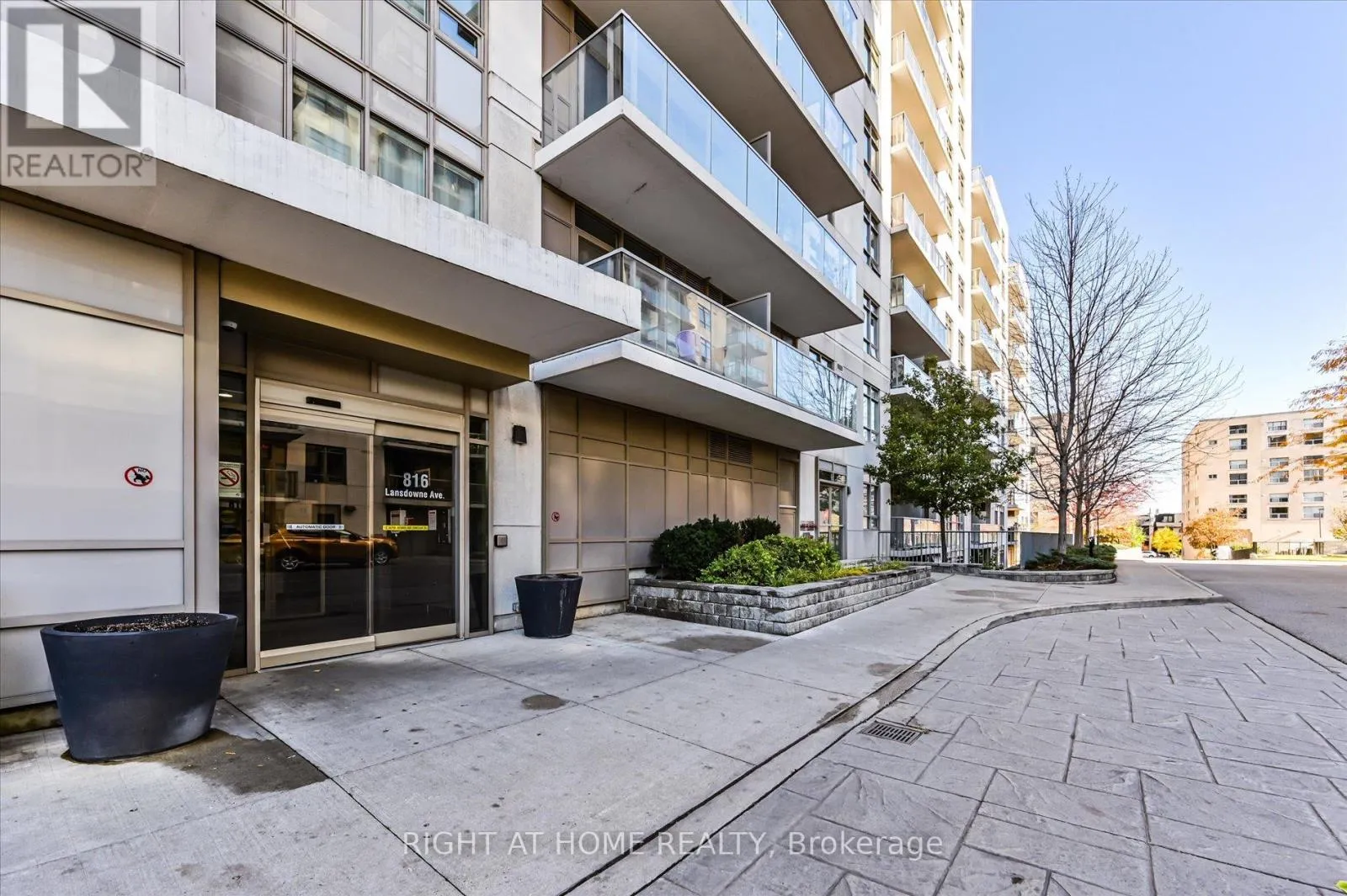 Dupont & Lansdowne Welcome to this stylish and urban residence in the Junction, one of Toronto's most vibrant west-end neighbourhoods. Located at 816 Lansdowne Ave in the boutique "Upside Down Condos", this one-bedroom plus den condo offers an excellent blend of comfort, convenience and lifestyle. Featuring an open-concept layout, sleek modern finishes, and large windows that fill the space with natural light, this suite perfectly balances comfort and style. The functional den makes an ideal home office or creative nook, while the spacious bedroom offers a peaceful retreat. Enjoy a contemporary kitchen with stainless steel appliances, granite countertops, breakfast bar, in-suite laundry, and a private balcony with neighborhood views. Steps from boutique shops, cafés, parks, and transit, this is Junction living at its finest. Exceptional transit access, mere minutes' walk to the Lansdowne Station and within easy reach of the GO/UP express for commuters. Excellent for first-time buyers, downsizers, or investors looking for a turn-key urban property in a sought-after pocket of Toronto. (id:27476)
