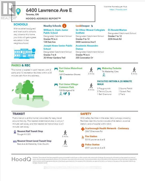 Cross Streets: Lawrence Ave E to East Avenue. ** Directions: Lawrence Ave E to East Ave. Turn N Right into complex (visitor parking plus unit parking available ) by Go Train get off and walk straight across road (to Lovers lane). Are you a commuter or love spending time downtown? Imagine living steps from Lake Ontario and the Rouge GO Station-carefree condo living at its finest in a location that can't be beat! Welcome to 6400 Lawrence Ave E #16 - an ideal turnkey home for a young family, downsizer, or first-time buyer looking for style, comfort, and convenience. Offering almost 1600 sq ft above ground plus a walkout lower level, it combines the feel of a freehold with the ease of condo ownership. Over $170K in owner-driven upgrades: Custom Aya Kitchen with new maple cabinets, dovetailed birch drawers, Caesarstone quartz counters, Julien commercial stainless-steel double sink, Spanish tile backsplash, and top-tier appliances (GE Café dual-oven stove, KitchenAid counter-depth fridge, Bosch Silence Plus dishwasher). Aya maple wall unit with smart spice cabinetry and pull-out rack. Afternoon sun in the kitchen and Timeless Mirage solid maple hardwood floors. 2025 updates: fresh paint, new laminate flooring (lower level), new A/C, wardrobe sliding doors, and new fence (Oct 2025). Additional features: owned hot water tank ('21), high-efficiency furnace ('14), bathroom refresh ('17), ('15) spray foam insulation/drywall (garage & kitchen ext wall). Large primary bedroom with semi-ensuite, generous closets, skylight, and serene backyard with privacy, landscaping, and entertaining space. Rough-In for Central Vac. Condo fees cover grass cutting, snow removal, eavestrough cleaning/repair, cement parging, and maintenance of the private community garden and parkette. Recent condo upgrades: 2025 fences, '23 patio door, '18 metal garage door, '17 patio pavers, '16 parkette, and '14 driveway pavement. Steps to Rouge GO Station, Rouge Beach, Lake Ontario, waterfront trails, TTC, top schools (including UTSC), parks, tennis, rec centers, shopping, eateries, Highway 401, Toronto Zoo, and Black Dog Pub. Two-car parking allows for one-car or no-car living. Status Certificate & Condo Docs available upon request. (id:27476)