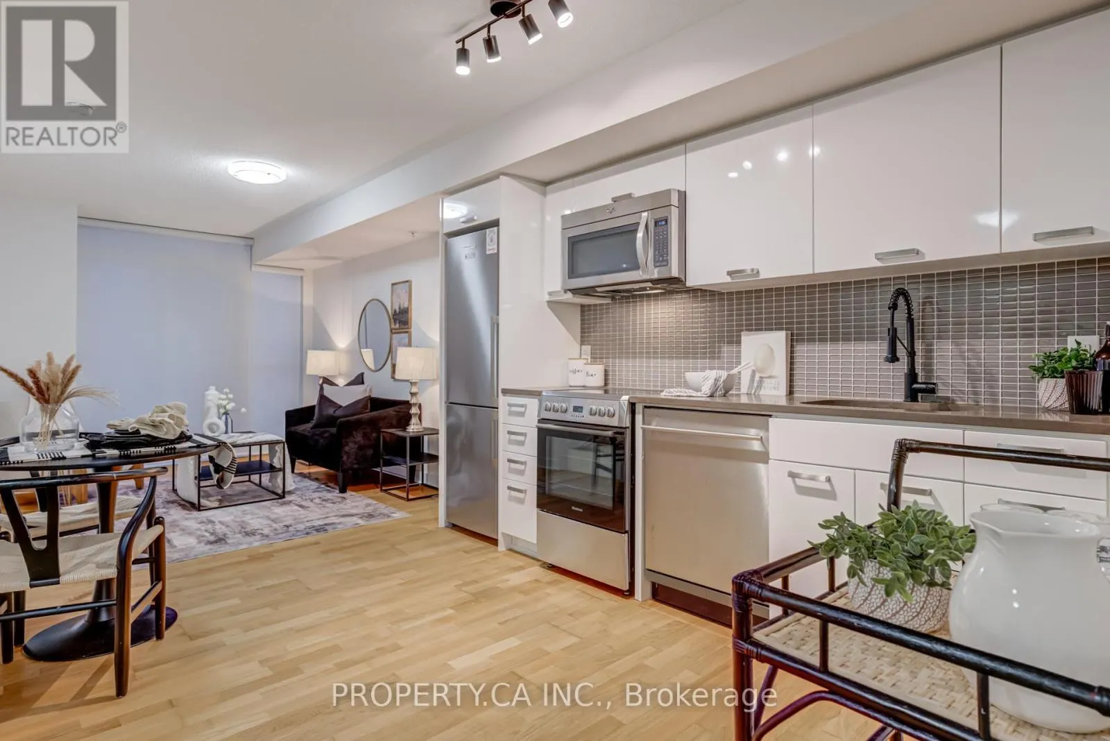 Adelaide / John View Today - No Notice Required for Showings. Welcome to The Pinnacle on Adelaide, where modern luxury meets unbeatable downtown convenience. This bright and freshly painted 1 Bedroom + Den, 1 Bath suite offers the perfect blend of comfort, style, and long-term value in Toronto's vibrant Entertainment District. Sunlight pours through floor-to-ceiling windows, creating an uplifting ambiance throughout the open-concept living and dining area. The modern kitchen features sleek cabinetry, granite countertops, and full-size stainless-steel appliances; a clean, contemporary space that flows seamlessly for everyday living or hosting friends. A newly installed LG washer & dryer adds everyday convenience. The versatile den makes an ideal home office or reading nook, while the private balcony provides a tranquil urban escape for morning coffee or evening relaxation. The bedroom is bright and welcoming, complete with ample closet storage and blackout blinds for restful sleep and added privacy. Enjoy world-class building amenities spanning three floors featuring a fully equipped fitness centre, indoor pool, jacuzzi & sauna, party and meeting rooms, and an expansive rooftop deck with panoramic city views. The five-star hotel-style lobby with 24-hour concierge, guest suites, visitor parking, and Uber-friendly front entrance add to the convenience of urban living. Located just steps to TIFF Lightbox, Scotiabank Theatre, King & Spadina streetcars, St Andrew & Osgoode subway stations, and surrounded by top-rated restaurants, cafés, grocers, and parks - this address earns a Walk Score of 100. Perfect for end-users or investors seeking steady rental demand and premium downtown appeal, Unit 520 is a turn-key opportunity in one of Toronto's most desirable urban communities. (id:27476)