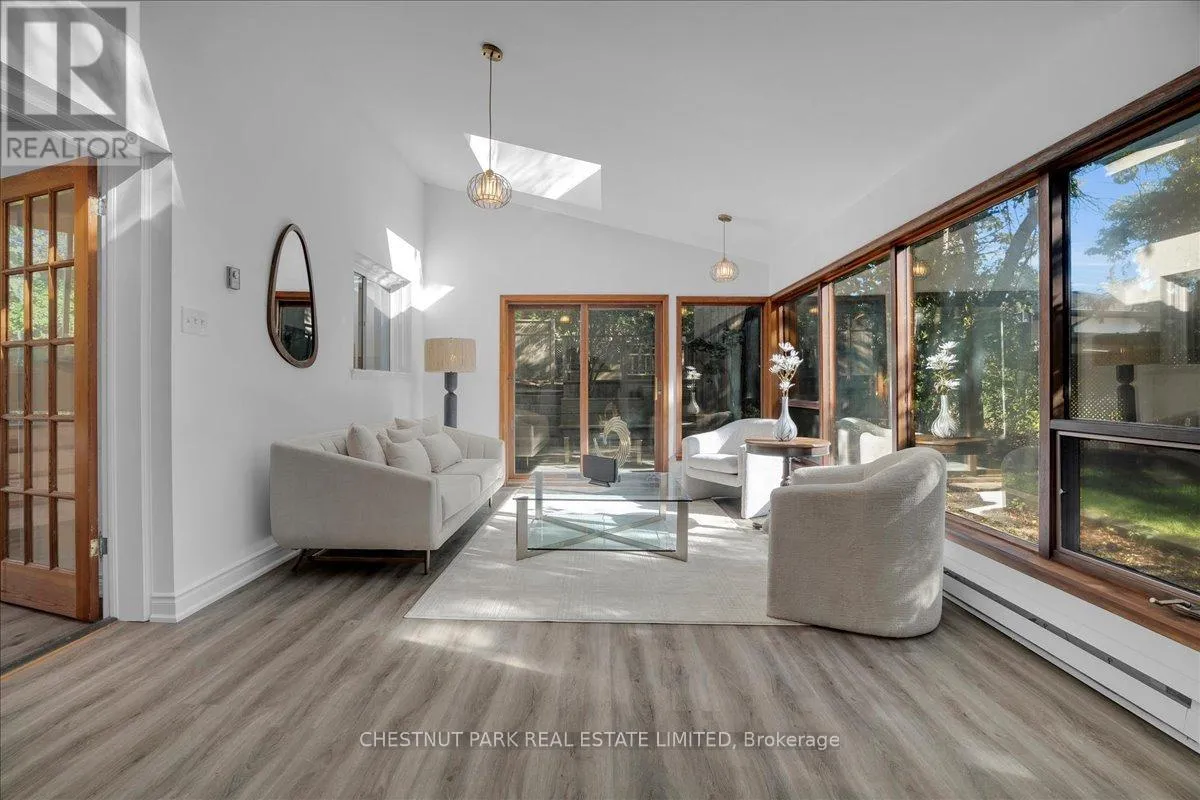 Cross Streets: Use GPS. ** Directions: Lawrence/ Leslie. Nestled on a tranquil, tree-lined street in Banbury-Don Mills, this bright and unique bungalow captures both charm and potential. The two-storey (13'11") living room feels open and bright, with a large picture window letting in generous natural light. Just off the living room, a solarium / family room with skylights becomes a sunlit haven ideal for lounging, plants, or casual dining. It flows seamlessly out to a private patio and lush backyard, giving you that warm cottage in the city feel. The main level also offers a flexible bonus room (office or guest bedroom) with its own walk-out to garden and a 2-piece adjacent bathroom. Upstairs you'll find three comfortable bedrooms and a full bath, each space ready for your personal design touches. Outdoor spaces include both an upper deck and an interlocked lower space, ideal for entertaining, relaxing, or kids at play. Move in and enjoy as is, update to your taste, or build new among many recently rebuilt homes on this desirable street. Located just steps to Banbury Community Centre and Tennis Club, Bond Park, and close to beautiful trails including Don Mills Trail, Talwood Park, and Duncairn Park. Walking distance to the library, Shops at Don Mills, and Edwards Gardens. Top public schools include Rippleton P.S., Denlow (French Extended), Dunlace (French Immersion), Windfield, and St. Andrew. York Mills Collegiate and several top private schools such as TFS, Crescent, Crestwood, La Citadelle, WillowWood, Hawthorn, and Metamorphosis Greek Orthodox School. Easy access to Hwy 401 and 404. (id:27476)