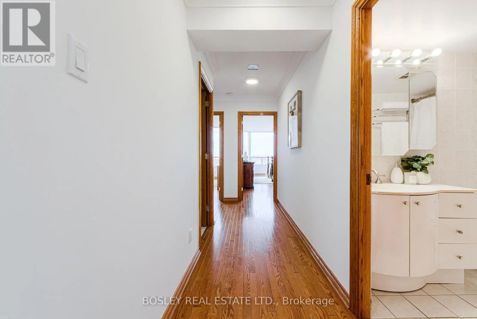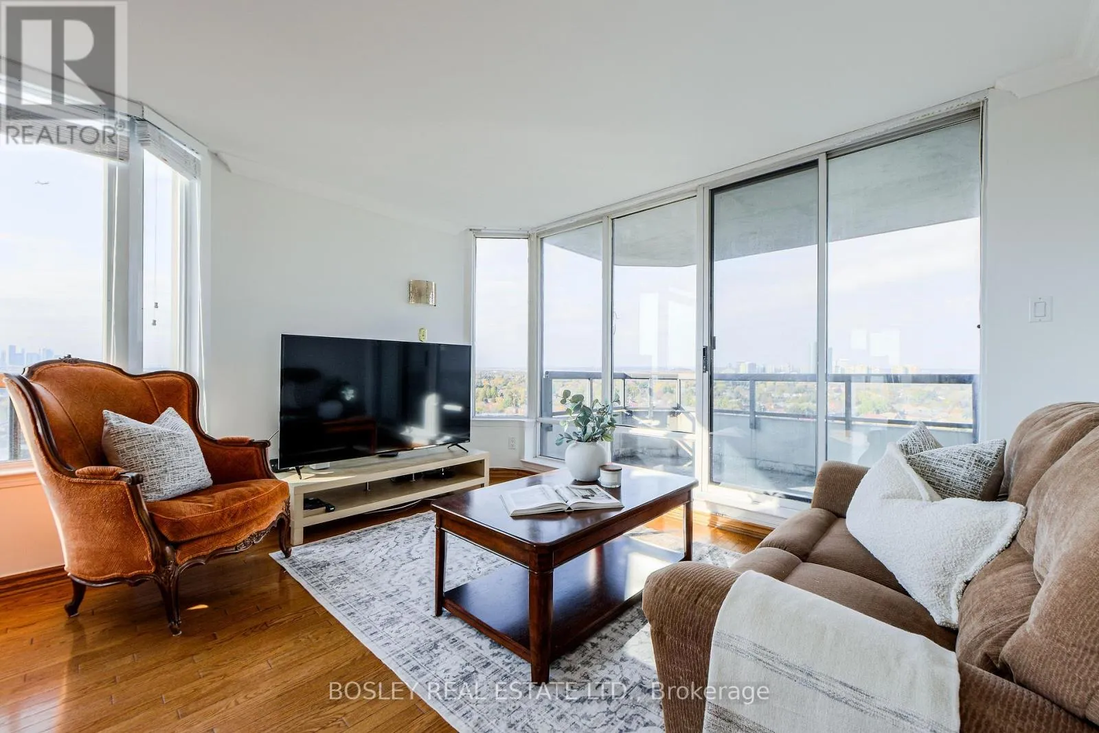 Cross Streets: Steeles & Bathurst. ** Directions: Steeles and Bathurst. Welcome to your new home in the sky at the exceptional Primrose Condominiums! This bright and spacious 2 bedroom, 2 full bathroom suite offers panoramic 180 views that capture both sunrise and sunset along with the stunning northern skyline. Expansive windows fill the space with natural light, creating an uplifting, airy atmosphere and breathtaking views from every room. Refined details like gleaming hardwood floors, crown moulding, smooth ceilings, and elegant wall sconces bring warmth and character. The updated kitchen is large and inviting, featuring space for a full eat-in table plus a separate dining area - a rare luxury in condo living. The layout is well-appointed with 1432 square feet plus a private balcony, making the suite a truly livable space. Both bedrooms are generously sized with ample closet space. All utilities are included (even cable TV), meaning no separate hydro, water, or gas bills - just effortless, worry-free living. A tandem parking spot fits 2 cars for added convenience. Primrose Condominiums reflects genuine pride of ownership, with tastefully renovated hallways, elevators, and an elegant lobby. Resort-style amenities include an outdoor pool, tennis court, sauna, gym, and gated security entrance - offering comfort, safety, and a truly elevated lifestyle. Located steps from public transit (TTC and YRT), diverse food options, schools (Rockford PS and Fisherville Sr PS), shopping, parks, green space and everyday conveniences, this location can't be beat. Whether you are a downsizer or growing family, this suite combines space, light and comfort. Make #1511 your home, sweet home! (id:27476)