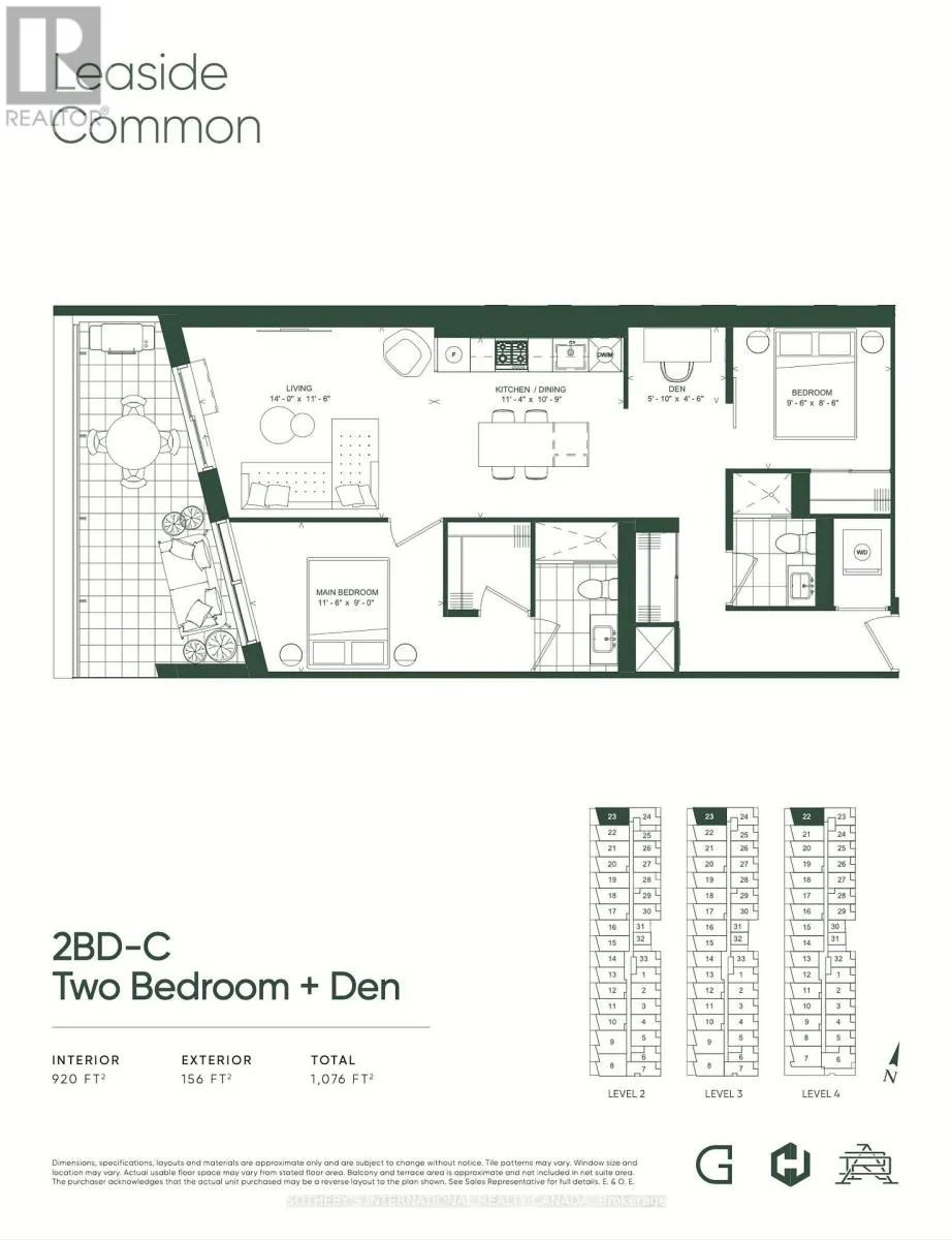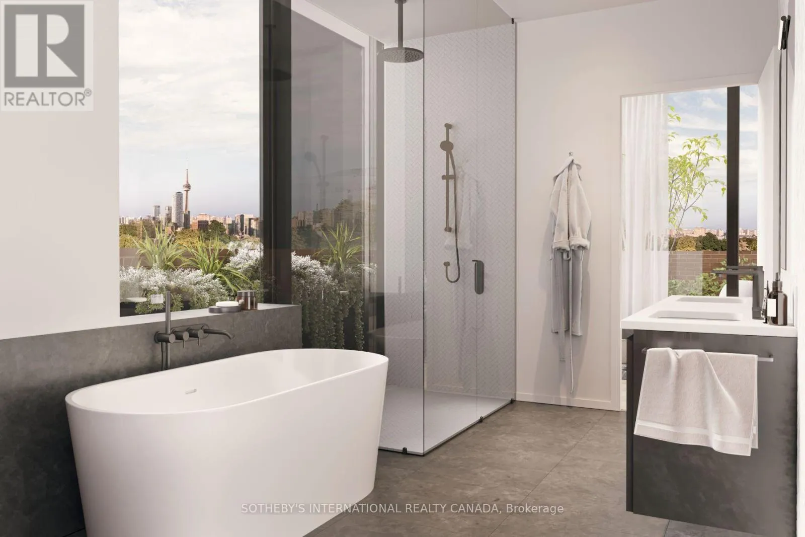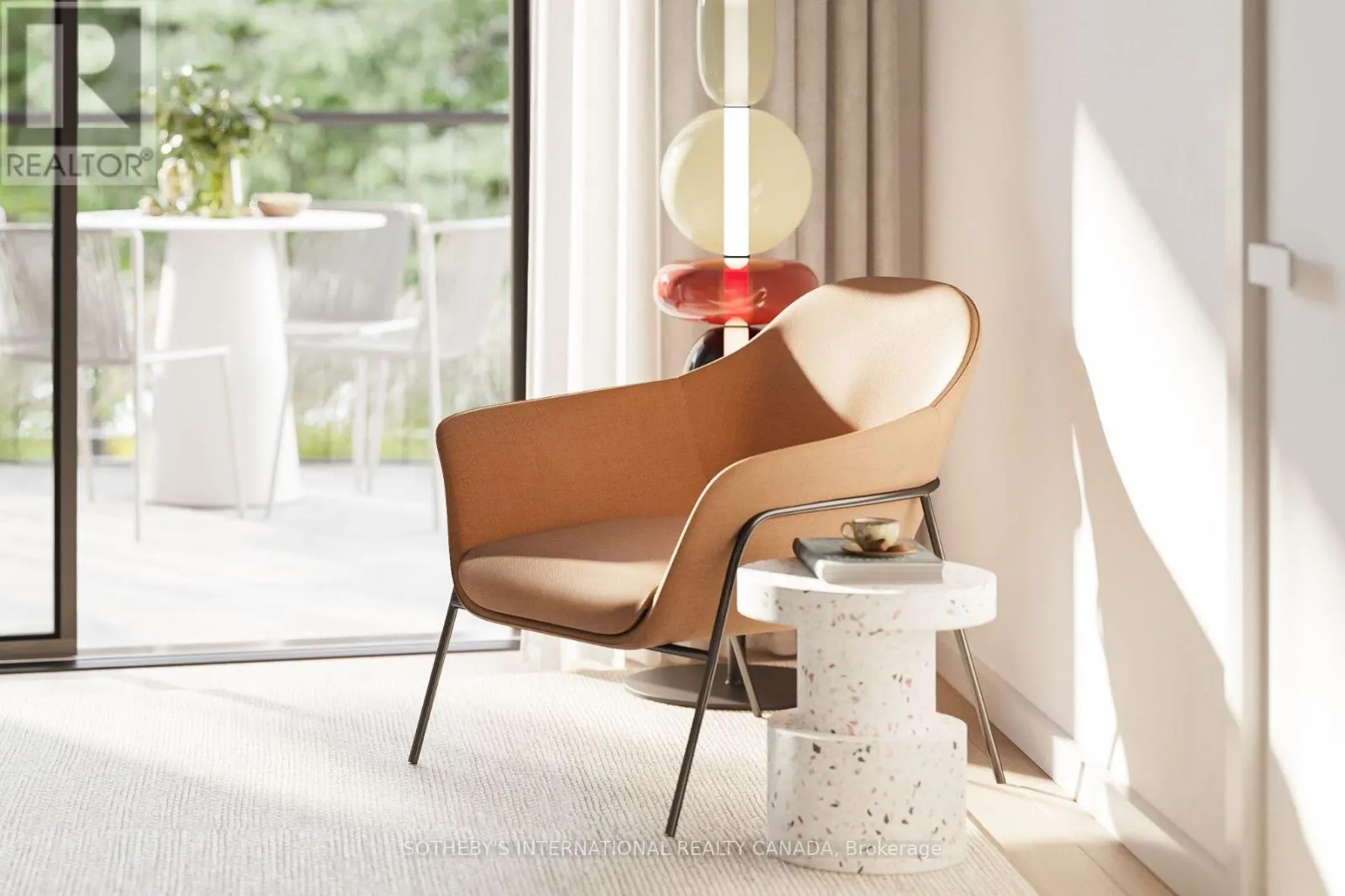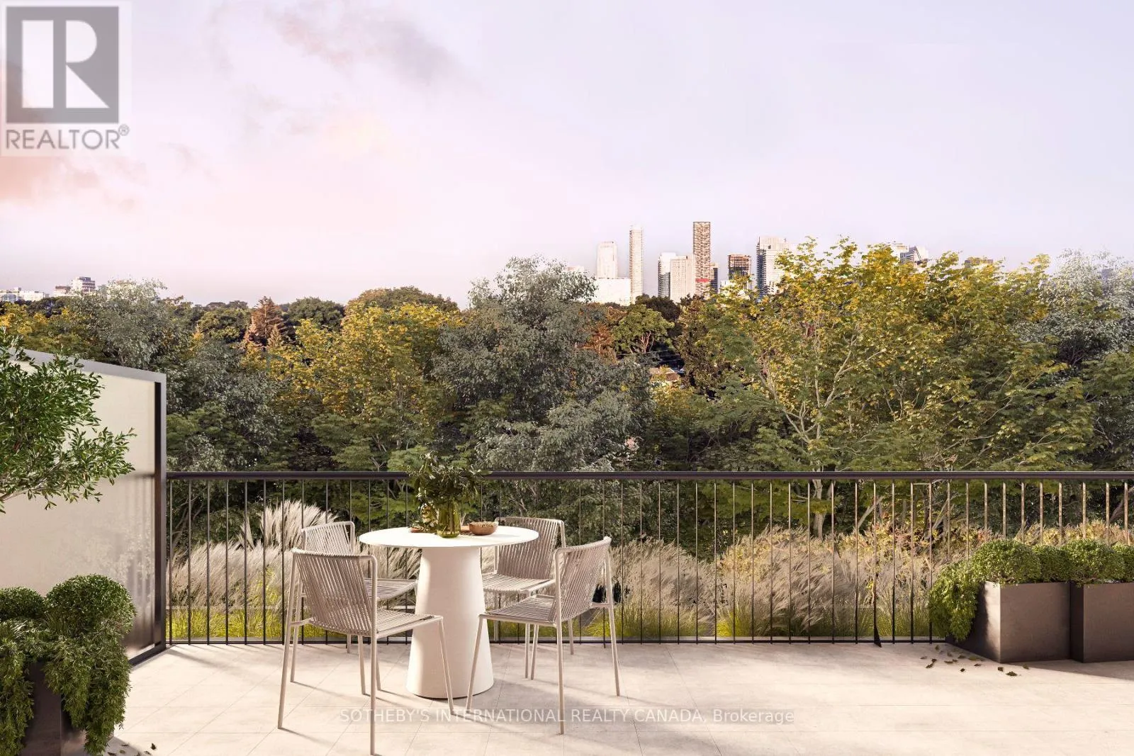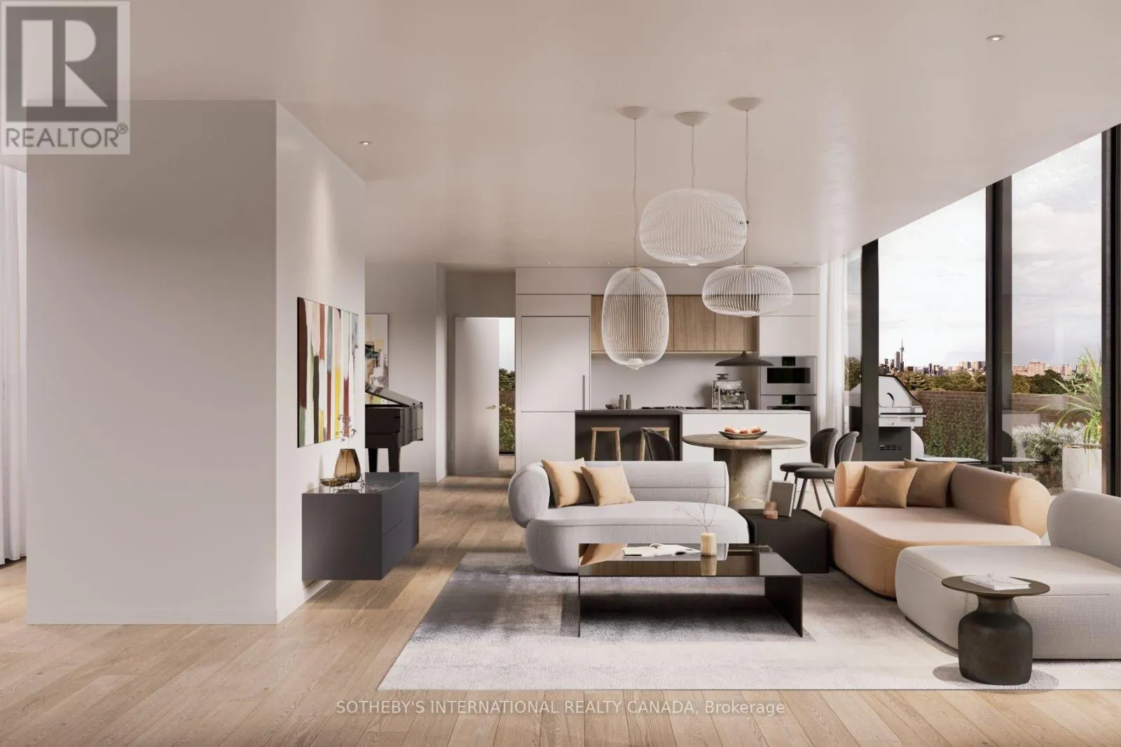 Cross Streets: Bayview Ave and Eglinton Ave E. ** Directions: Follow your GPS. Experience elevated living at Leaside Common, a brand-new luxury residence in the heart of Leaside. This 9-storey boutique building by Gairloch Developments features fewer than 200 suites with striking architecture by BDP Quadrangle and sophisticated interiors by Sixteen Degree Studio. Design and thoughtful execution define every detail, and the timeless finishes reflect the spirit of the neighbourhood. This brand new never never-lived-in West-facing two-bedroom plus den, two-bathroom suite offers a bright and spacious layout with a private terrace. The suite features 920 square feet of interior living space with 9-foot exposed concrete ceilings, premium engineered hardwood flooring, and smooth-painted walls. The kitchen includes an eat-in island, custom Italian cabinetry, engineered quartz countertops and backsplash, high-end stainless steel built-in electric oven, gas cooktop and panelled refrigerator and dishwasher. The primary bedroom features a walk-in closet and an ensuite with a frameless glass shower with rain head and hand shower. Additional highlights include a full-size Energy Star-certified washer and dryer, smart thermostat, and Energy Recovery Ventilation system for improved air quality. The suite also includes one parking spot for added convenience. The inspired collection of amenities includes a fitness studio,co-working lounge, party room, outdoor terrace, children's playroom, and pet spa. The ground level features retail, a 24-hour concierge, and smart building access. Leaside Common is perfectly positioned in prime Mount Pleasant East, steps to the new Leaside LRT Station and minutes from the Don Valley Parkway. Enjoy easy access to Sunnybrook Hospital, premier shops, cafes, and top-rated schools (e.g., Leaside High, Toronto French School). This established midtown community offers the perfect balance of urban convenience and neighbourhood charm. (id:27476)