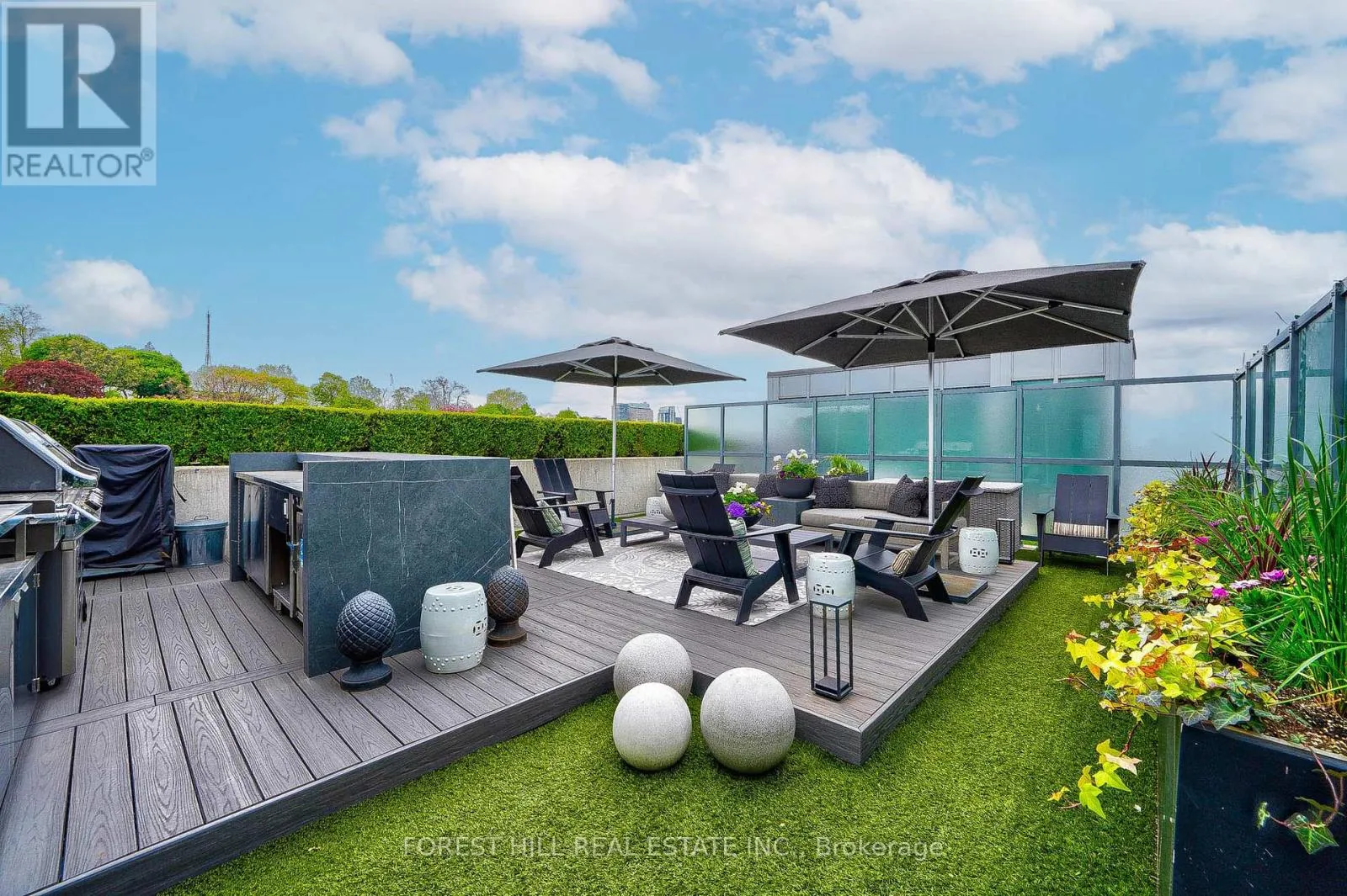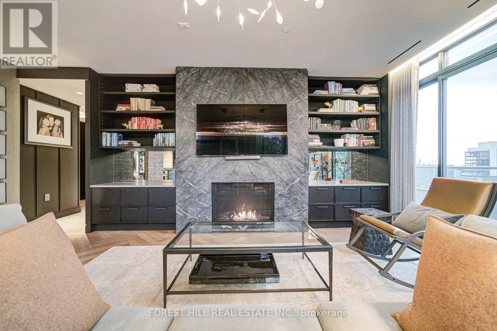 Cross Streets: Spadina And Dupont. ** Directions: -. Indulge in the epitome of luxury living at this immaculate 3-bed, 3-bath Penthouse, crafted by a renowned international Designer, a top of South Hill on Madison. No expense was spared in the creation of this custom home, boasting Legrand Adorne electrical devices, custom white oak herring bone floors, & ceilings finished w/ the highest grade no.5 finish. Every detail exudes sophistication, from recessed lighting & sprinklers sprinklers to architectural linear slot diffusers. Storage is abundant, w/ bespoke built-in closets & jaw-dropping shoe closets in Louboutin red. The kitchen is a chef's dream, equipped with built-in Liebherr refrigerators, Thermador induction cooktop & oven, a Grigio Carnico Stone island with a sumptuous leather finish. Relax by the Stuv fireplace in the living room. Outdoor enthusiasts will delight in over 1400sf outdoor space comprised of 2 balconies & roof terrace: fully tiled balconies and a sprawling roof terrace complete with a built-in outdoor kitchen & commercial-grade Napoleon BBQ grills, all while soaking in breathtaking views of Casa Loma & CN Tower. Bespoke luxury at its finest. **EXTRAS** Two private adjacent parking spaces. (id:27476)