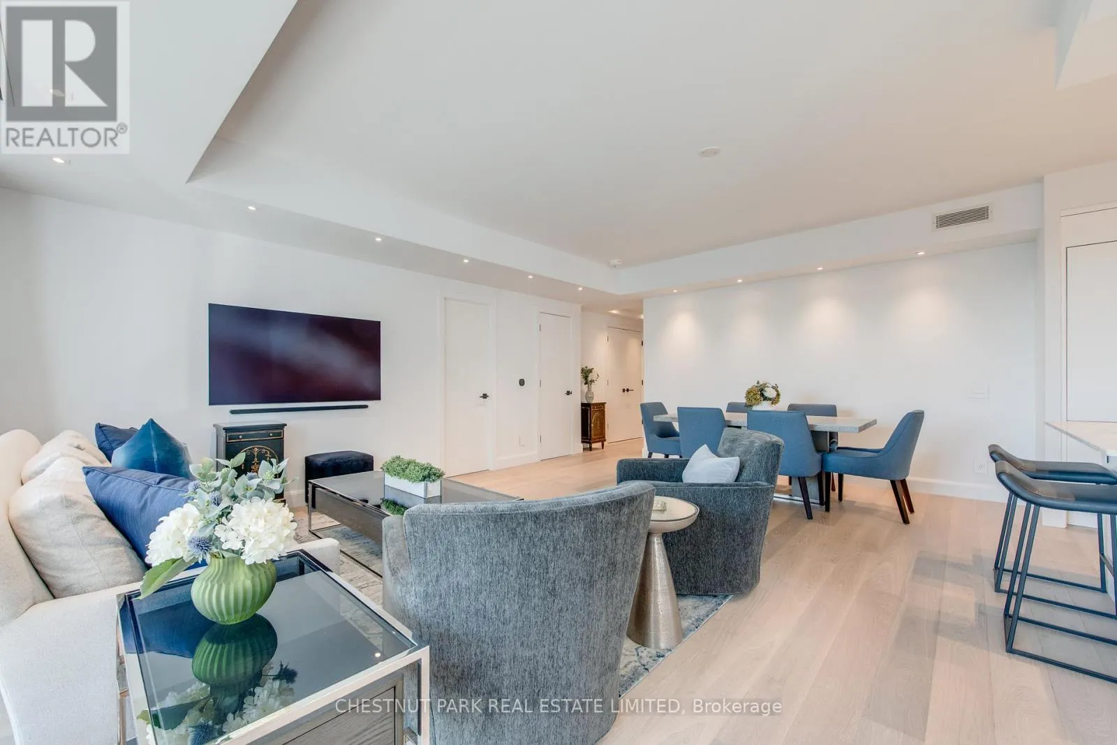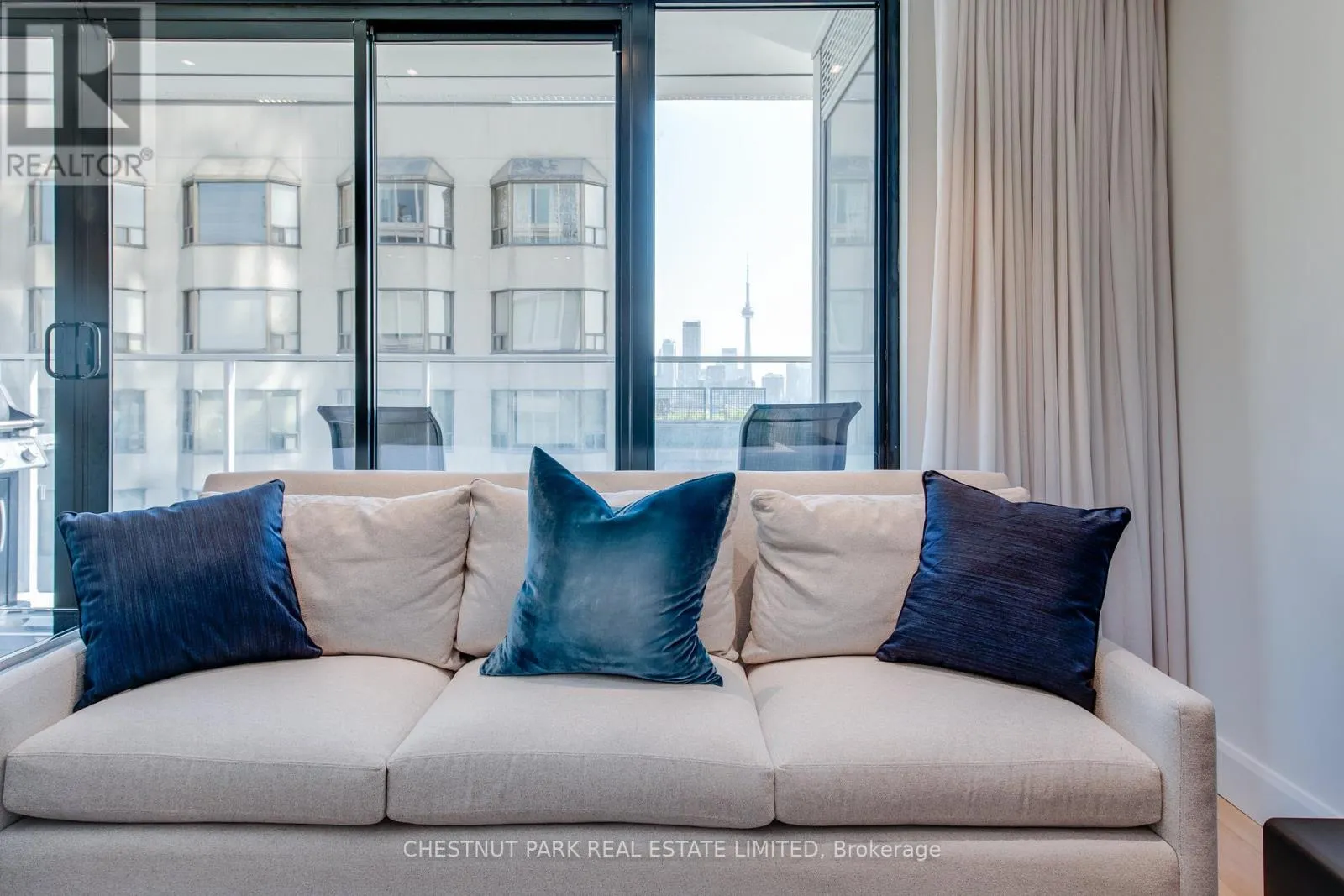 North Of Bloor East Of Avenue Rd Prime Yorkville pied-a-terre in luxury boutique building of only 48 suites. Bright south facing one bedroom of 1000 sq ft plus balcony with CN Tower views. Well designed layout with generous room sizes features wood flooring throughout, floor-to-ceiling windows, a powder room off dining room, spa ensuite bath with in-floor heating. Expansive balcony with gas line and barbecue. Parking next to elevator, protected on both sides by pillars. Available with the option to be sold fully furnished, including all household essentials for a turnkey lifestyle. Ideal as a convenient in-city base or a comfortable residence to keep an aging parent close by, with attentive building staff and proximity to major hospitals. Perfect for those seeking refined living in a discreet, well-managed building. Yorkville Private Estates luxury condo building provides exceptional, full-service 24/7 concierge, porter services, and valet parking for you and your guests. Featuring extensive amenities including guest suites, 2 gyms, large indoor pool, sun terrace, party/meeting room & more. Steps to Yorkville's top boutiques and restaurants, Whole Foods, the ROM, University of Toronto, and the subway. (id:27476)
