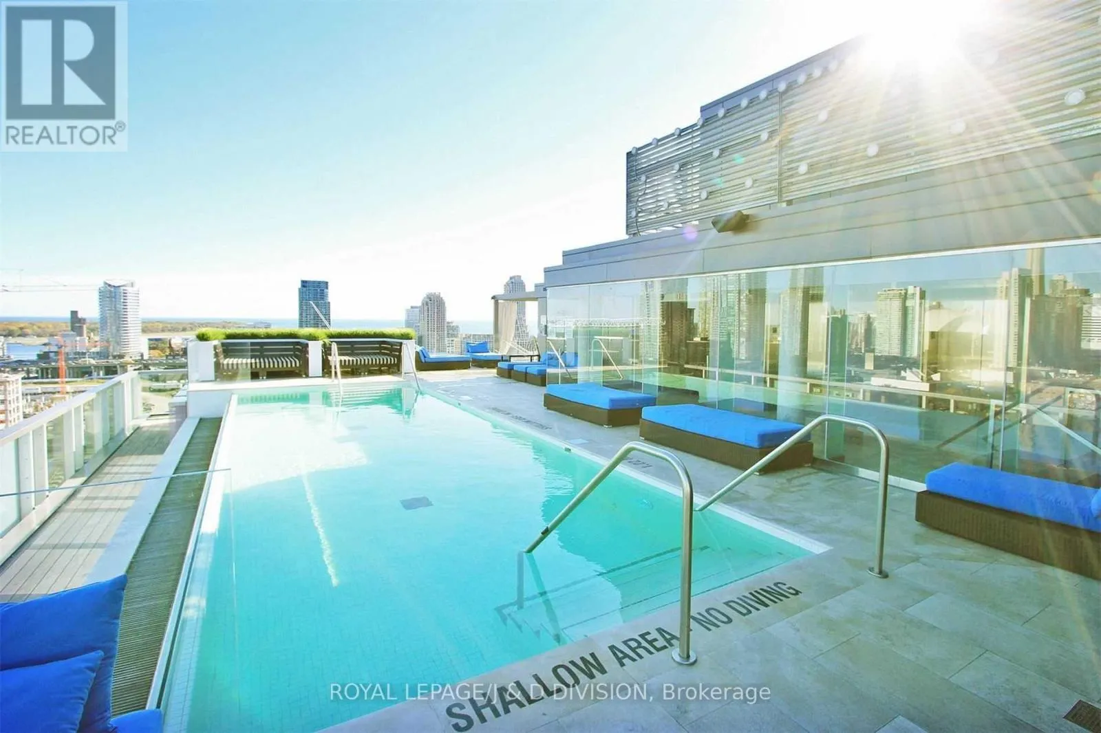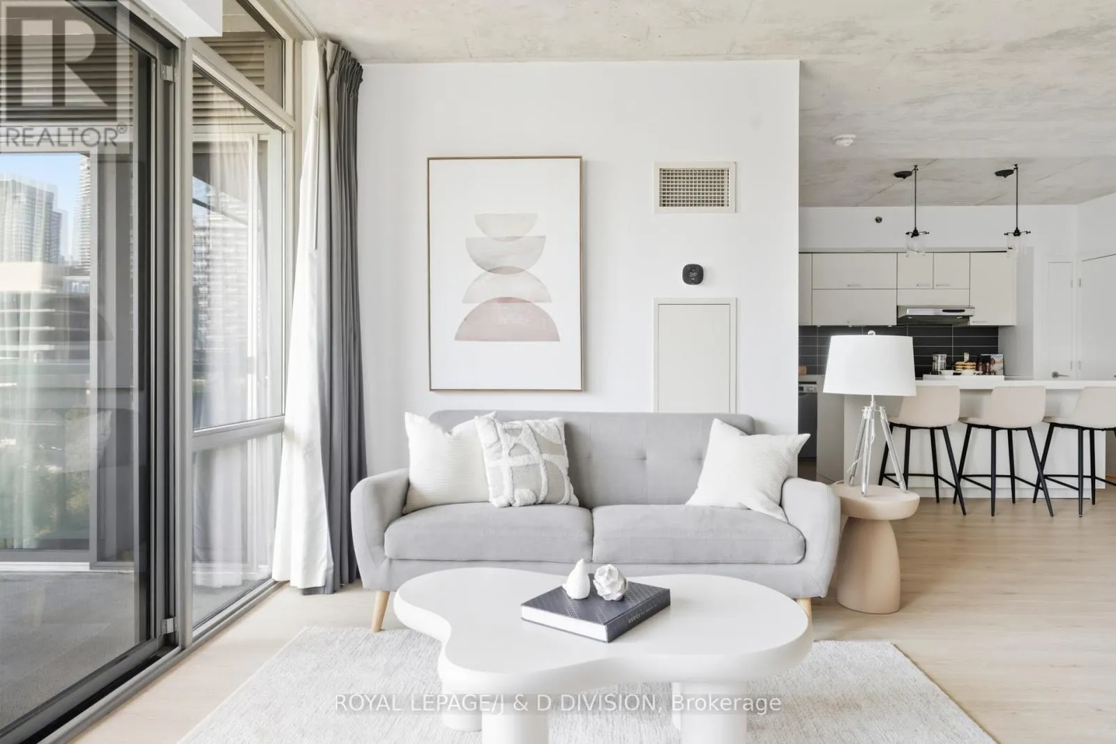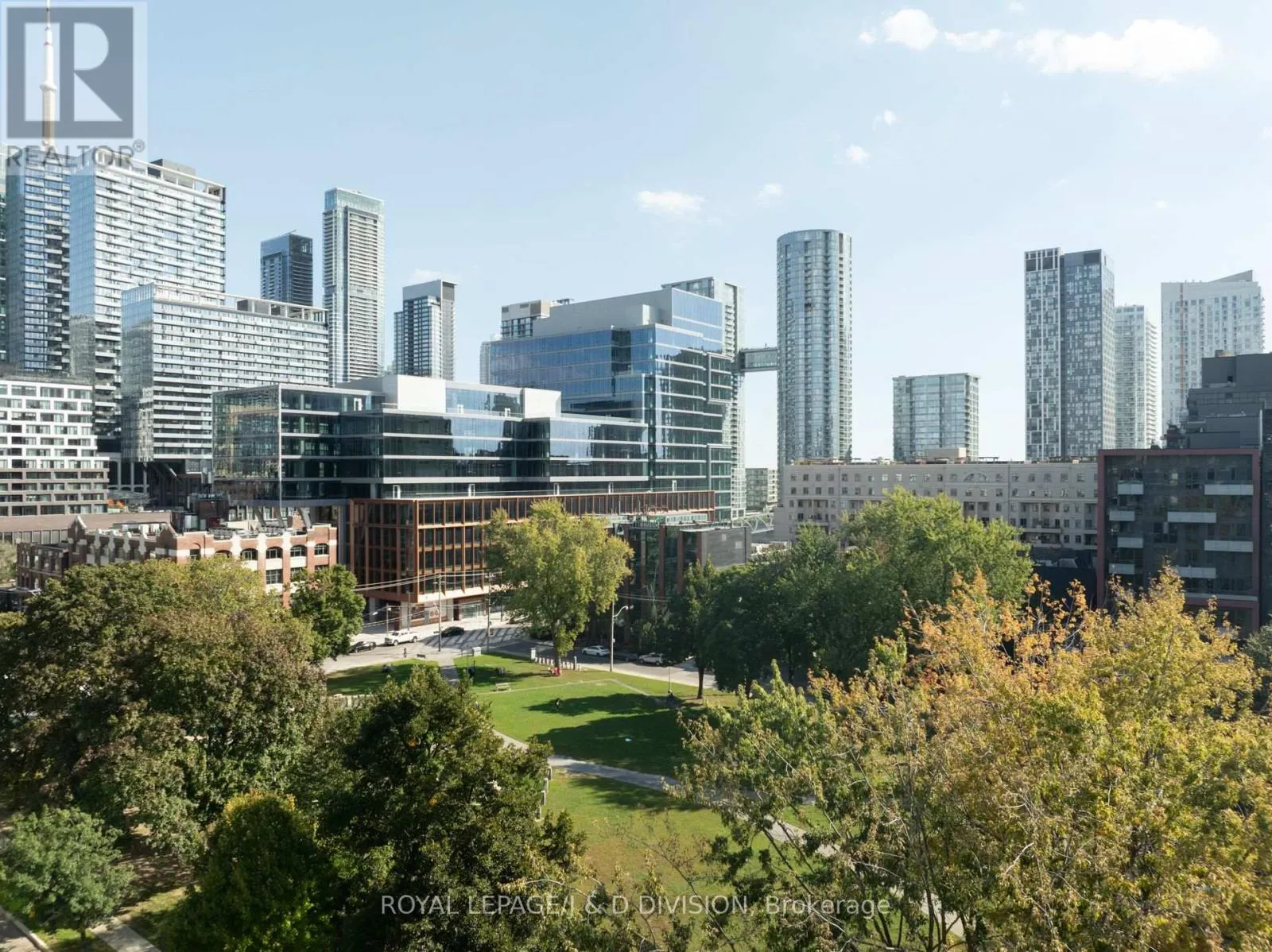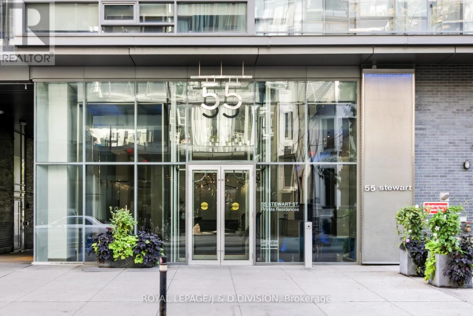 Cross Streets: King & Bathurst. ** Directions: From Bathurst and King, head one block South to Stewart St. One way from Bathrust to #55. Situated in the heart of Toronto's most dynamic neighbourhood, this modern 2-bedroom, 2-bathroom condo combines style with everyday convenience. Floor-to-ceiling windows flood the space with natural light, while sleek concrete ceilings, brand new luxury vinyl flooring (2025), and an open-concept layout create an urban-chic vibe. The contemporary kitchen features stainless steel appliances and a Poggenpohl breakfast island - perfect for cooking or entertaining - while a private balcony showcases skyline views and Victoria Memorial Park, for your morning coffee or evening unwind. The primary suite includes a walk-in closet, spa-like ensuite, and in-suite laundry, while the second bedroom easily doubles as a home office. At the Thompson Residences, enjoy exclusive access to the 1 Hotel and premium hotel-style amenities including a rooftop pool, gym, concierge, steam room and more! Just steps from Toronto's best restaurants, cafés, bars, and nightlife, with sports arenas, the theatre district, The Well, and shopping minutes away. Transit is at your door with quick access to the Gardiner, QEW, and Billy Bishop Airport. Includes Parking and a Locker! (id:27476)
