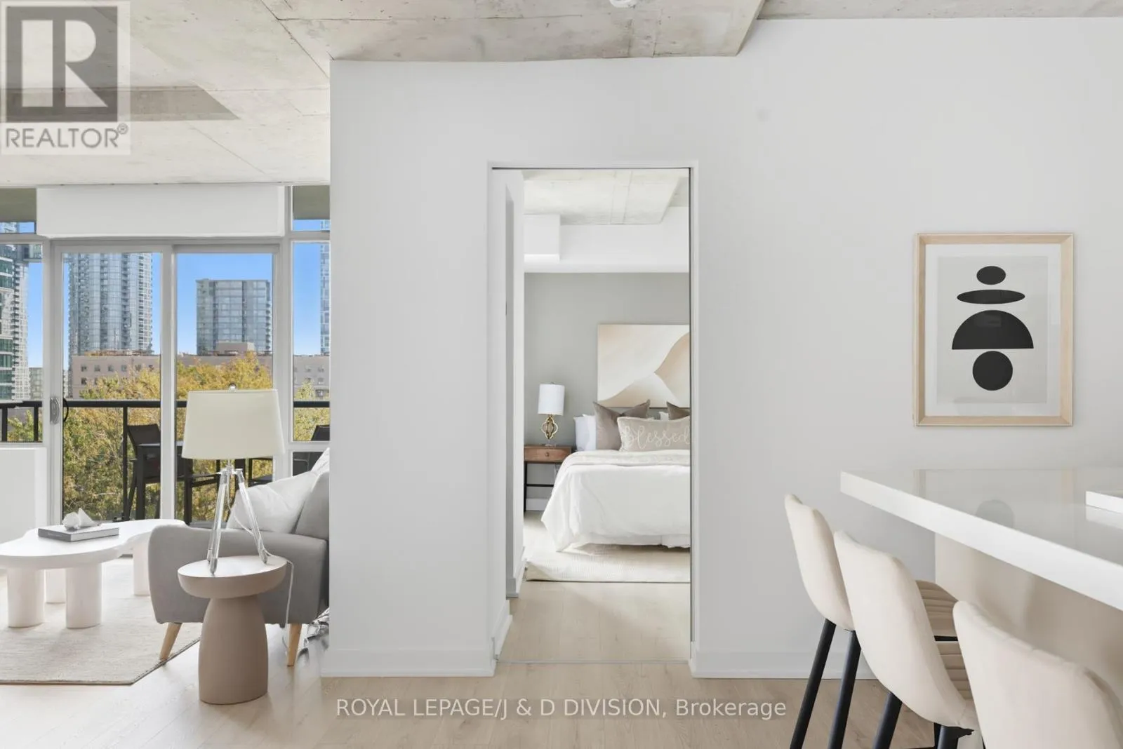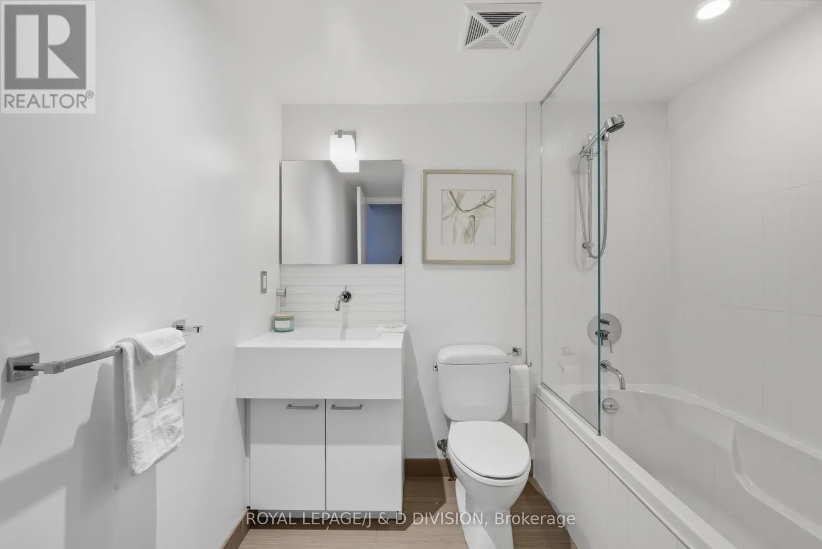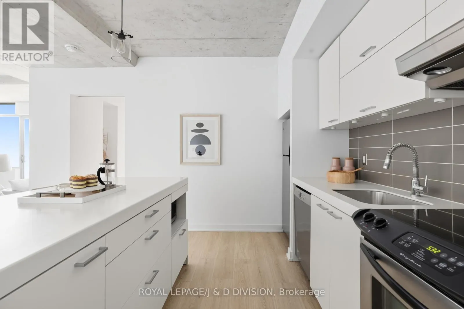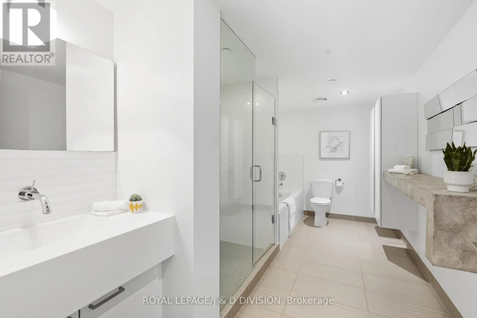 Cross Streets: King & Bathurst. ** Directions: From Bathurst and King, head one block South to Stewart St. One way from Bathrust to #55. Situated in the heart of Toronto's most dynamic neighbourhood, this modern 2-bedroom, 2-bathroom condo combines style with everyday convenience. Floor-to-ceiling windows flood the space with natural light, while sleek concrete ceilings, brand new luxury vinyl flooring (2025), and an open-concept layout create an urban-chic vibe. The contemporary kitchen features stainless steel appliances and a Poggenpohl breakfast island - perfect for cooking or entertaining - while a private balcony showcases skyline views and Victoria Memorial Park, for your morning coffee or evening unwind. The primary suite includes a walk-in closet, spa-like ensuite, and in-suite laundry, while the second bedroom easily doubles as a home office. At the Thompson Residences, enjoy exclusive access to the 1 Hotel and premium hotel-style amenities including a rooftop pool, gym, concierge, steam room and more! Just steps from Toronto's best restaurants, cafés, bars, and nightlife, with sports arenas, the theatre district, The Well, and shopping minutes away. Transit is at your door with quick access to the Gardiner, QEW, and Billy Bishop Airport. Includes Parking and a Locker! (id:27476)