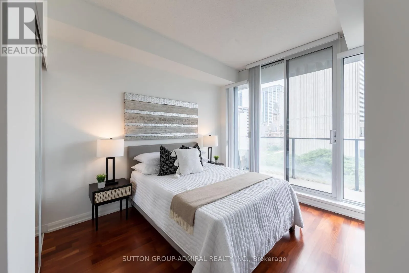 Bay St. & Dundas St., W Welcome to a Beautiful, Bright & Spacious 1 Bedroom + Den in the Heart of Downtown - Where Style Meets Convenience! This sun-filled, south-facing suite offers approximately 700 sq.ft. of open-concept living space plus an 80 sq.ft. balcony (as per builder's plan). The functional layout includes a large den, perfect for a home office or guest area, laminate floors throughout, and a modern kitchen featuring stainless steel appliances and sleek S/S countertops. Enjoy a wide range of luxury amenities, including an indoor pool, fitness center, sauna, rooftop terrace with BBQs, 24-hour concierge, and party room. Located in the unbeatable downtown core, you're just steps to Toronto General Hospital, Mount Sinai, SickKids, University of Toronto, Toronto Metropolitan University (TMU), the Subway, Eaton Centre, and the best shops, restaurants, and entertainment the city has to offer. (id:27476)