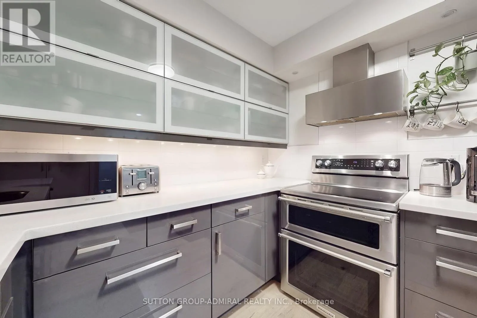 King St. W And Shaw St. Gorgeous & Spacious 2-Bedroom, 2-Bath Condo On King West!Over 900 Sq. Ft. + Balcony Of Stylish Open-Concept Living. Features A Modern Kitchen With S/S Appliances, Breakfast Bar, And Ample Storage. Large Primary Bedroom With Walk-In Closet And 4-Piece Ensuite. Beautiful Modern Floors, Flat Ceilings, And Pot Lights. Includes Ensuite Storage, Parking, And Locker. Bright North-Facing Unit With Large Windows And A Private Patio Perfect For Morning Coffee. Steps To King Streetcar, Stanley Park, Trinity Bellwoods, And Ossington Strip. Easy Access To Gardiner And DVP. Boutique Building Offering A Stylish Alternative To House Living! (id:27476)