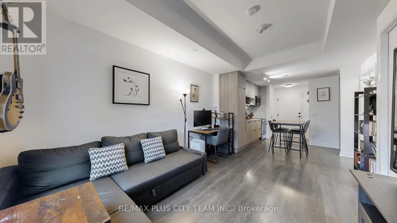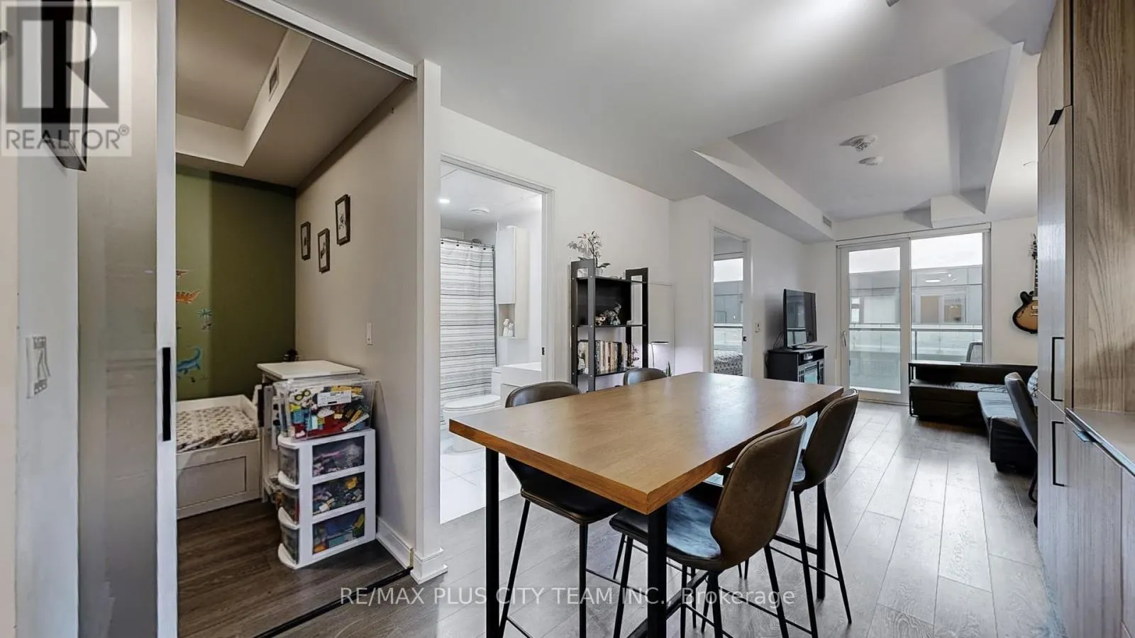 Front Street East & Cherry Welcome to this thoughtfully designed one-bedroom plus den suite at Canary Commons, offering stylish interior space and a generous balcony, as per the builder's plan. The spacious den, complete with a custom door, is perfect as a private home office or can easily function as a second bedroom. East-facing windows fill the open-concept living and dining area with natural morning light, complemented by hardwood flooring throughout. The sleek kitchen features stainless steel appliances, contemporary cabinetry, and tasteful finishes. Enjoy the convenience of in-suite laundry and high-speed internet included in the maintenance fees. Residents enjoy fantastic building amenities, including a rooftop terrace with BBQs and fire-pits, a fitness space, lounge, co-work space, yoga studio, hobby room, child play room, and more. Ideally located in Toronto's vibrant Downtown-East, you're just steps to trendy shops, cafes, the Distillery District, Corktown Commons, Cooper Koo Family YMCA, and scenic Cherry Beach. With easy access to Queen and King Streets, public transit, the Don Valley Parkway, and the Gardiner Expressway, this home truly surrounds you with the best of urban living. (id:27476)