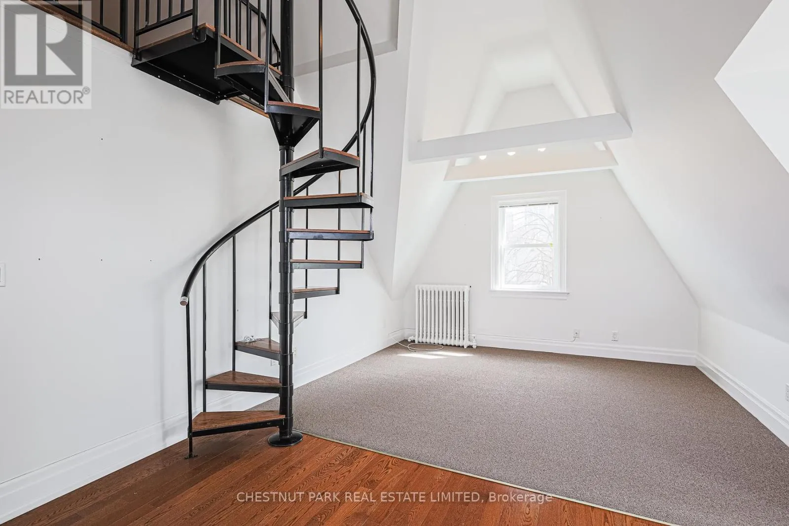 South Drive and Scarth Rd. Located in a grand Rosedale mansion on pretty South Drive, this charming apartment is an amazing opportunity to live in one of TO's most coveted neighbourhoods. A vaulted ceiling, skylights, and original details, along with treetop views, give this home a hip vibe and unmistakable appeal. Important conveniences like ensuite laundry, large bedrooms, parking, a loft "bonus" space, and good-sized closets create a functional and comfortable environment. A gracious living/dining room is an ideal space for decompressing or entertaining. A south-west-facing porch provides a lovely view of the city skyline. A quiet location close to downtown with easy access to ravines, the TTC, cafes, shops, and so much more. This apartment is a gem. Don't miss it! (id:27476)
