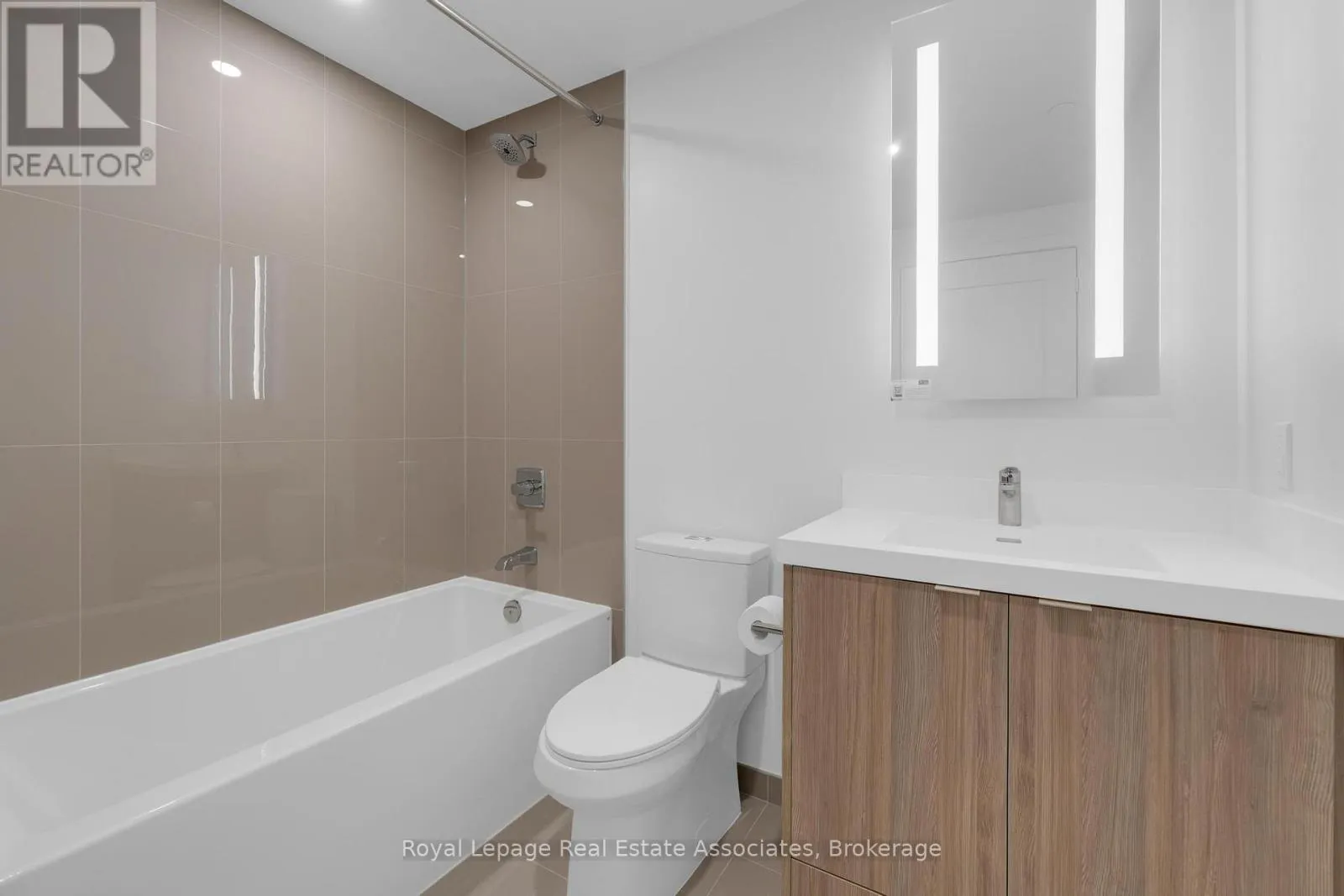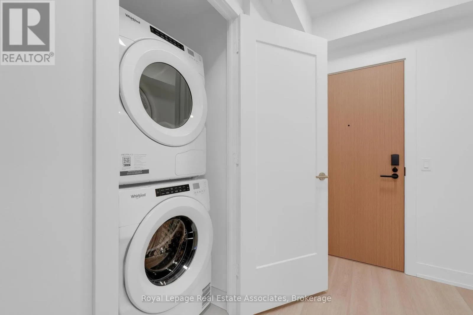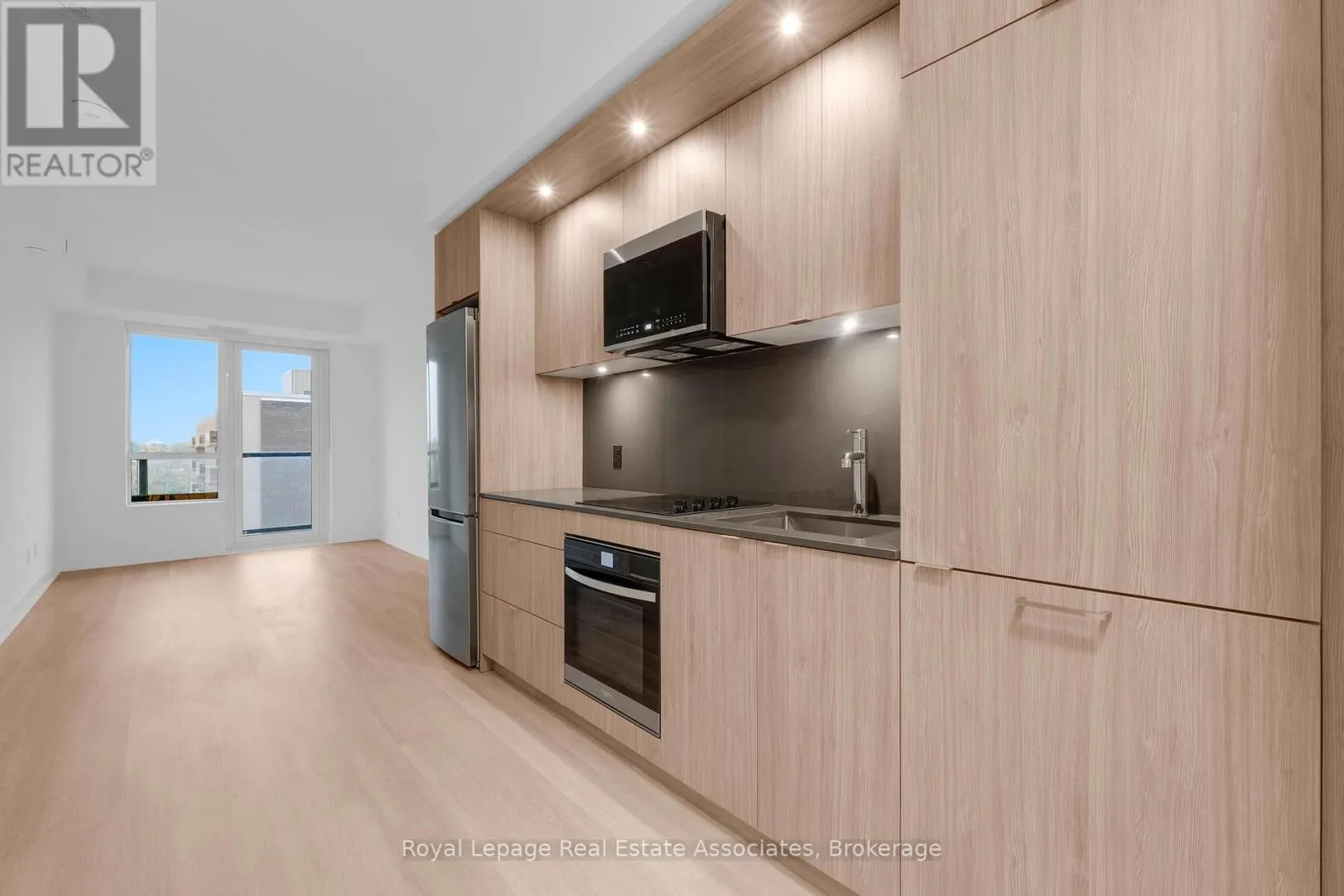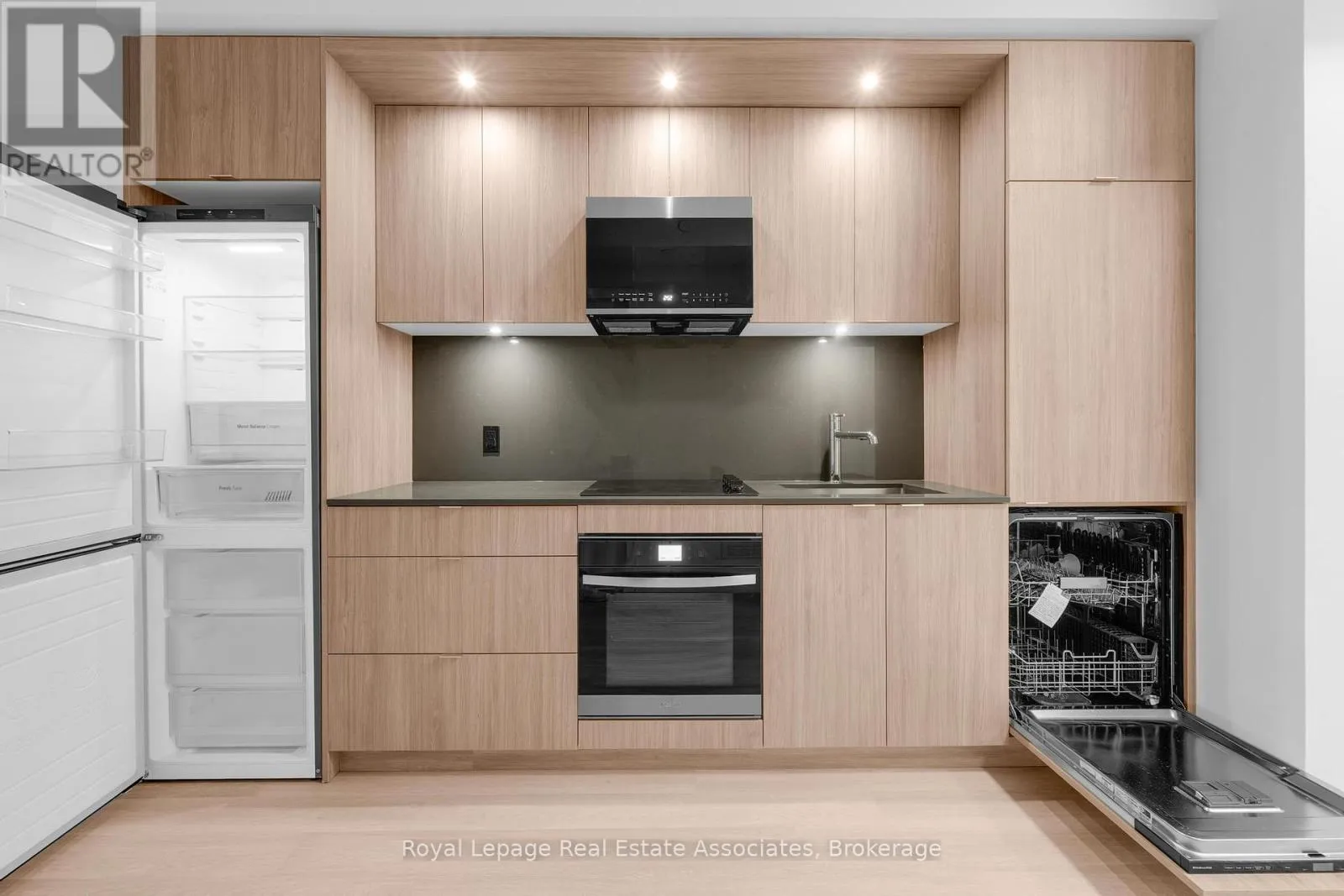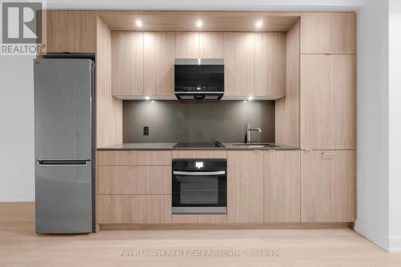 Bloor & Islington Welcome to Westerly 2 by Tridel, where contemporary design meets everyday comfort in Etobicoke's most connected community. This thoughtfully designed 1-bedroom, 1-bathroom suite offers 595 sq. ft. of bright, modern living space with sleek finishes and functional flow. The open-concept kitchen features integrated stainless-steel appliances, quartz countertops, and seamless wood-grain cabinetry, blending style with practicality. The spacious living area extends to a private balcony, offering an inviting space to unwind with open community views. The bedroom includes a walk-in closet with custom shelving, while the 4-piece bathroom showcases modern tilework and a clean, elegant design. Additional highlights include in-suite laundry, wide-plank flooring, and abundant natural light throughout. Residents of Westerly 2 enjoy access to state-of-the-art amenities, including a fitness studio, party room, lounge, rooftop terrace with BBQs, and 24-hour concierge service. Located just steps from Islington and Kipling Stations, and minutes from shopping, dining, and parks, this residence offers a perfect blend of convenience, comfort, and urban sophistication. (id:27476)