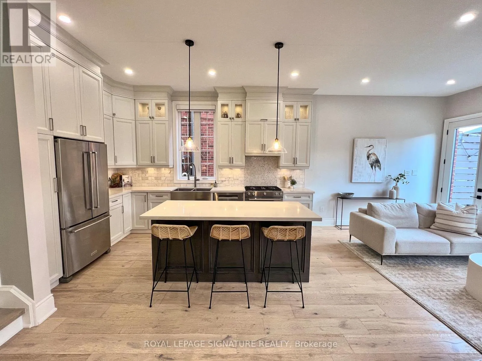 Browns Line & Owen Dr Step inside to discover a thoughtfully reimagined main floor layout that enhances flow and function-perfect for modern family living. 15A Owen Dr offers everything today's family could want-style, comfort, space, and smart living-and the location can't be beat! Just a 10-minute walk to the Long Branch GO Station (easy access from Enfield Ave), the lake, Etobicoke Creek Trail, and a sought-after French Immersion school (Sir Adam Beck JS). Plus, enjoy quick access to the Gardiner, Hwy 427, and Lake Shore Blvd. This custom-built 2.5-storey home is tucked away on a family-friendly, treelined cul-de-sac in the coveted West Alderwood neighbourhood, and sits proudly on a 25x132' lot. Boasting 3 large bedrooms, 4 bathrooms, 2,118 sq. ft. above grade, and a fully finished basement offering an additional 747 sq ft, this home delivers space and function in equal measure. Premium finishes include: Impressive 13' foyer, accompanied by custom built-ins and bench for an abundance of thoughtfully designed storage; 10' ceilings on the main floor and 9' upstairs; Beautiful crown moulding, wainscoting, and accent walls; Gourmet kitchen with quartz countertops, gas 5 burner stove, stainless steel appliances, built-in coffee bar, sitting & dining area and gas fire place; Separate family room; Integrated premium speakers with in-wall volume control; Built-in 1 car garage plus double-wide private driveway (no stacked parking here!); Inviting backyard featuring a 275 sq ft composite deck with privacy walls, lawn irrigation system; fully finished 8x8 shed/studio with electricity and heat source, and so much more. Move right in and enjoy everything this home and community have to offer! (id:27476)