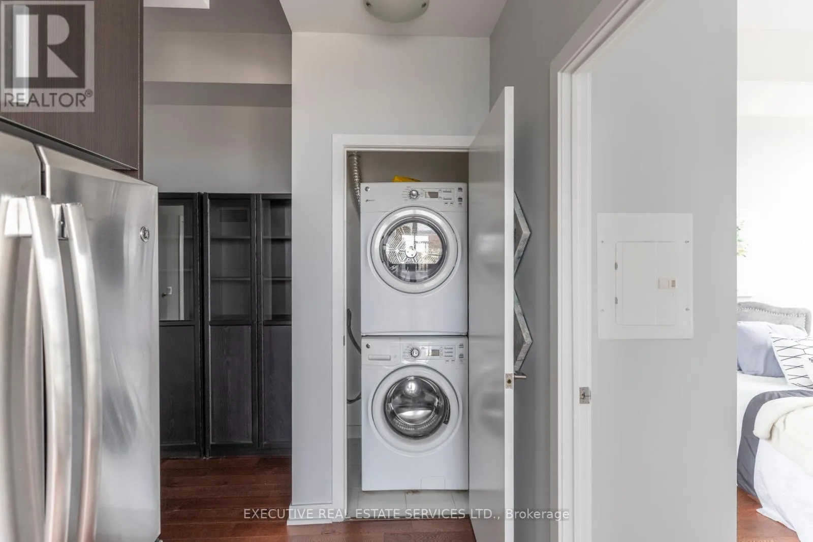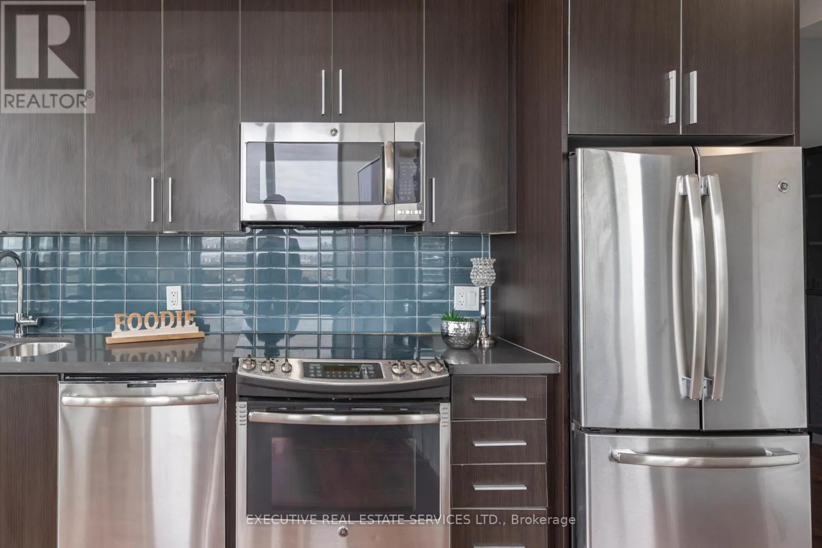 Park Lawn / Lakeshore Welcome to this stunning Lower Penthouse Corner Unit in the highly sought-after Mimico Lakefront Communities! This spacious and sun-filled 2 Bedroom + Study, 2 Bathroom suite offers a functional split-bedroom layout with floor-to-ceiling windows that fill the space with natural light and showcase northeast views of the city and lake. Enjoy the luxury of a huge, fully furnished private terrace, plus an additional balcony ideal for outdoor dining, relaxing, or entertaining above the city skyline.The modern open-concept kitchen is equipped with stainless steel appliances, sleek cabinetry, a glass tile backsplash, and plenty of counter space, flowing seamlessly into the living and dining area. The primary bedroom features a large closet and 4-piece ensuite, while the second bedroom offers generous space and natural light. The versatile study/den is perfect for a home office or reading nook. Additional features include 9-foot ceilings, full-sized stacked washer/dryer, hardwood floors, and ample closet space throughout.This unit comes with one underground parking space and a storage locker. Enjoy exceptional building amenities: fitness centre, outdoor pool, BBQ terrace, resident lounge, library, and more. Direct access to Metro, Shoppers Drug Mart, LCBO, Starbucks, and banks right below the building for unbeatable convenience. Located just steps from Lake Ontario parkland and waterfront trails, and minutes to the QEW, Gardiner Expressway, and Mimico GO Station, this location offers the perfect balance of urban lifestyle and lakeside serenity. Ideal for end-users or investors. Dont miss this rare opportunity to live in one of Etobicokes most vibrant waterfront communities! (id:27476)
