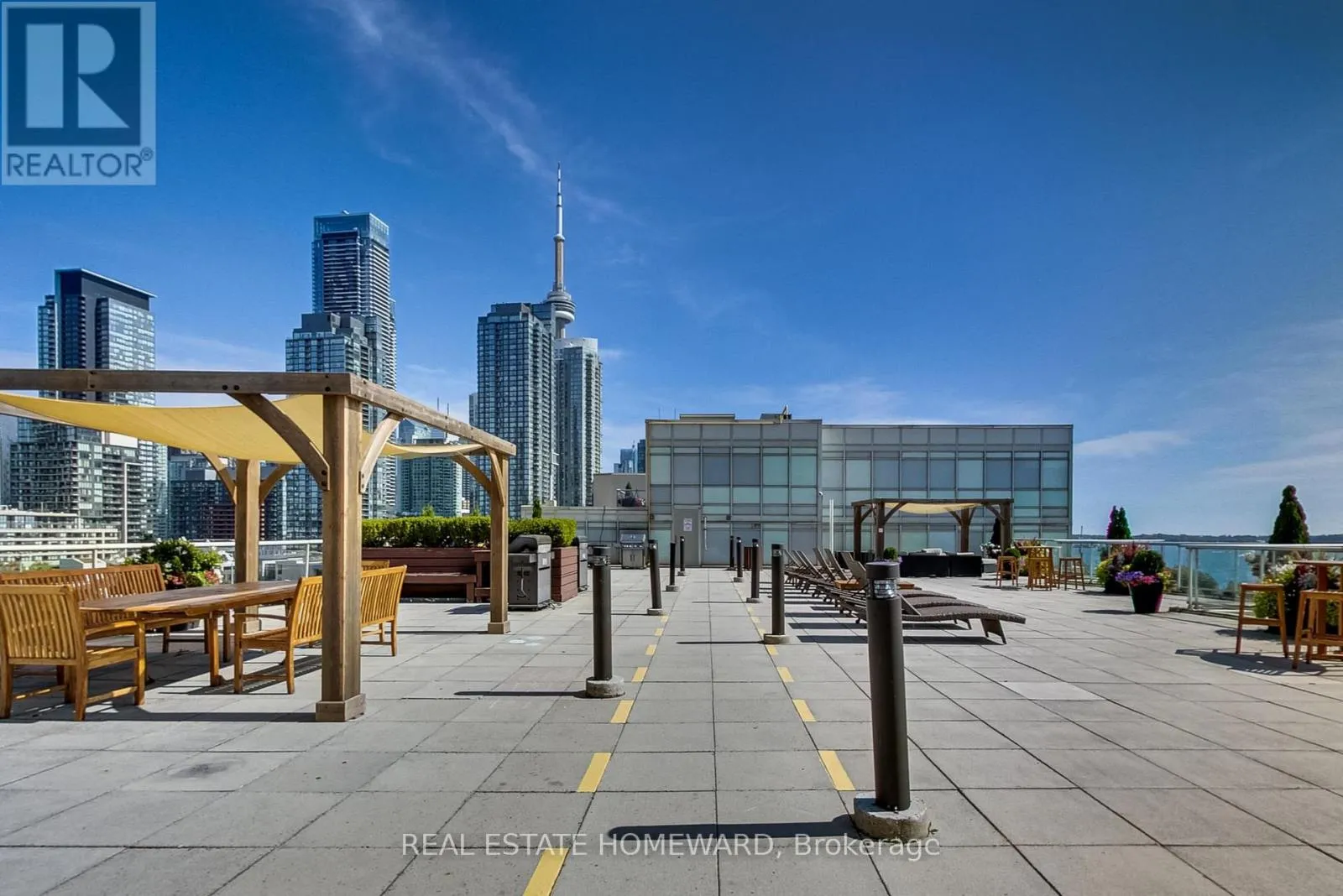 Cross Streets: Queens Quay W at Dan Leckie Way +Lake. ** Directions: Visitor Parking Entrance off Dan Leckie Way. Live by the lake in this fabulous mid-rise boutique building on the waterfront. This expansive 1-Bedroom is South-facing with an unobstructed view of the lake, park, trail. This open concept unit offers floor to ceiling windows, a private covered balcony and a large primary bedroom which is King-size bed ready and includes a walk-in closet with plenty of storage, and a separate entrance to the ensuite bathroom. Note - a separate room for the 2-piece for extra privacy. Love outdoor living - enjoy the balcony which adds 66 square feet of additional living space. The Unit also has 1 parking spot and 1 locker which are both owned. What you will love about living here: A well managed building with a great concierge, view of the lake, access to the waterfront trails, transit, large bedroom, Visitor parking, good storage options. Walking distance to Rogers Center, Scotiabank Arena, Bud Stage, King West, Airport, zip across to the island via the water taxi at your doorstep. Amenities include: an Amazing rooftop terrace with panoramic views, BBQ areas, lounging chairs - perfect for friend and family gatherings. Party room - great for entertaining and work from home space. The gym is welcoming with newer equipment. Sauna and steam room are an added bonus after a hard work out. 24-hour concierge + security also a big perk. (id:27476)