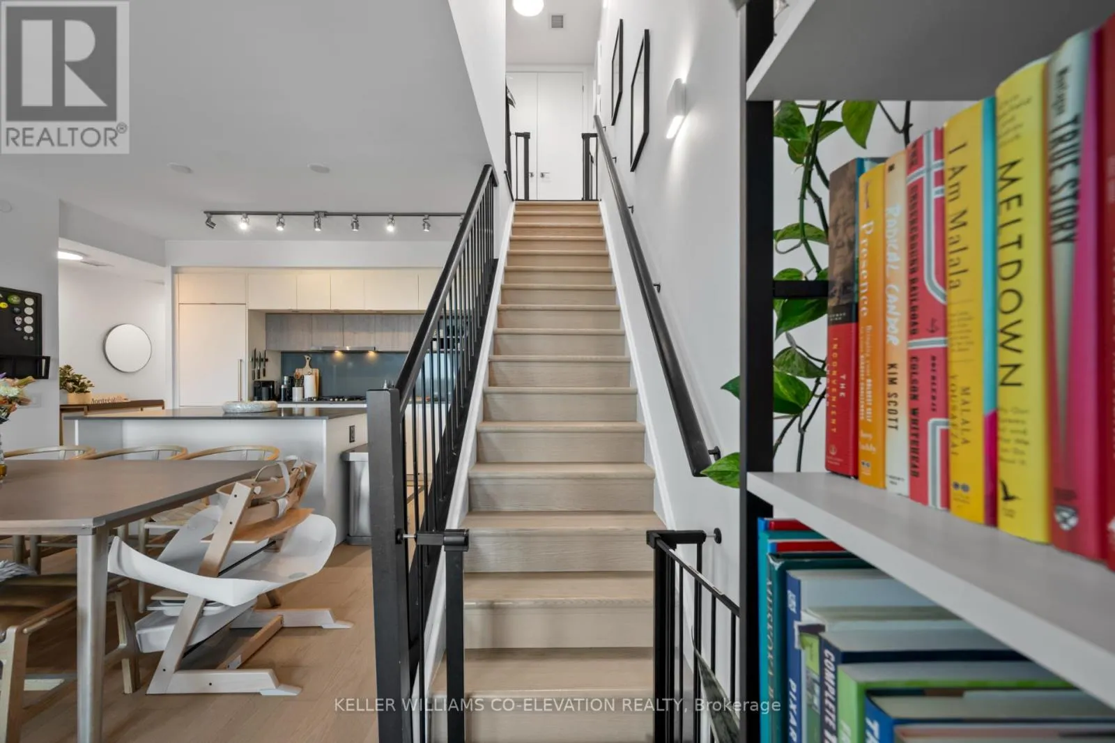 Cross Streets: Bloor and Lansdowne. ** Directions: Lansdowne and Bloor. Experience Elevated Urban Living. Discover modern elegance in this stunning two storey penthouse loft at Enigma on the Park, a boutique residence surrounded by serene green space. This spacious suite features soaring nine foot ceilings, a skylight, and an open concept design filled with natural light. The gourmet kitchen offers a large island, gas range, and soft close cabinetry. The primary suite includes a spa inspired four piece ensuite, walk in closet, and a private terrace with lake views and beautiful southwestern sunsets. With two bedrooms, three bathrooms, and two terraces, this home offers exceptional comfort and style. Additional highlights include upper level laundry, parking, locker, and proximity to top rated schools. Steps to MacGregor Park and minutes to the subway, GO Train, and UP Express. Enjoy a vibrant lifestyle close to Dundas West shops, cafes, and restaurants. (id:27476)