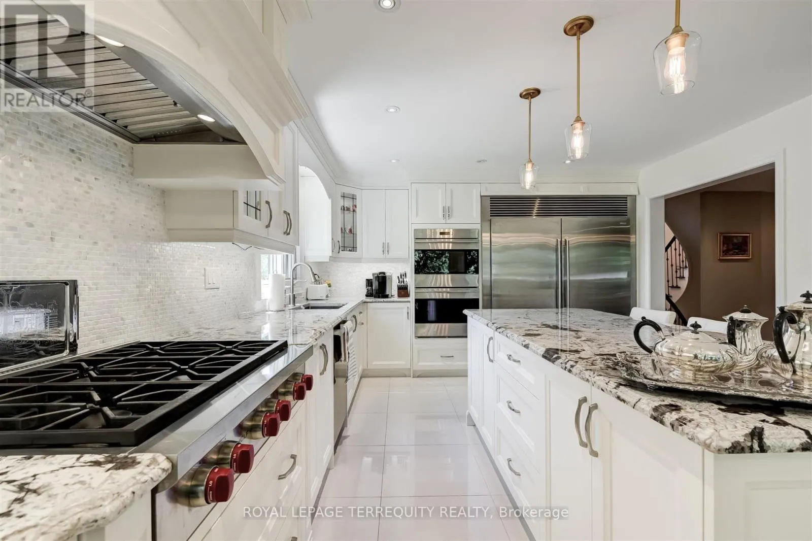 Burnhamthorpe/East Mall Welcome to 11 Blaketon located in the prestigious Eatonville neighbourhood. This luxurious custom designed residence blends refined living space with practical functionality. Blaketon encompasses over 3600 square feet in traditional and modern day comfort. The grand Foyer soars 16 feet above while a 3 tier crystal chandelier is suspended from the second floor ceiling. The living room with its 11 foot high walls and a marble wood burning fireplace presents a peaceful, timeless elegance that promotes refined comfort & living. But the piece d'resistance is the opulent coffered ceiling that illuminates a suspended crystal chandelier. The sunken family room boasts a handcrafted interior cast French limestone that embraces a gas fireplace. This mantel was fashioned after a model that appeared in Our Home magazine 2015. In unique traditional fashion and functionality the Gourmet kitchen displays a white custom cabinetry, oversized granite island with corbels and beautiful porcelain floors. The distinguished stainless steel appliances are Wolf range (6 gas burners) and 2 Wolf wall mounted ovens, a Miele dishwasher and a side by side Electrolux refrigerator/freezer. A walkout steps out to a private backyard that is bordered by a park. The office on the main floor has patio doors to the outside where a home business can be conducted in a private fashion without interfering with the main house. This space can also be used as a bedroom for in- laws with a nearby 3 piece washroom or a children's playroom on the main floor. The master bedroom has a private balcony and an oversized 6 piece ensuite. The partially finished basement with a separate entrance has drywall on the periphery walls with electrical outlets, 2 roughed in fireplaces and a roughed in washroom. Create your dream be it a large Spa, theatre room, in-law apartment, home business. Coveted Wedgewood School district! The possibilities are endless. You can put your own stamp on this beautiful home to call your own. (id:27476)